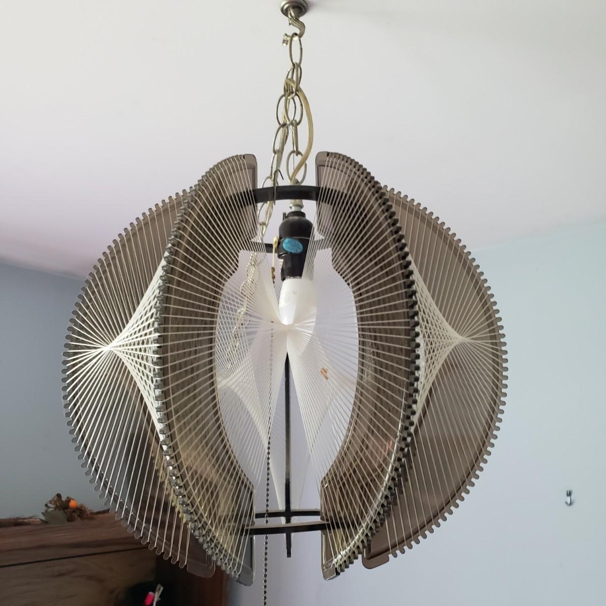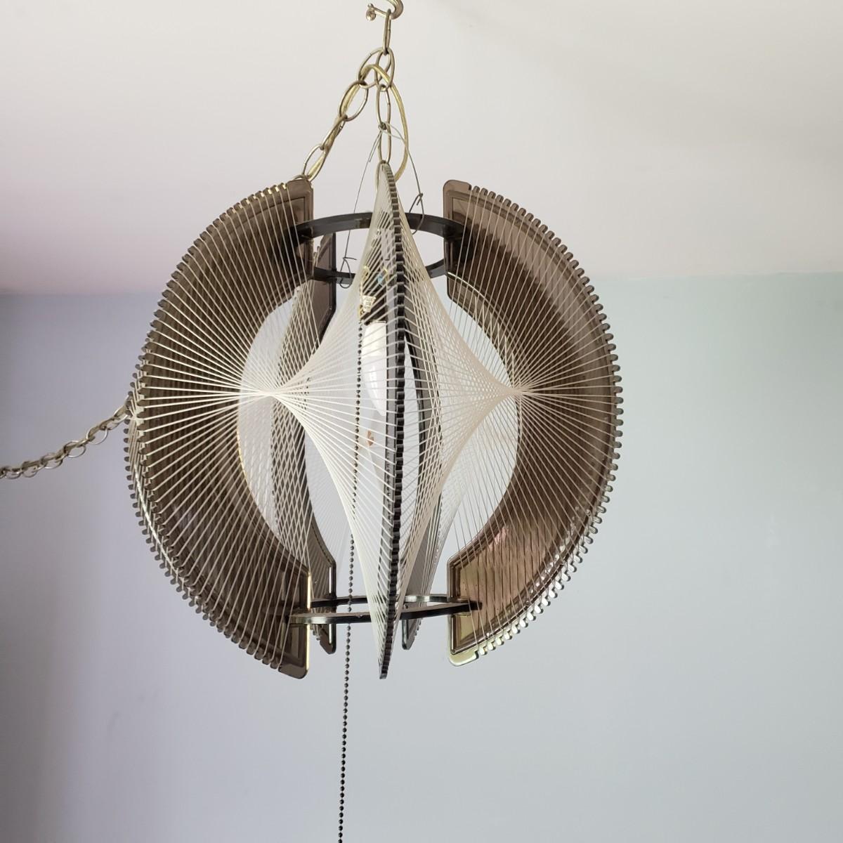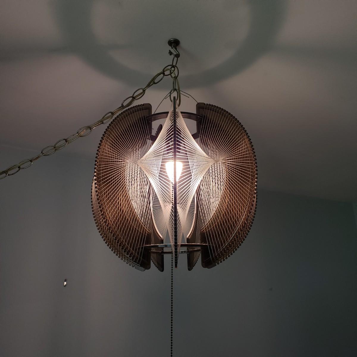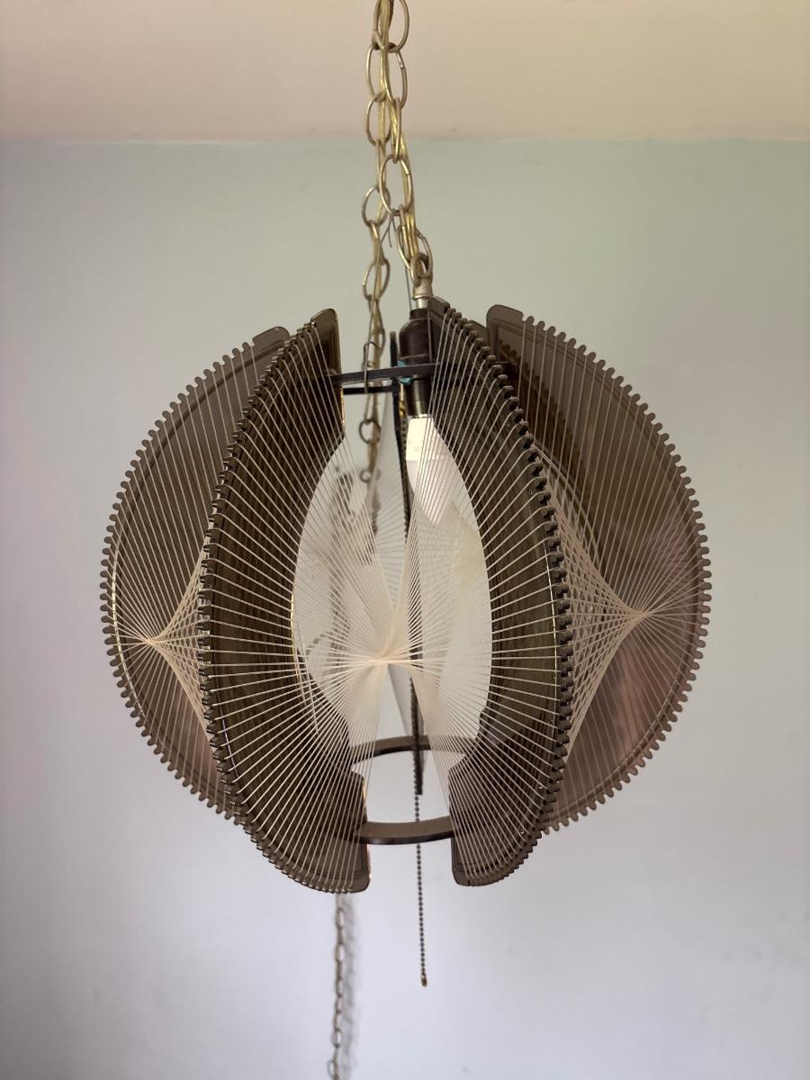 LOT 46: MCM Lucite String Art Swag Hanging Lamp with Chain