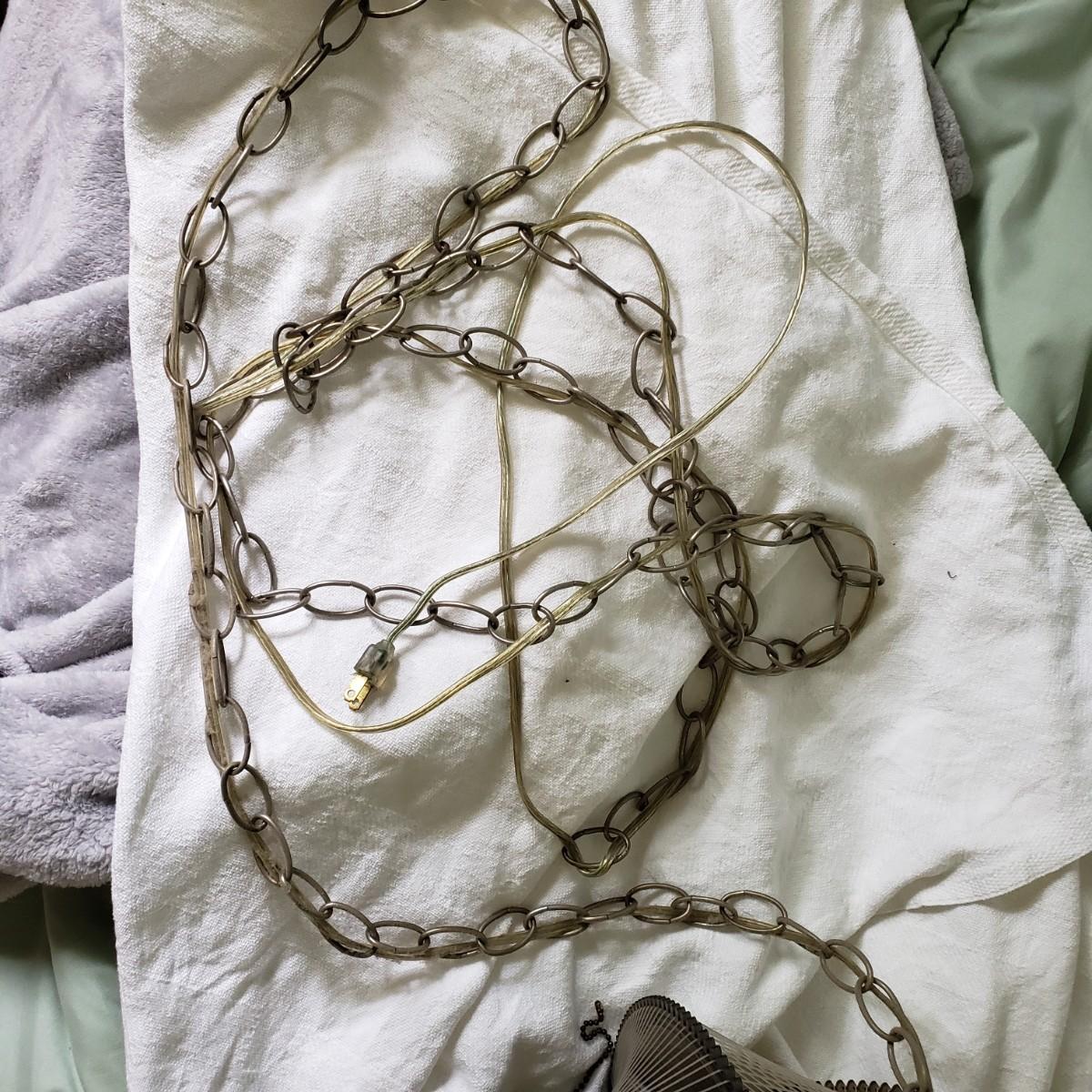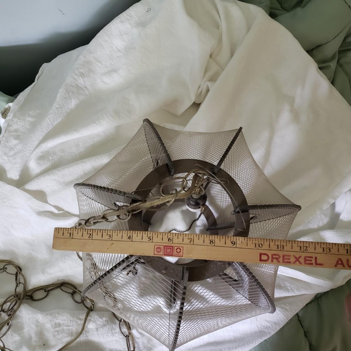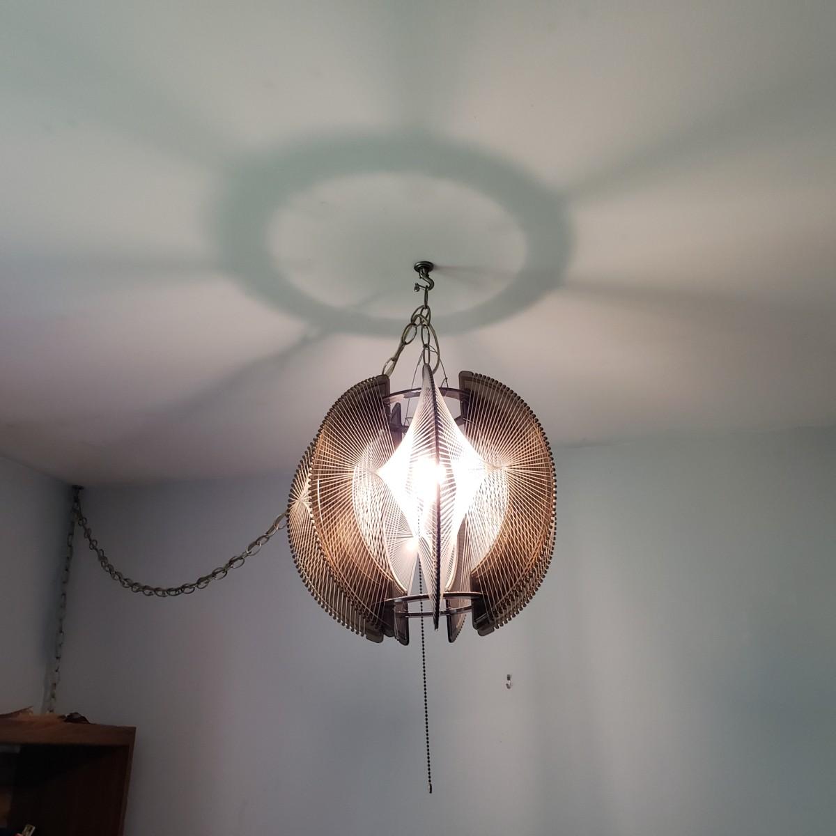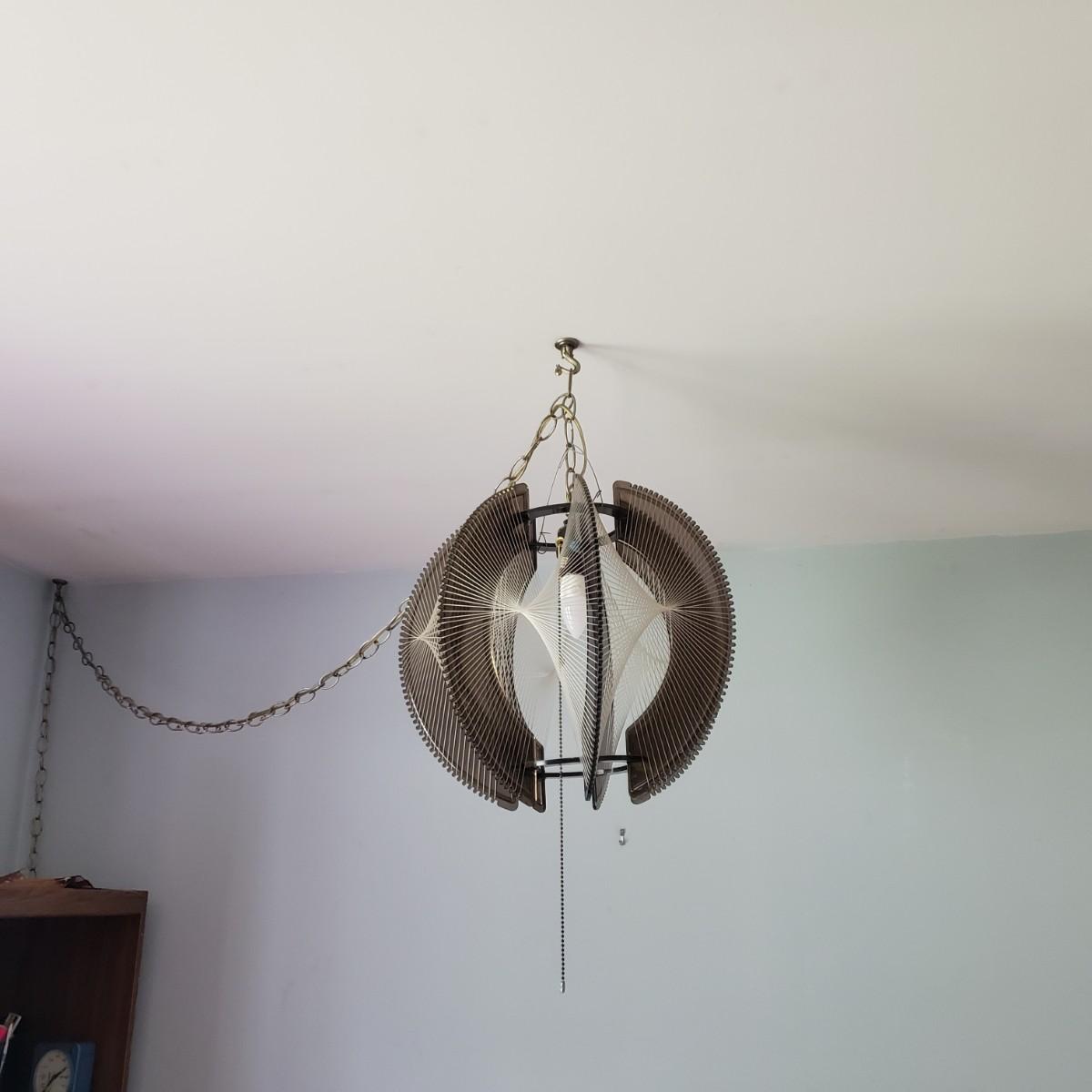 LOT 46: MCM Lucite String Art Swag Hanging Lamp with Chain