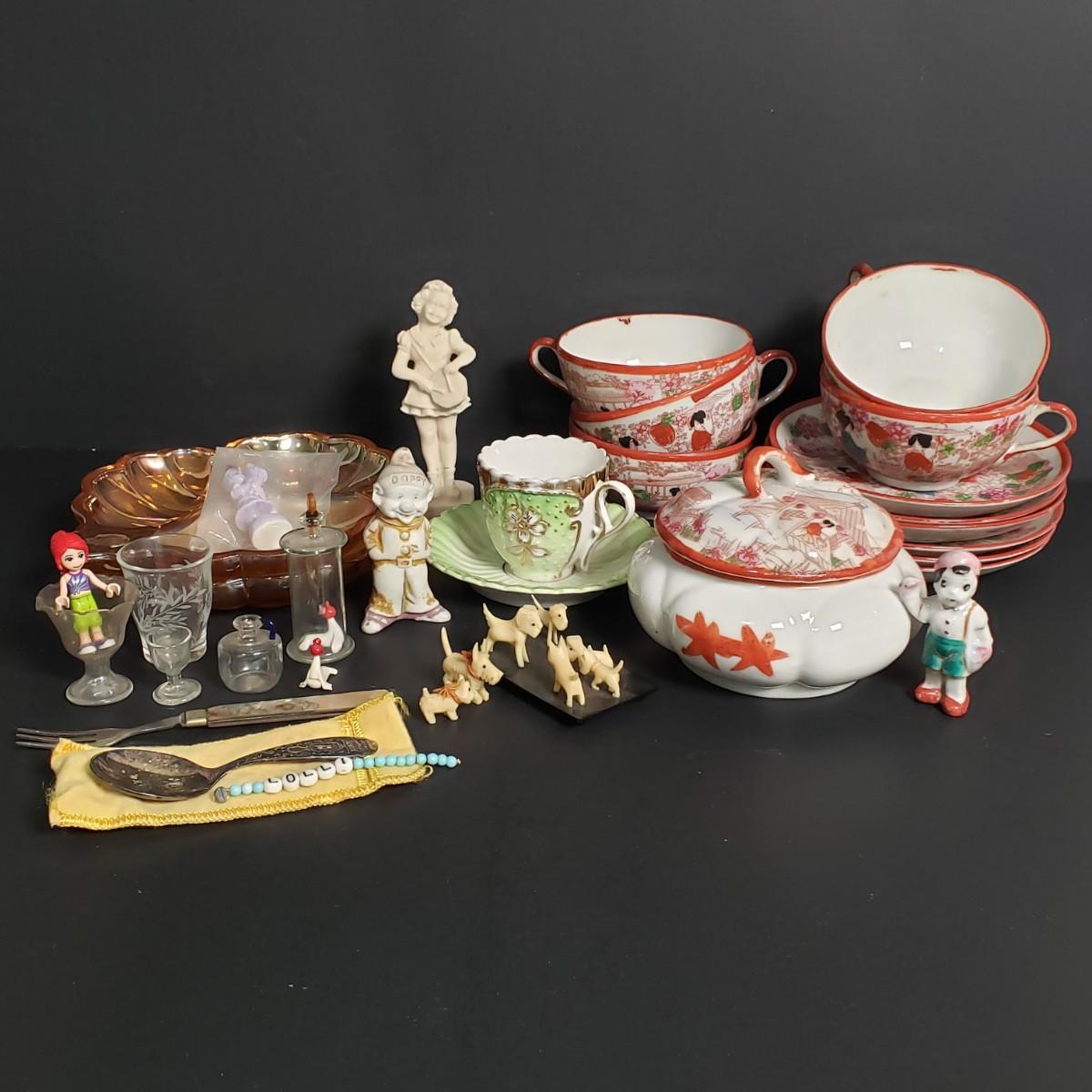 LOT 53: Miniatures and Porcelain Assortment; Disney, Art Glass, Japanese Teacups, and More