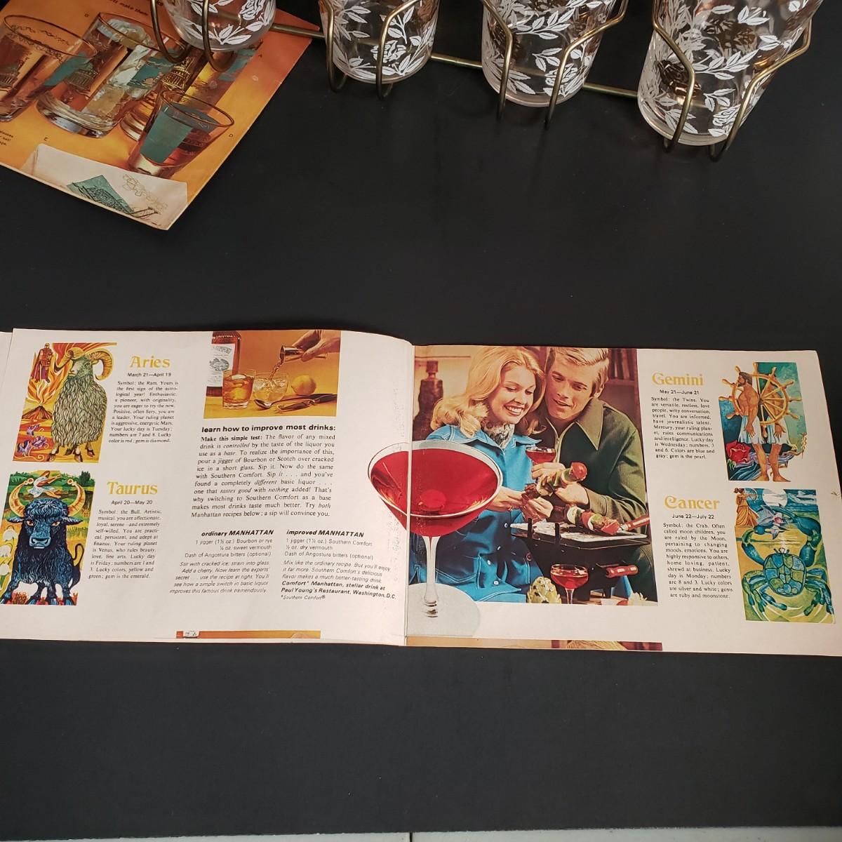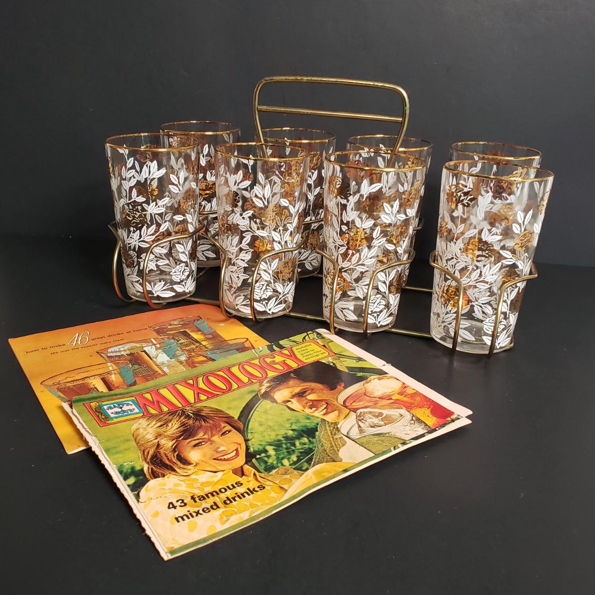 LOT 54: Mid Century Barware with Caddy, Mixology Pamphlets