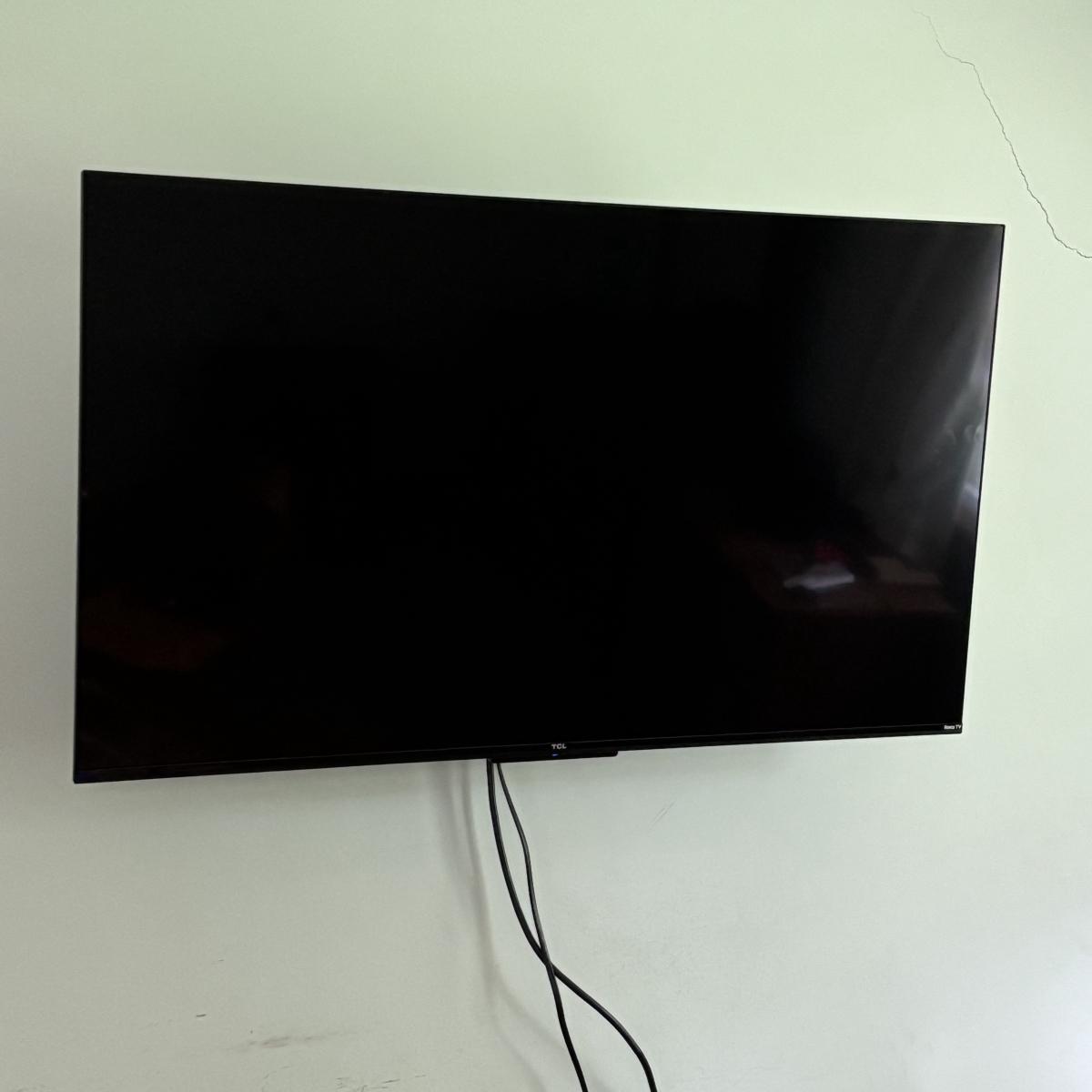 TV is mounted on the wall. It will be your responsibility to bring the necessary tools to remove it.