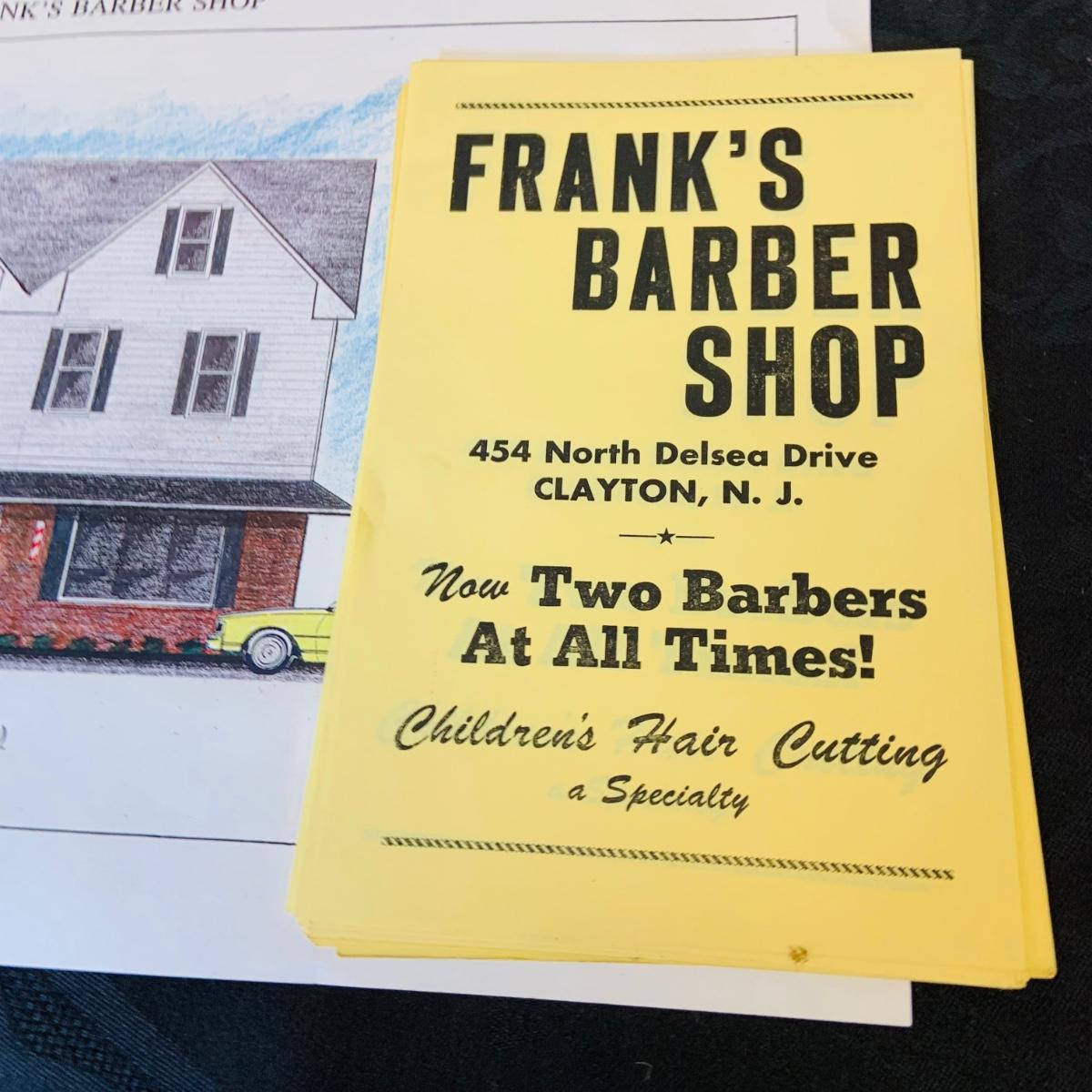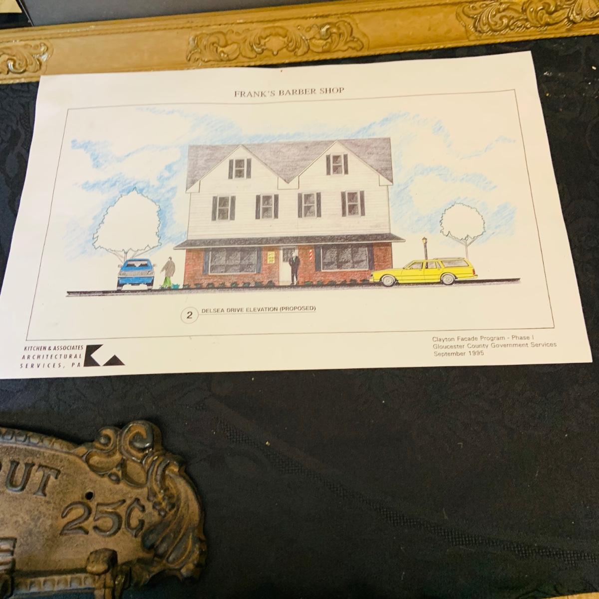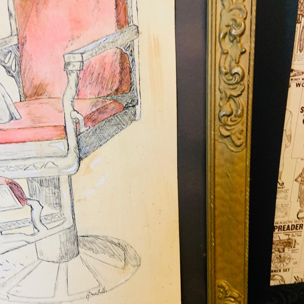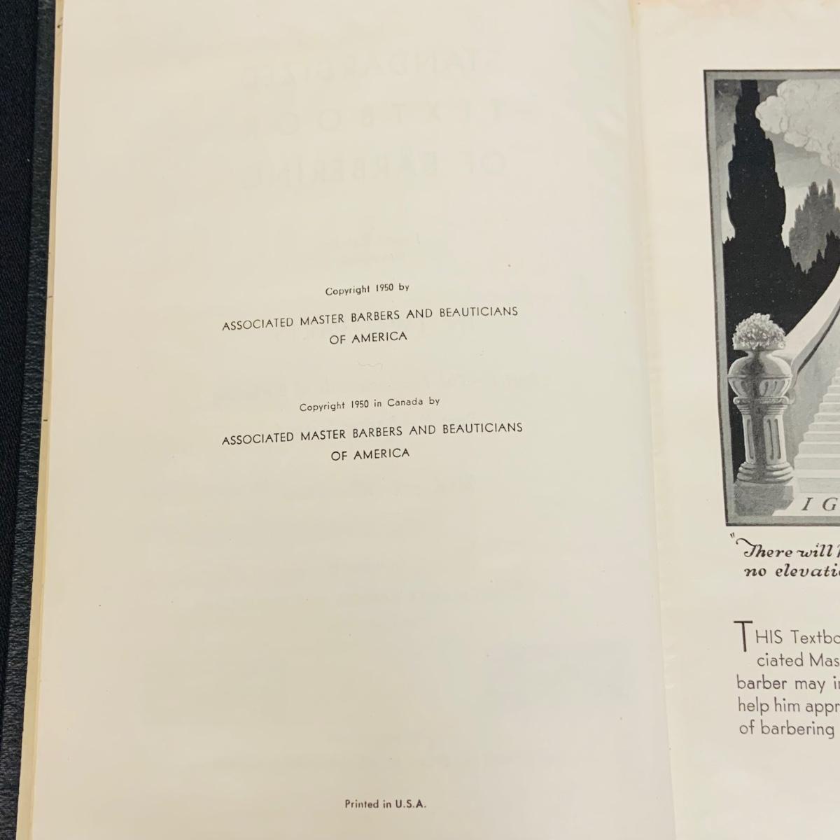 LOT 91: Barber Shop Memorabilia a Framed Etching, Cast Iron Haircut Plaque, Wooden Barber Poll, Books and Mor