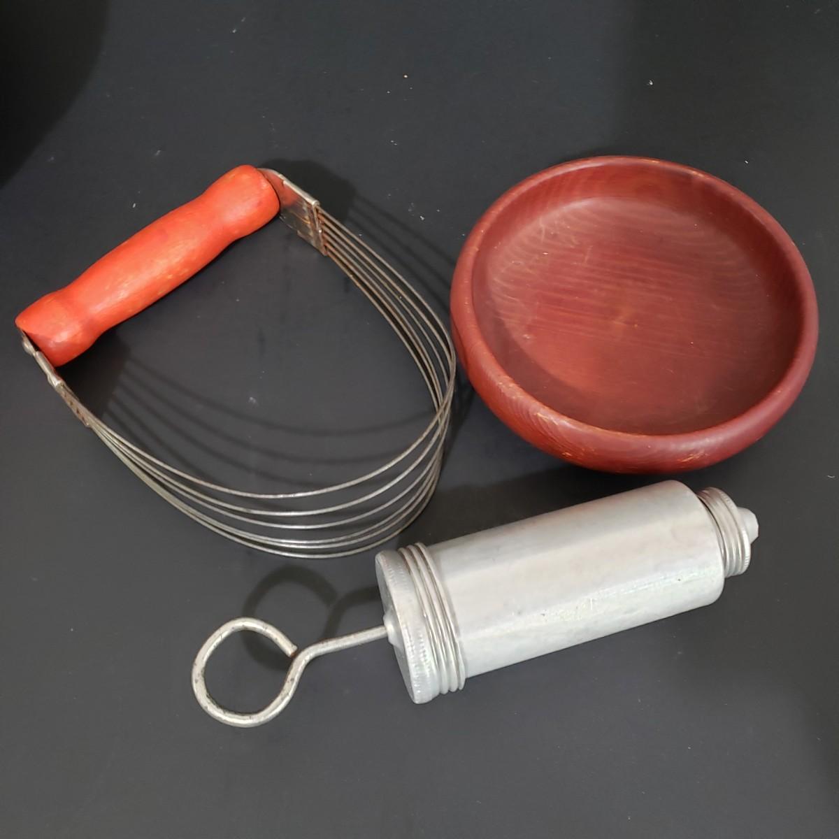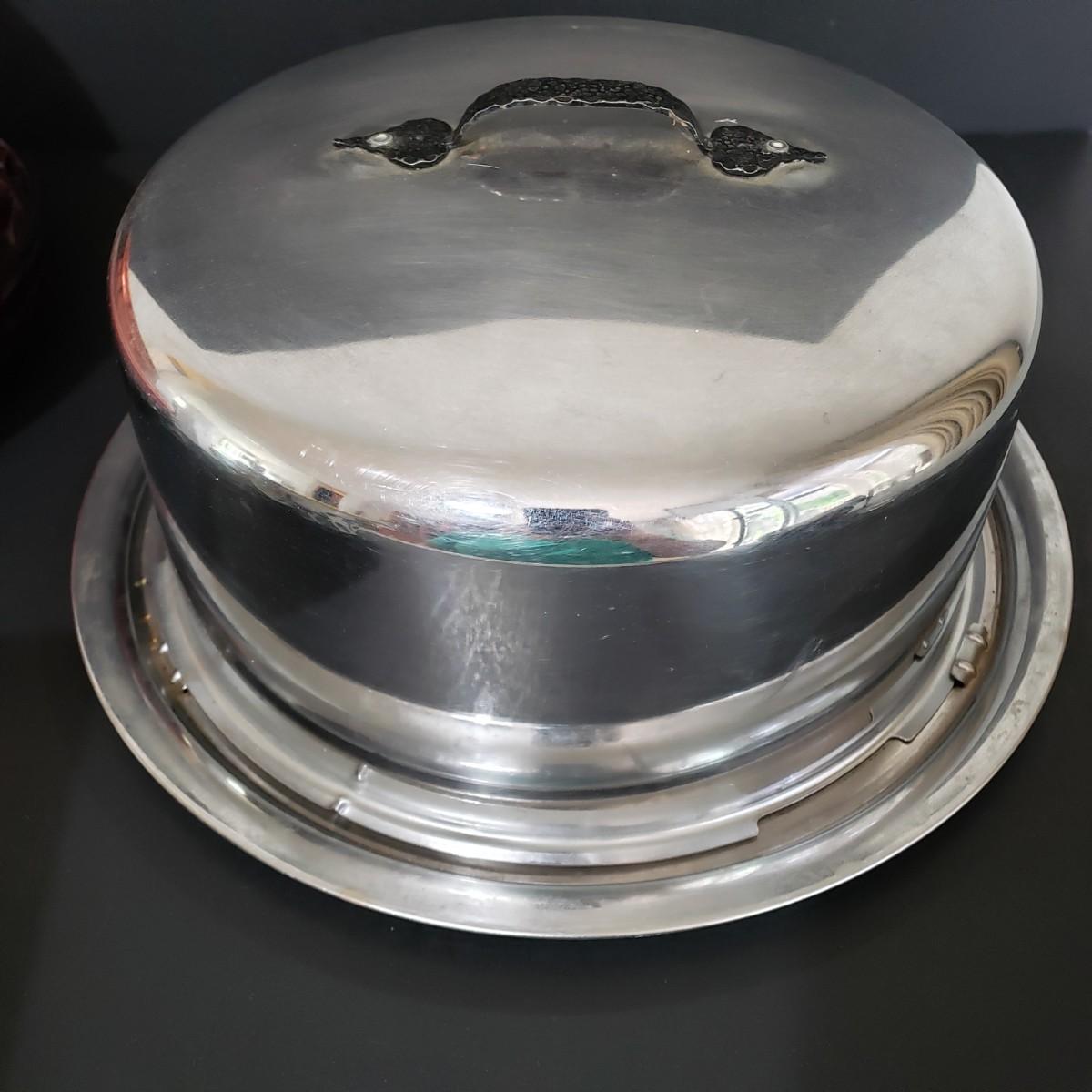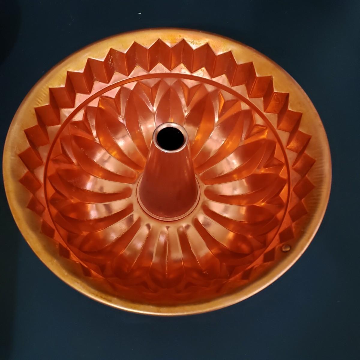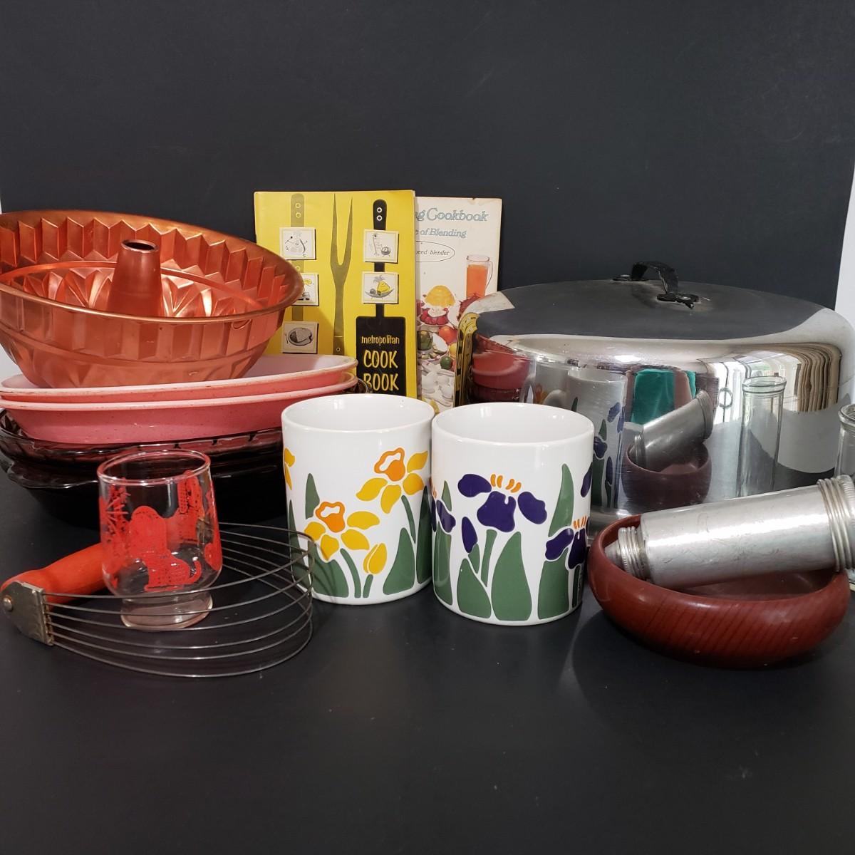 LOT 113: Vintage Kitchen; Pyrex Desert Dawn, Chrome Cake Box, Cookbooks, Bundt Pan, and More