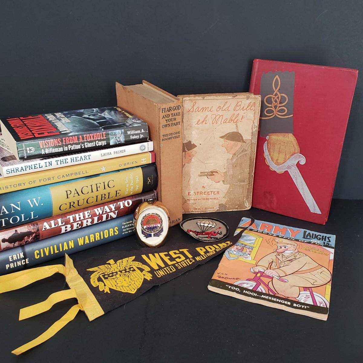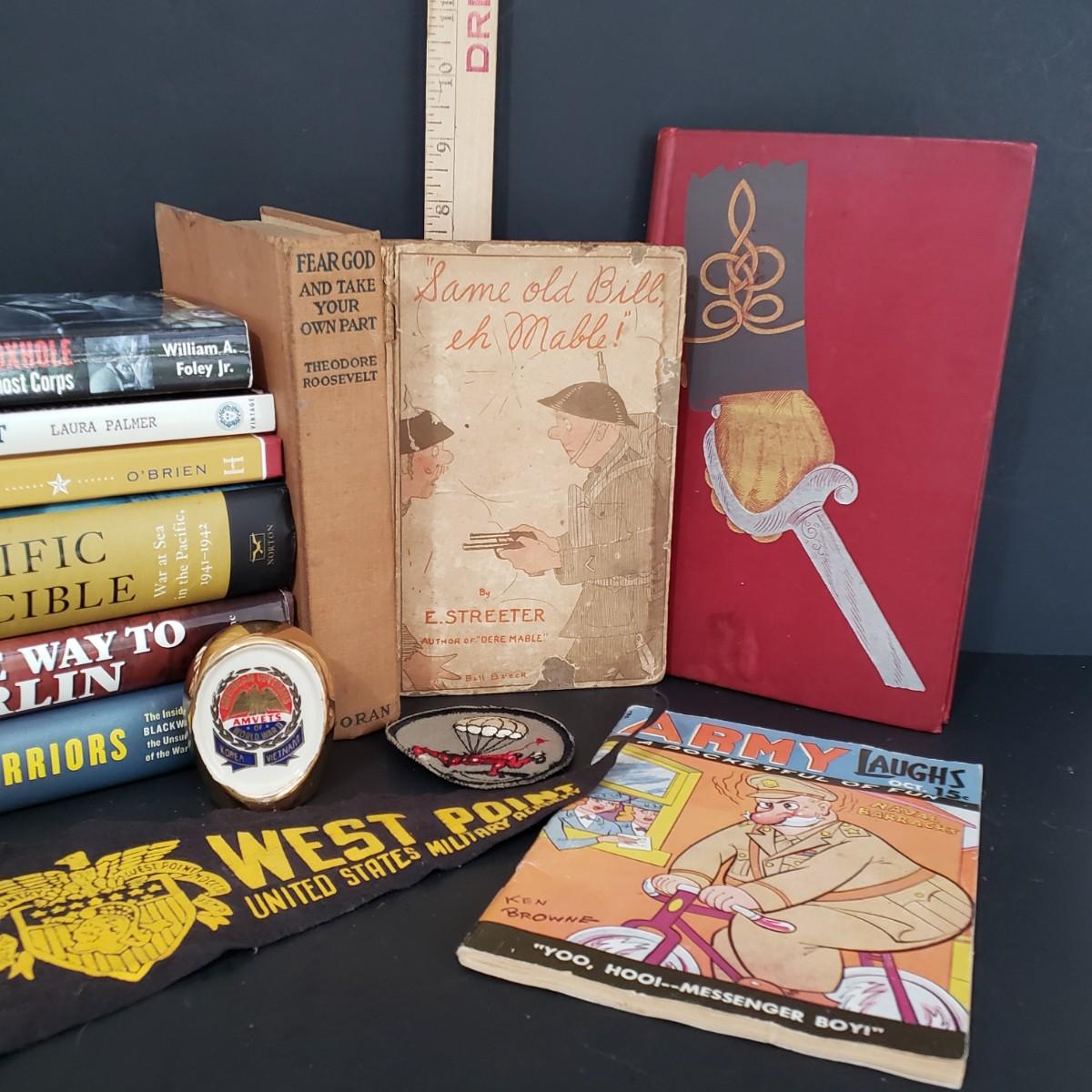 LOT 115: Military Collection; Army Laughs, West Point, Theodore Roosevelt, and Many Books