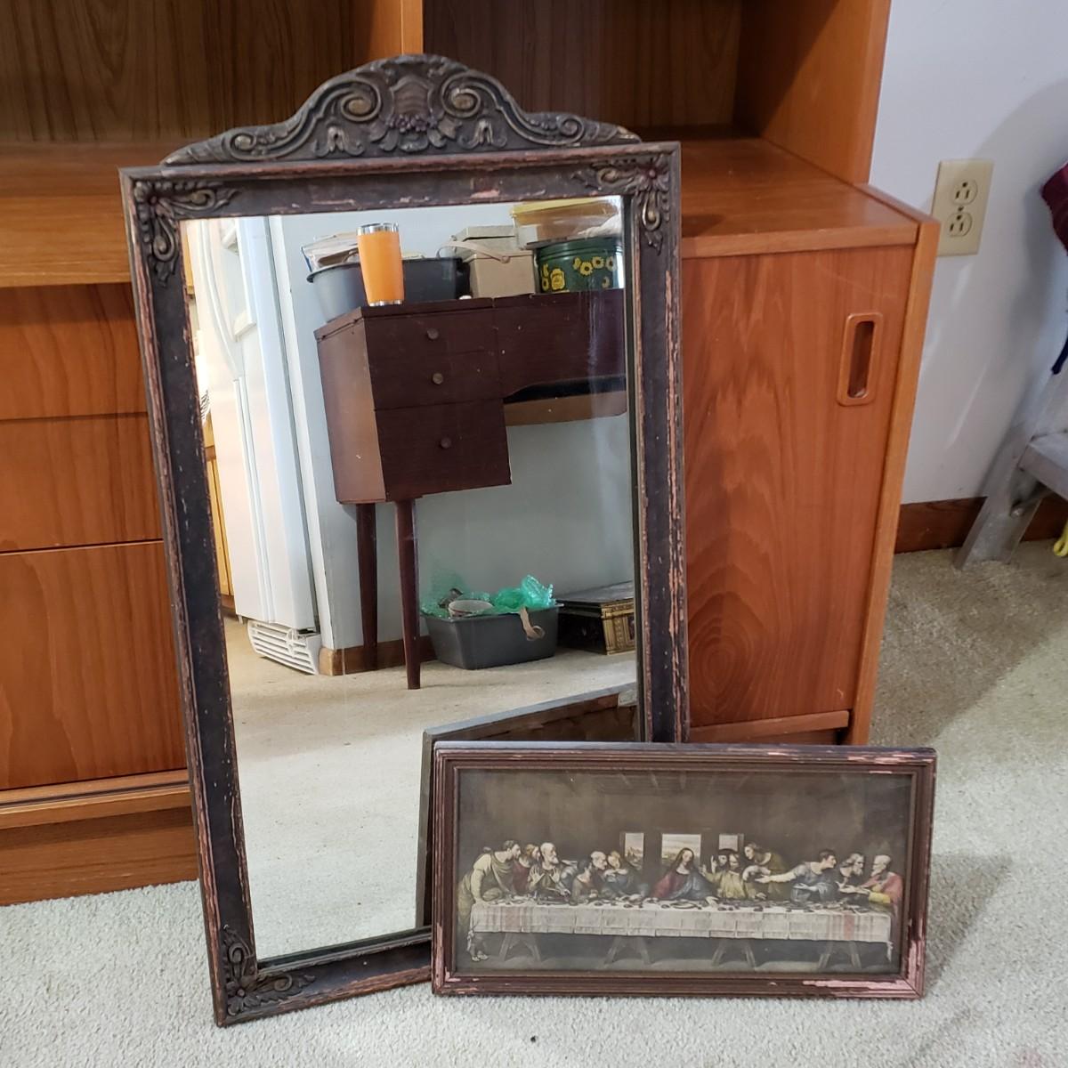 LOT 123: Vintage Mezzo Print of The Last Supper along with a Vintage Mirror