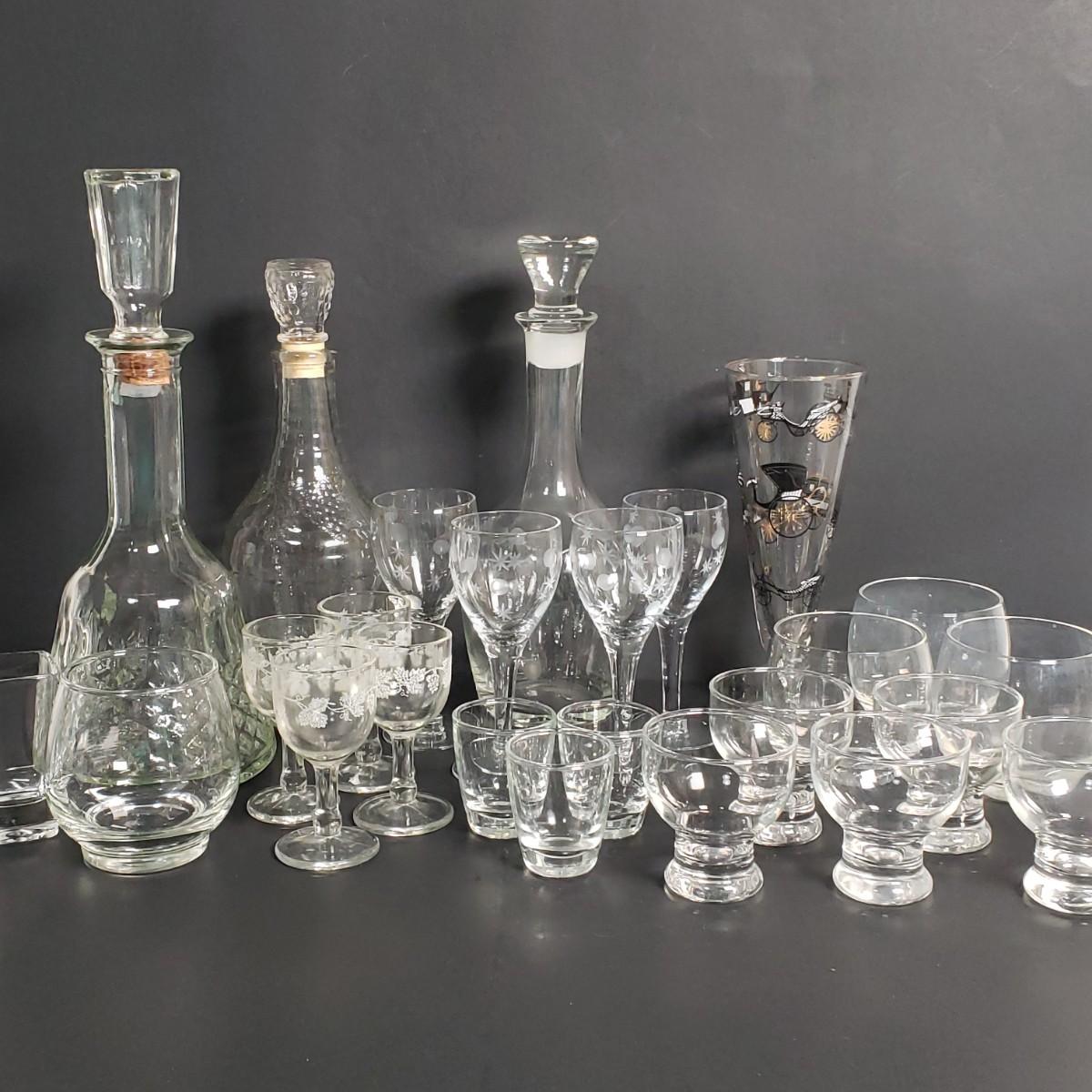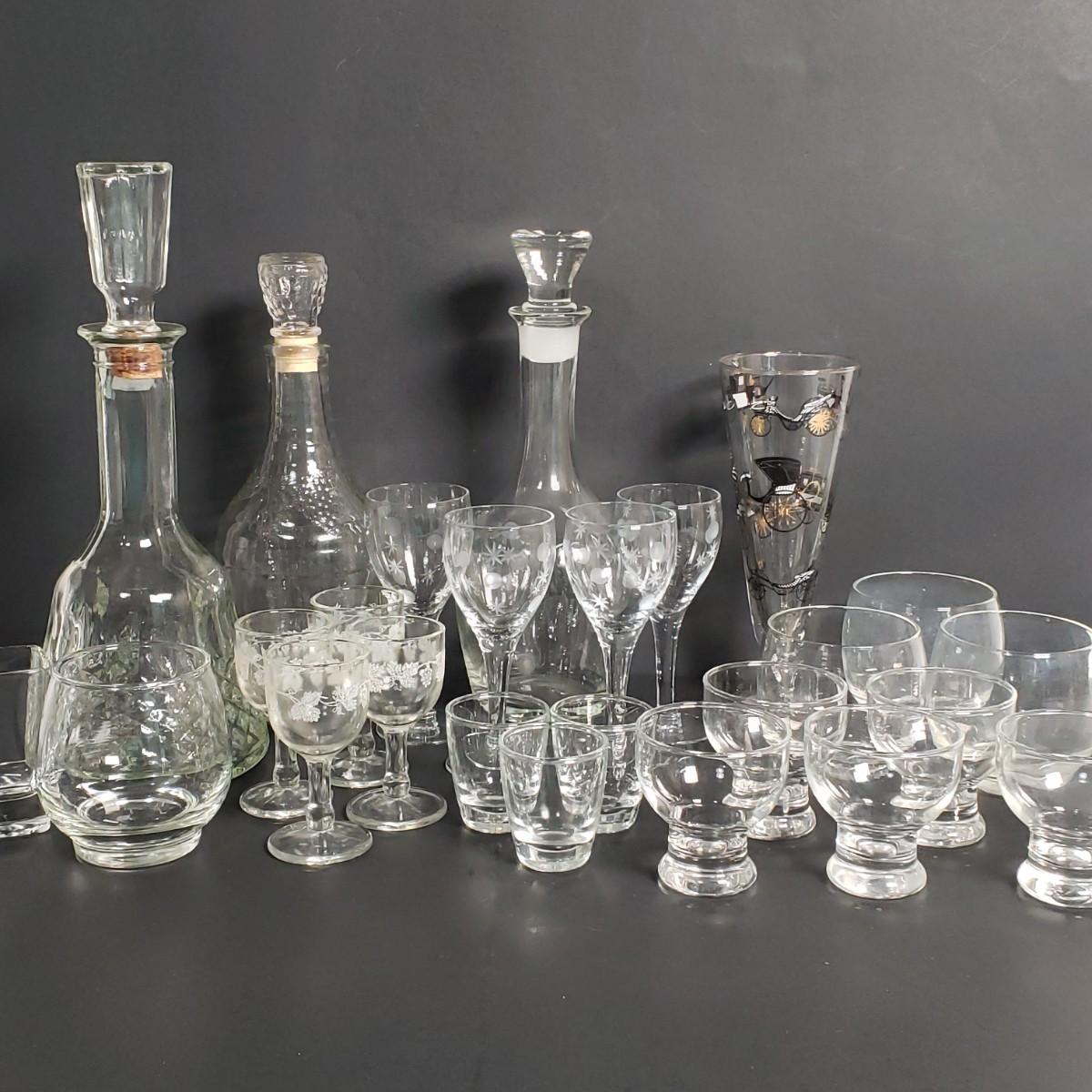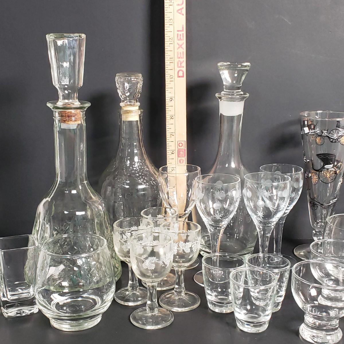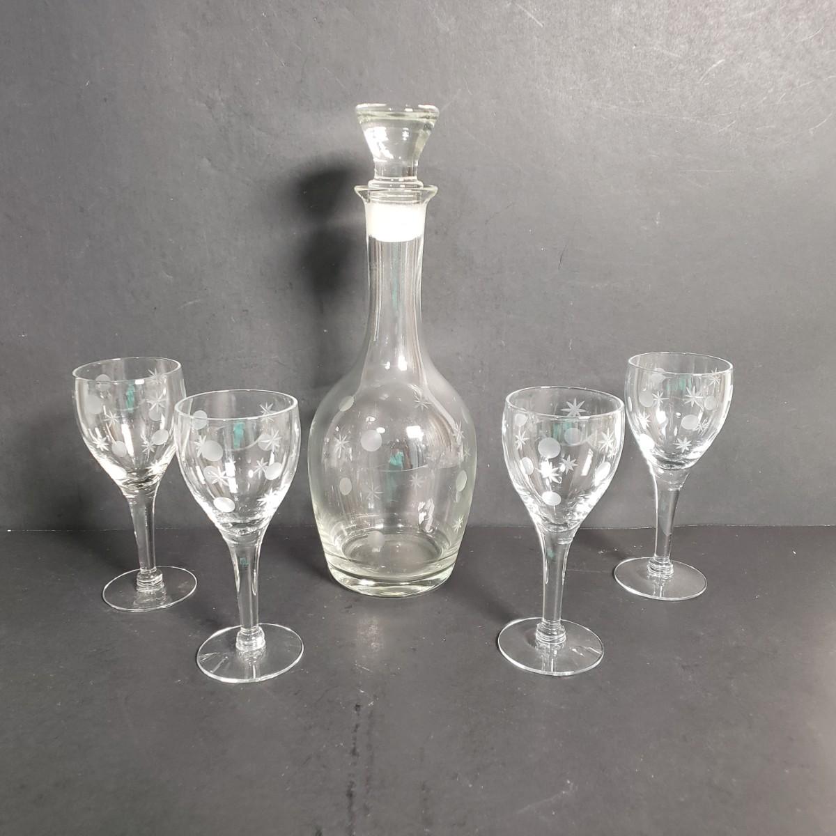 LOT 124: Vintage Atomic Decanter & Glass Set & More