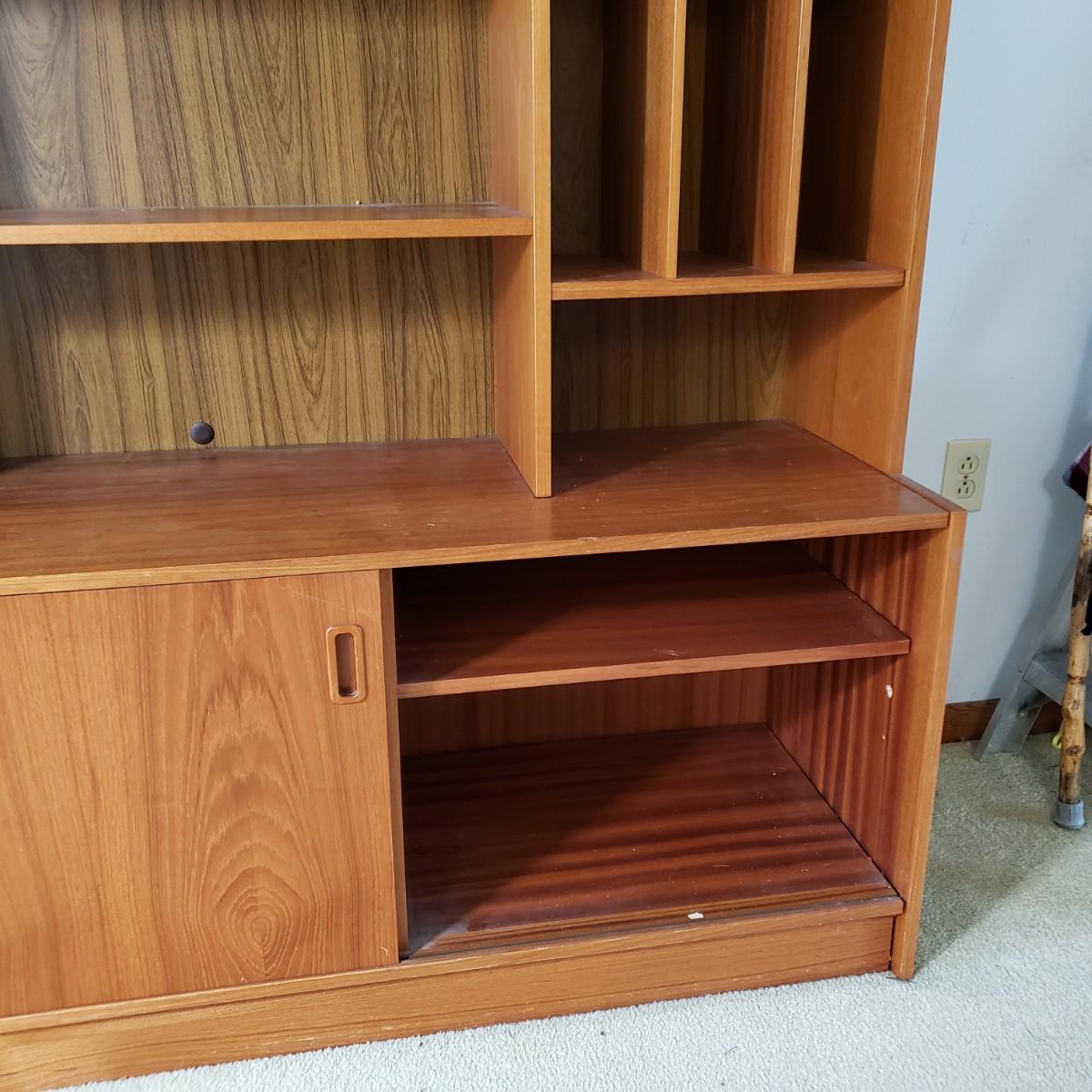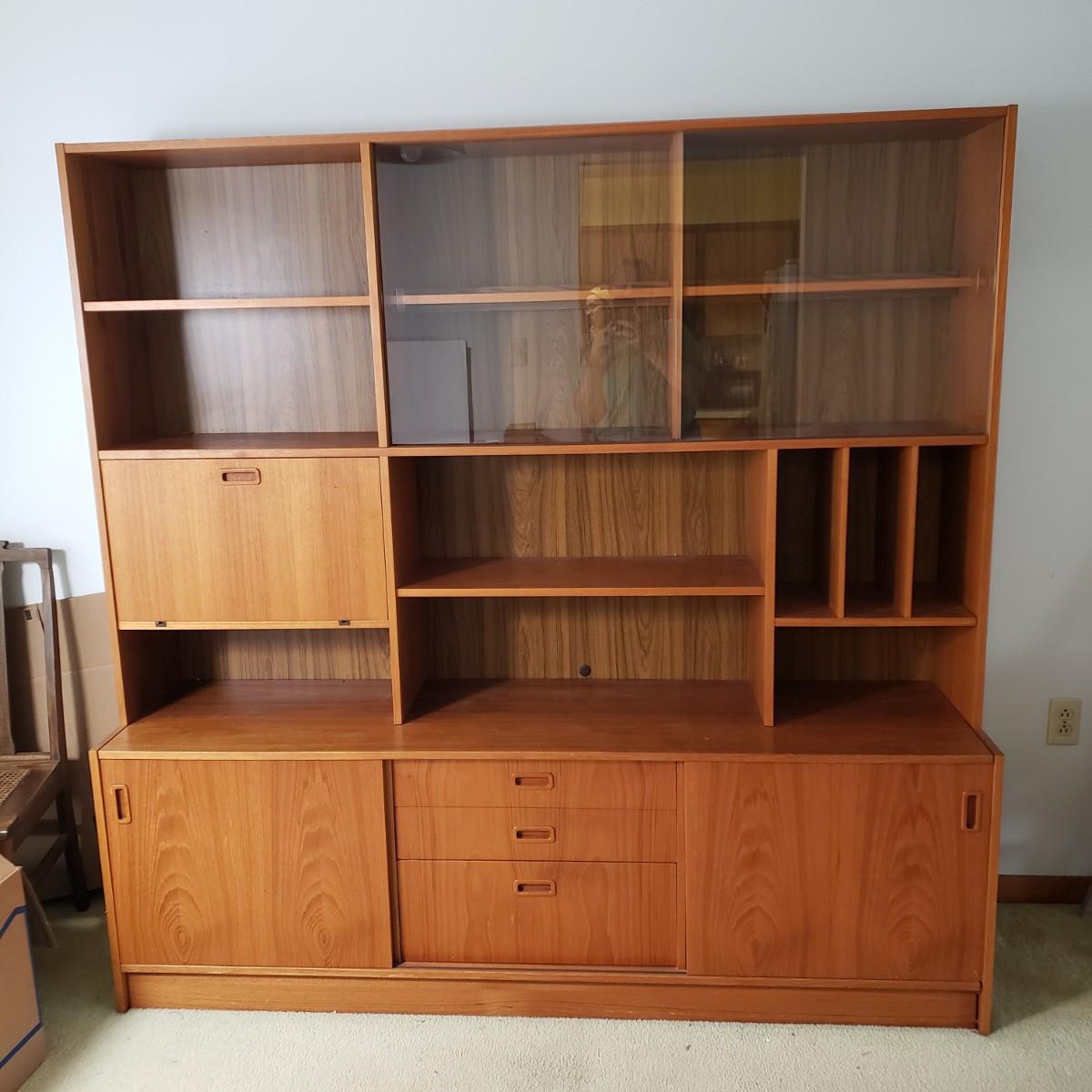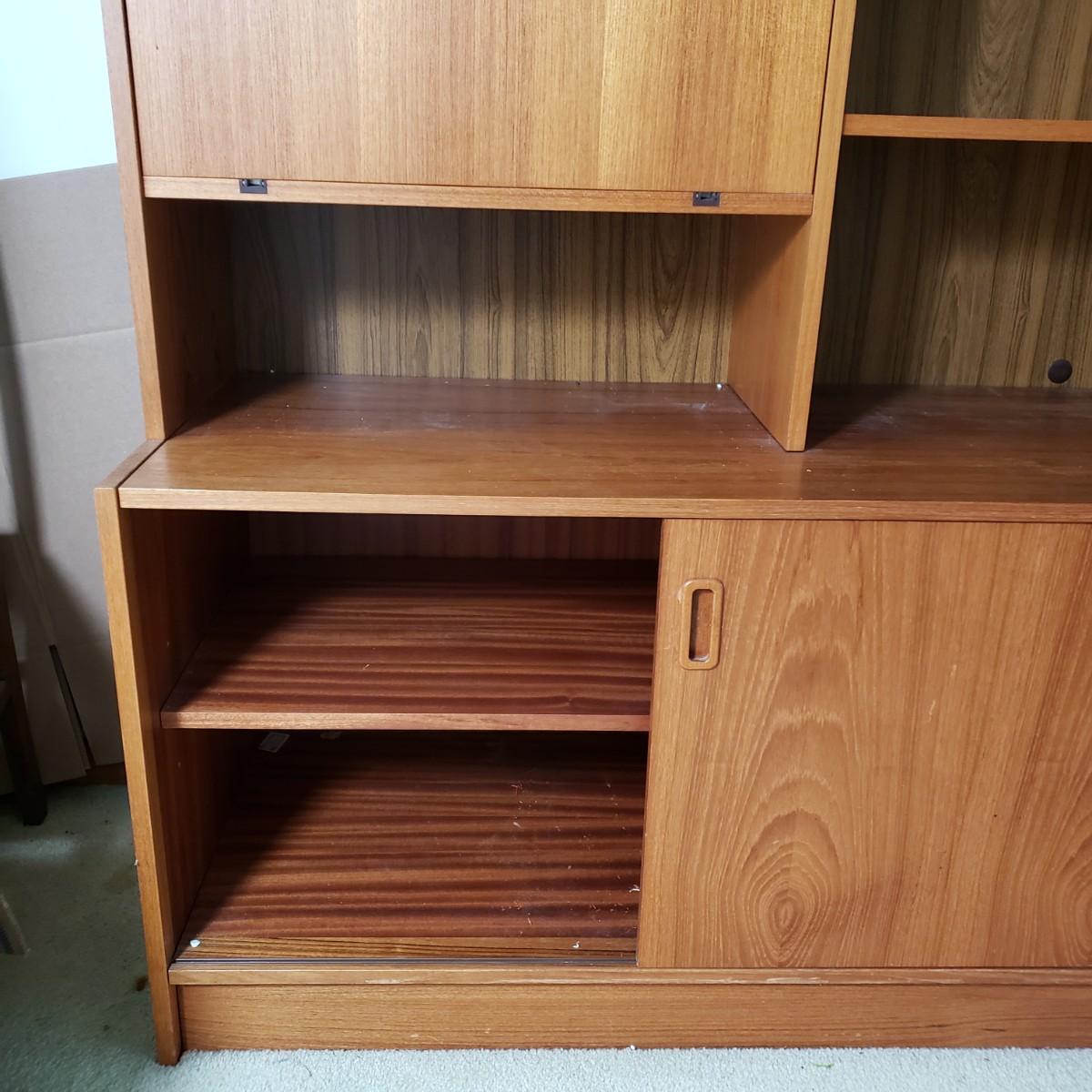 LOT 128: MCM Style Shelving Unit w/Drop Down Desk