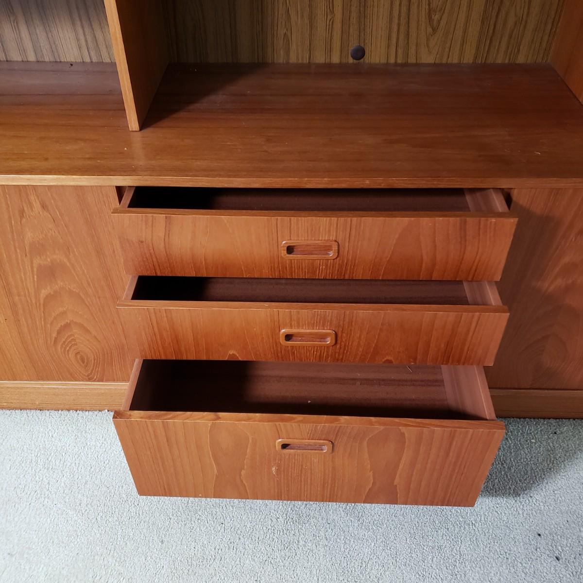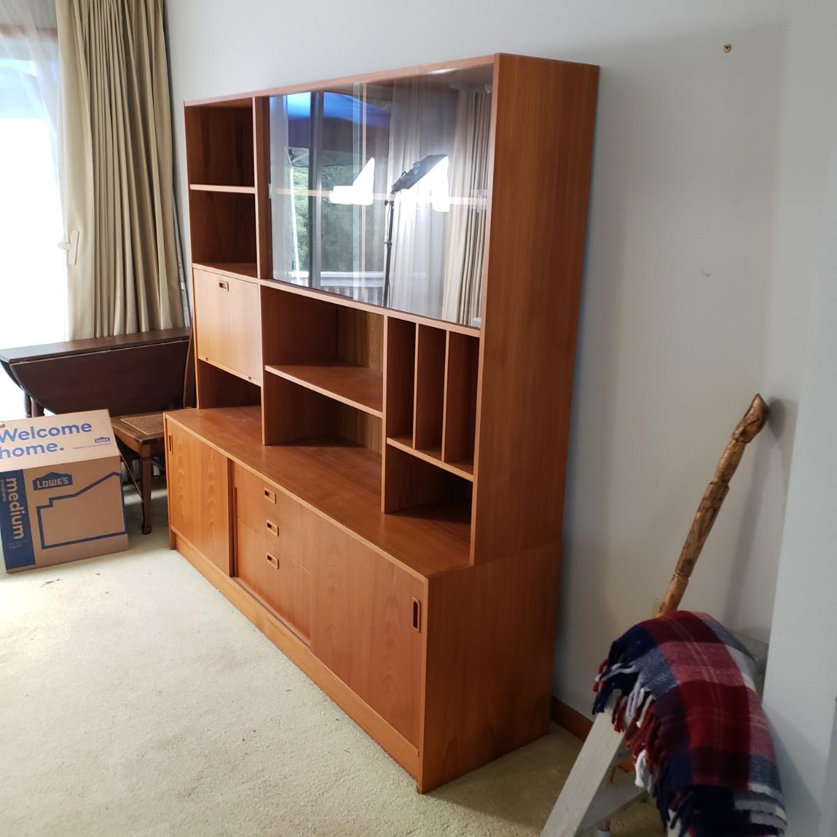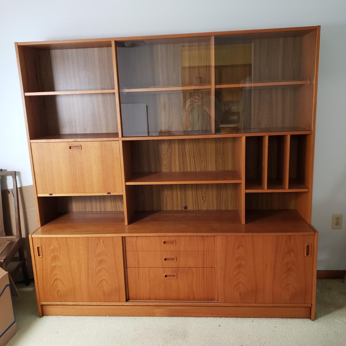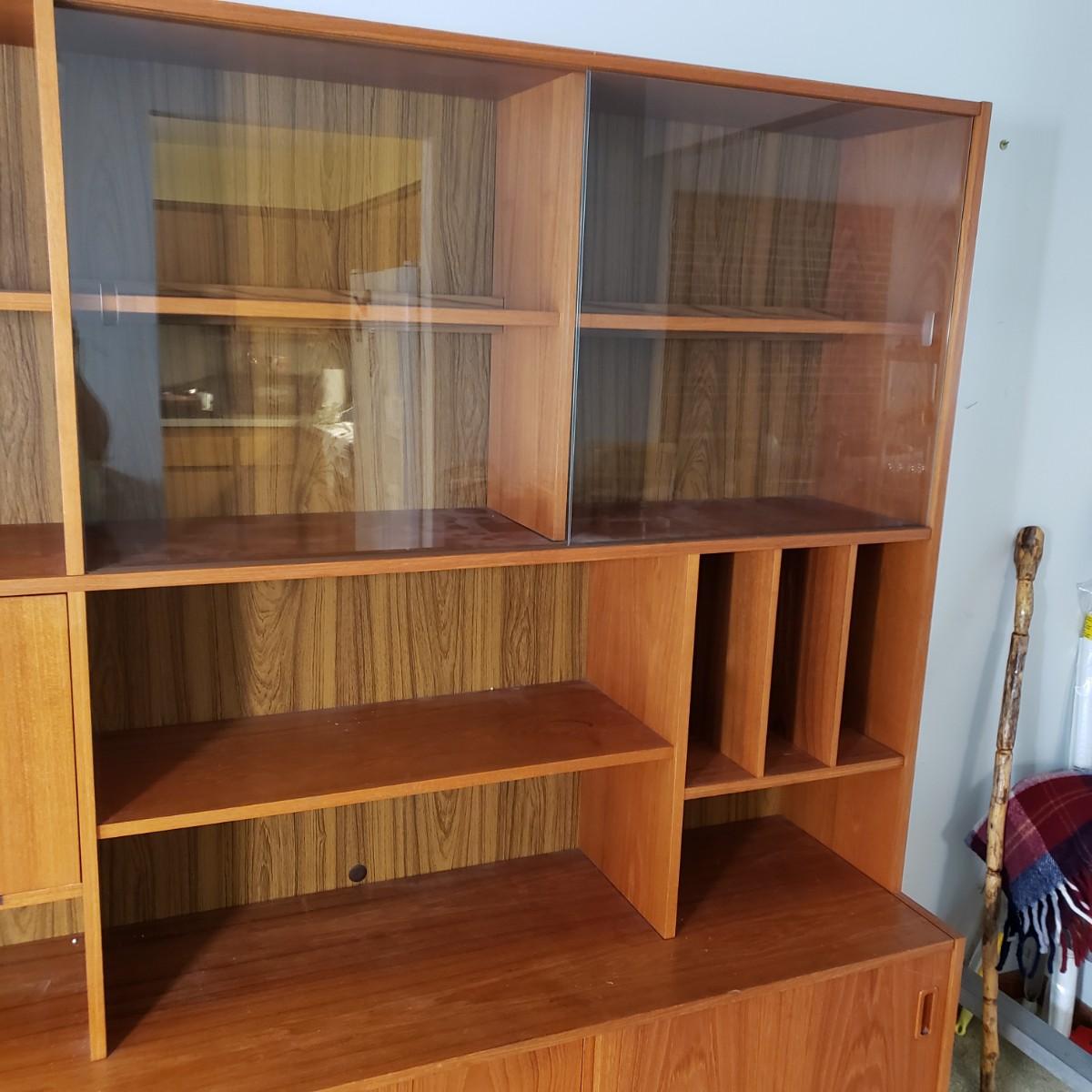 LOT 128: MCM Style Shelving Unit w/Drop Down Desk
