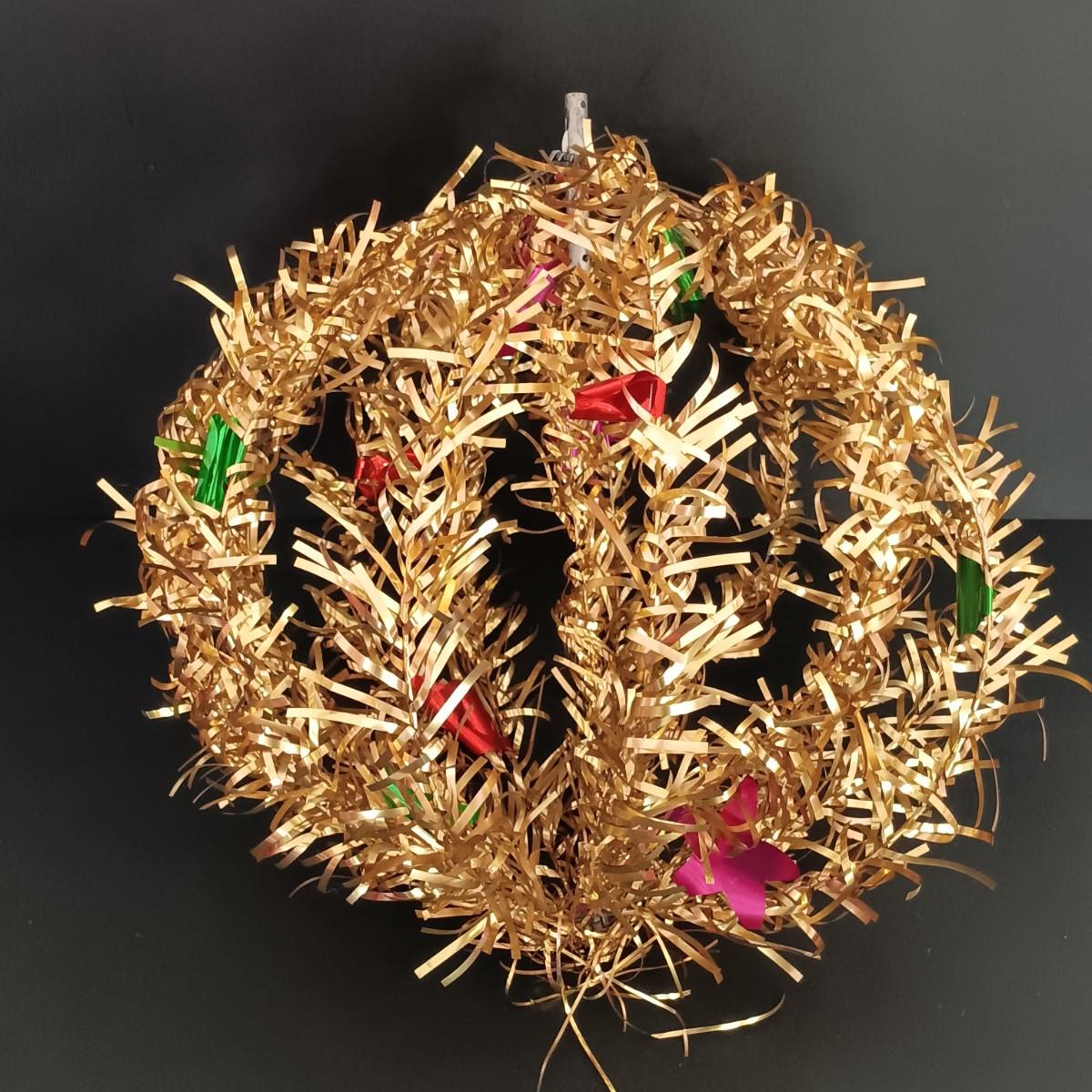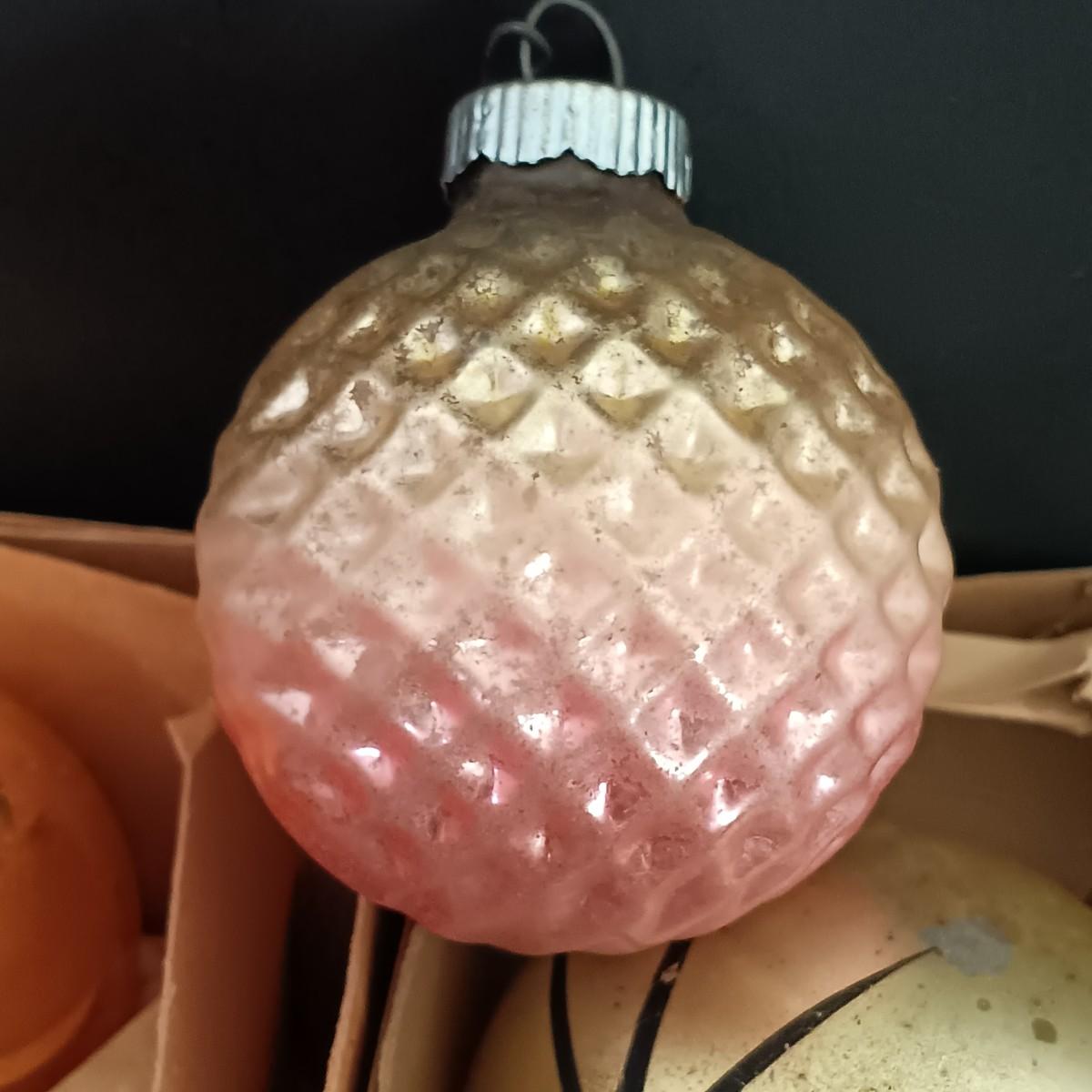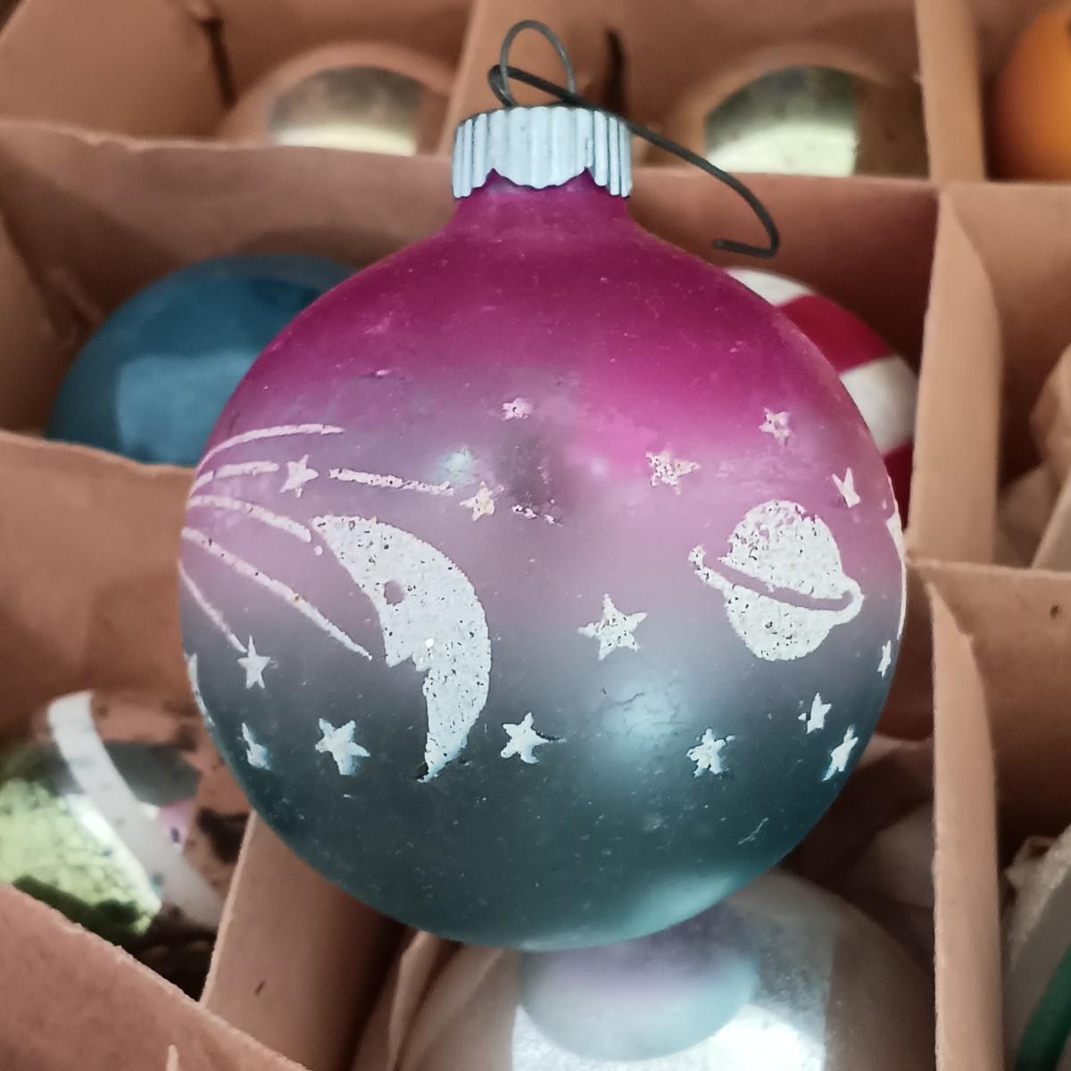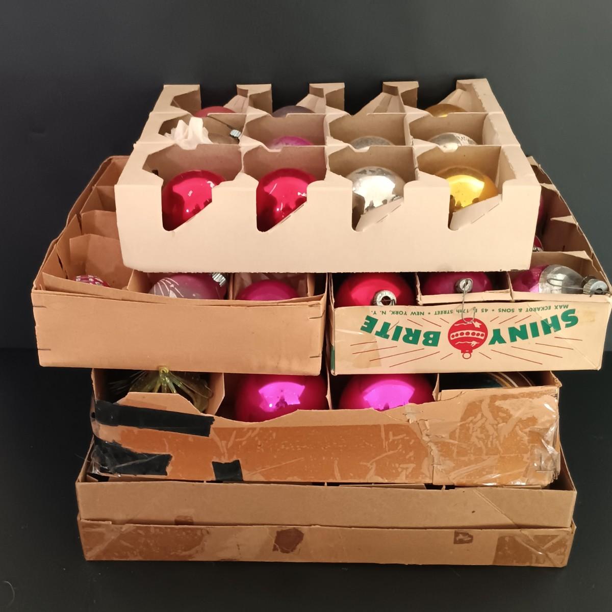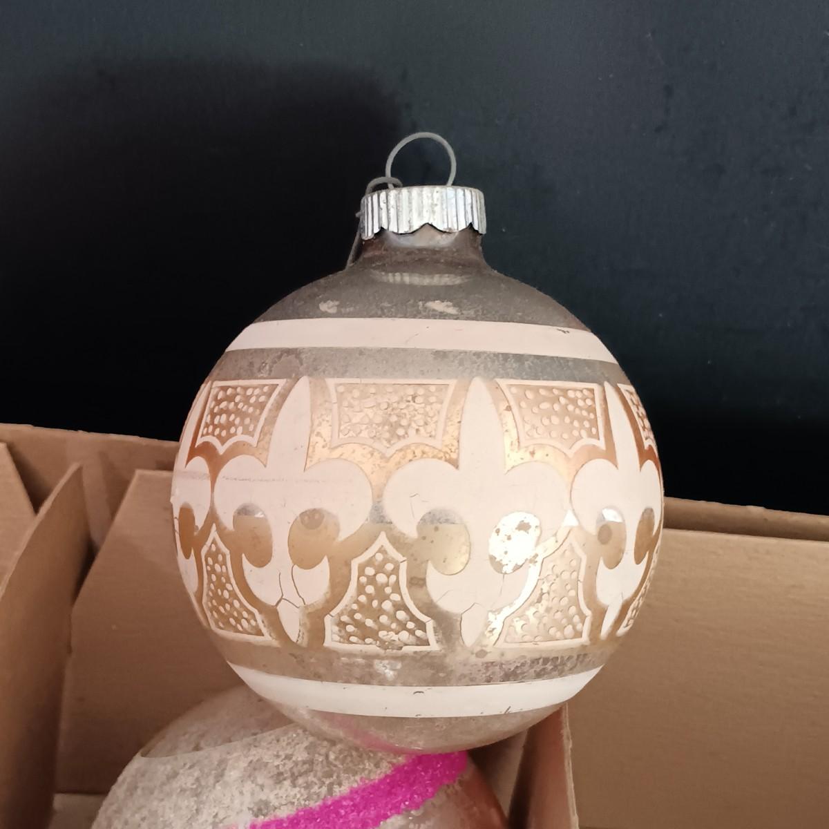 LOT 141: Vintage Christmas- Tinsel Ball, Ceramic Cookie Dish, Shiney Brites, Molded Plastic Santa Bowl & More