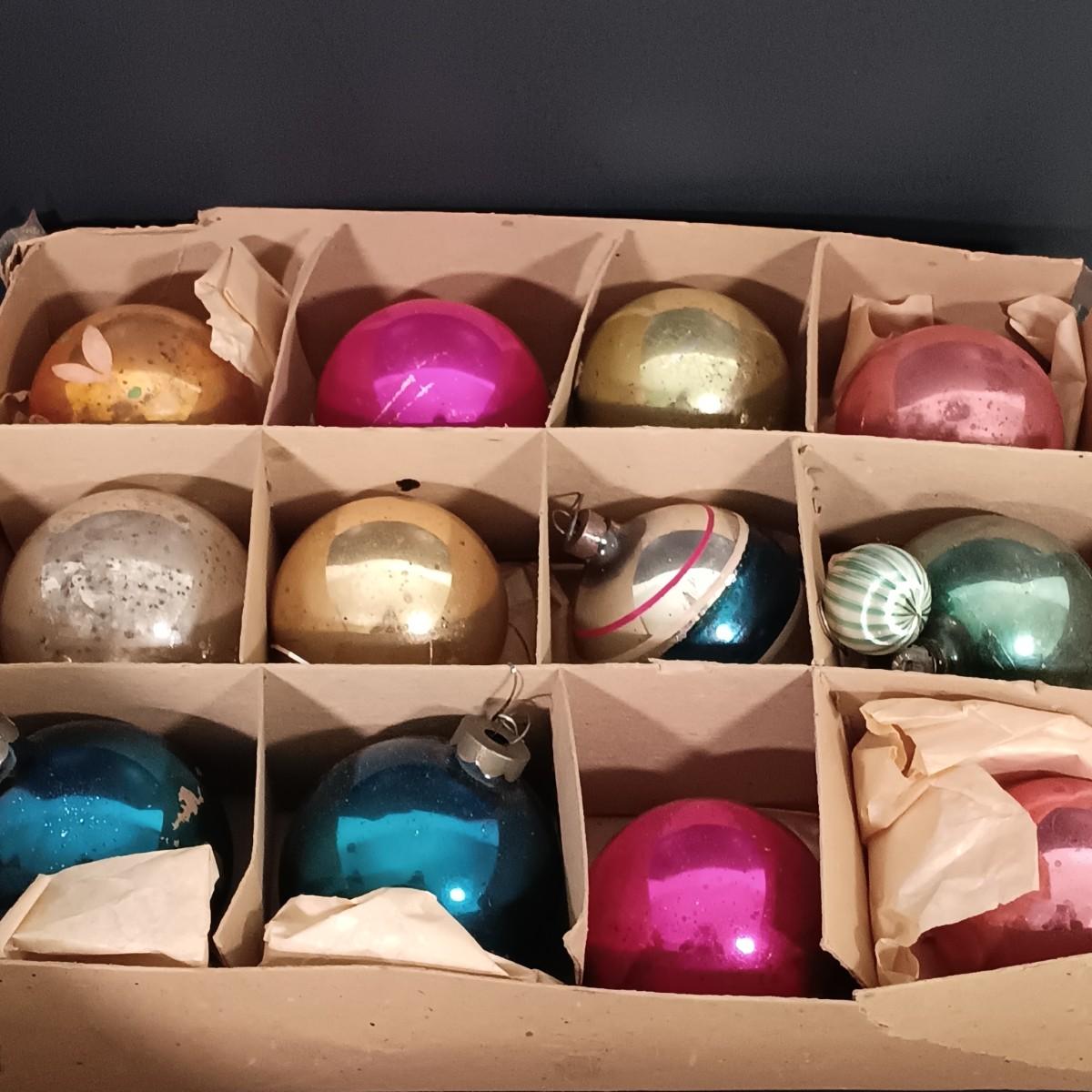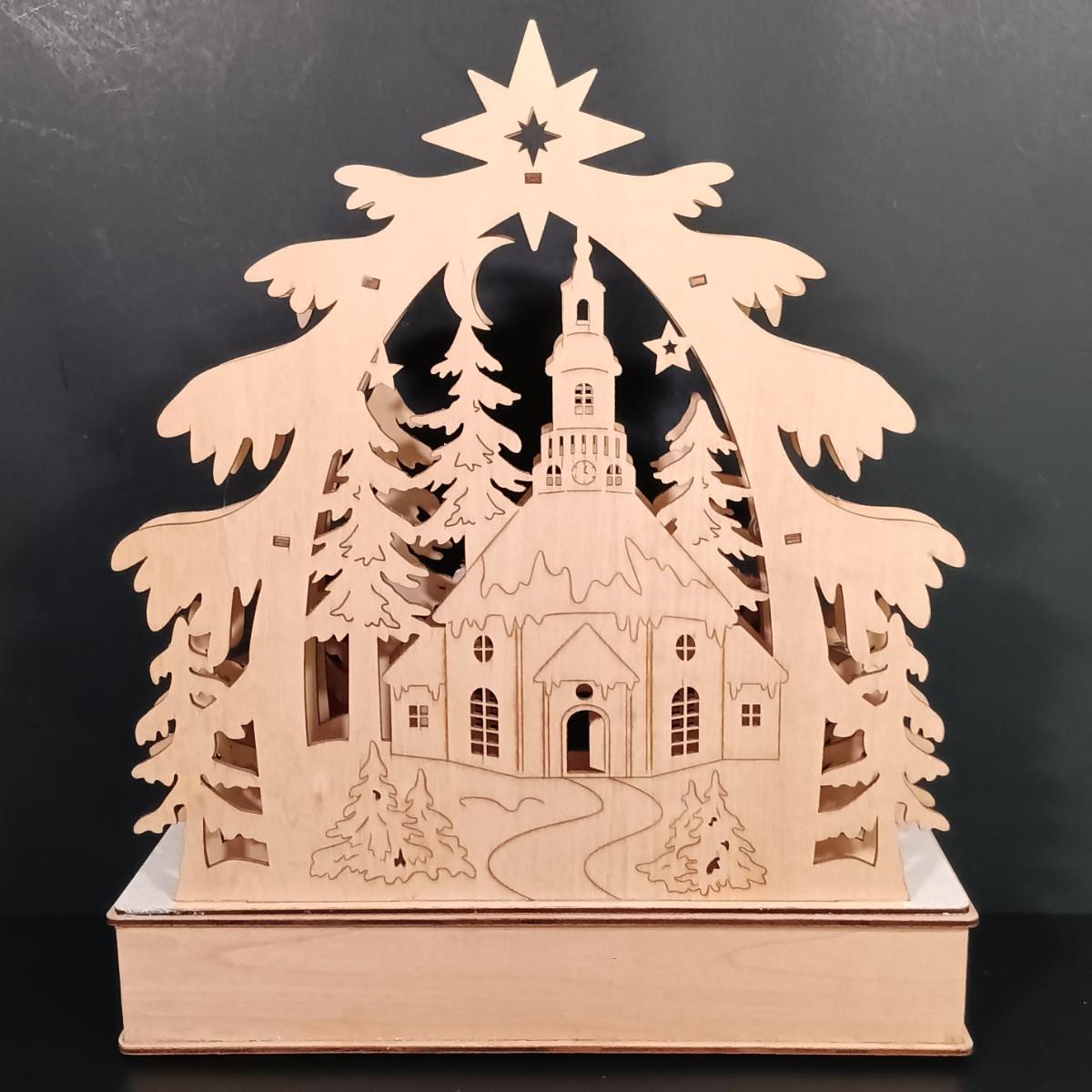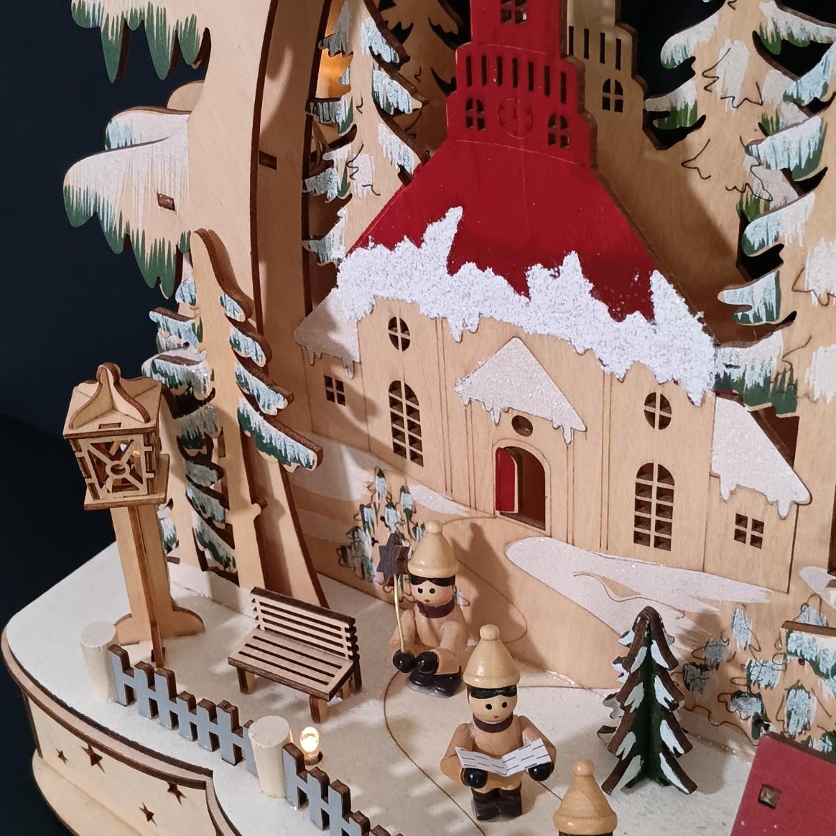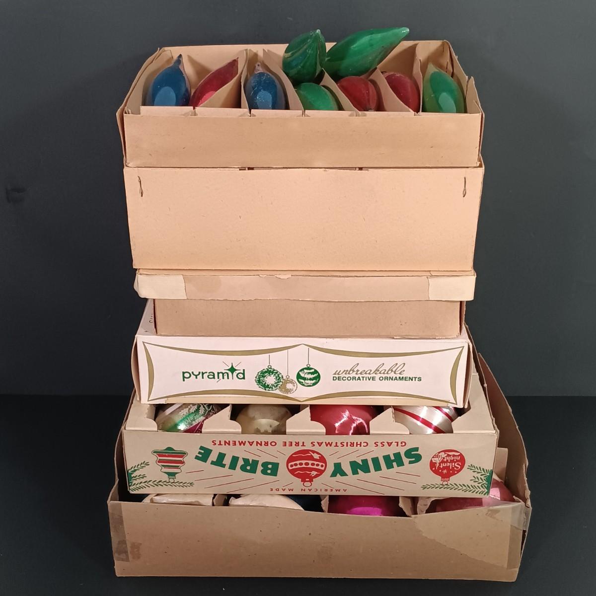 LOT 142: Vintage Christmas- Laser Cut Wood Winter Scene, R&R Imports Cast Iron and Stained Glass Candle Holder, Pyramid Ornaments & More