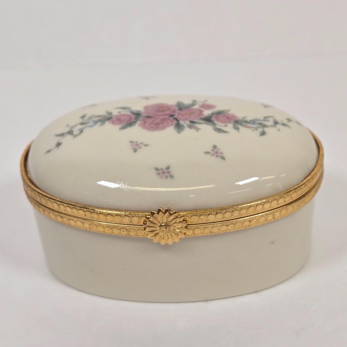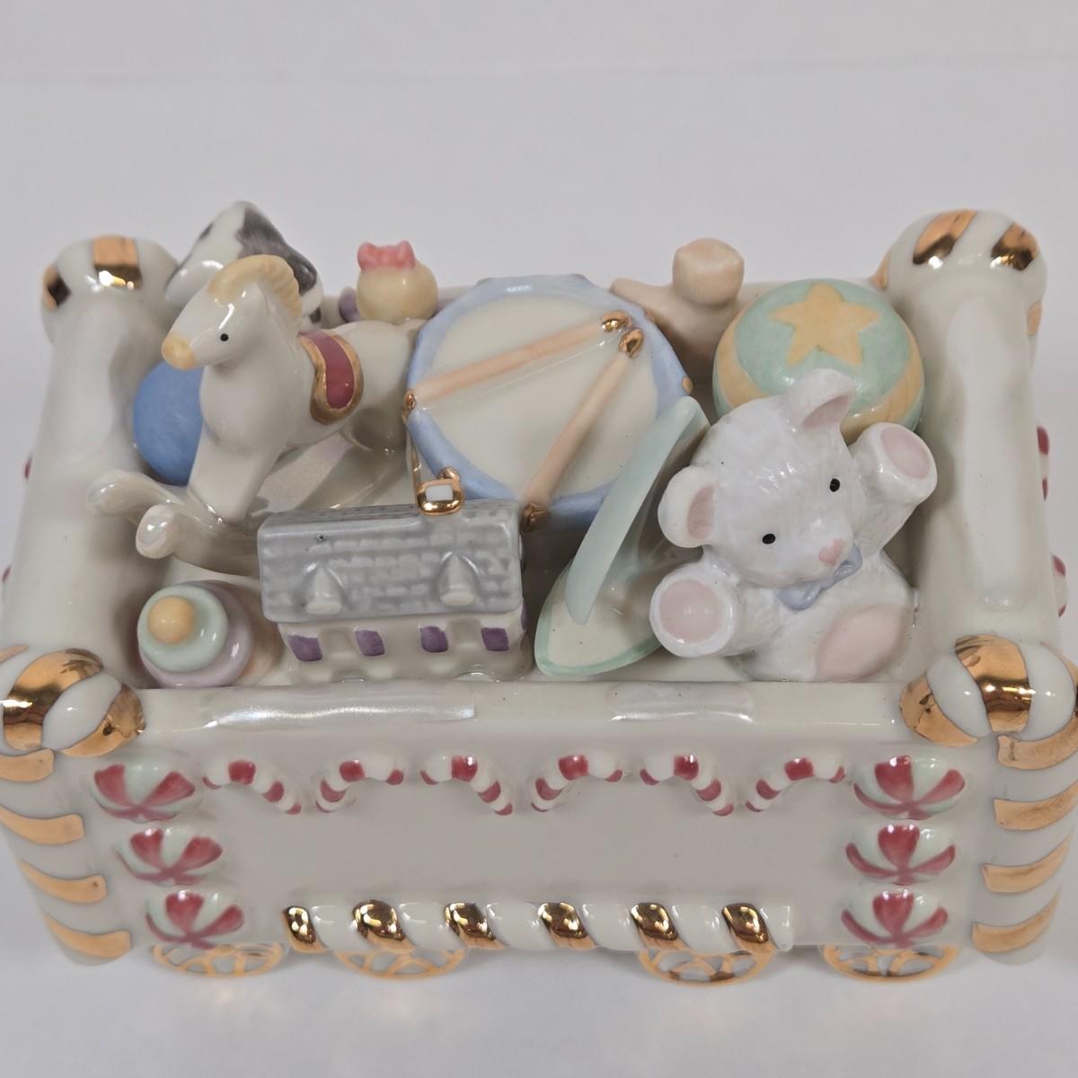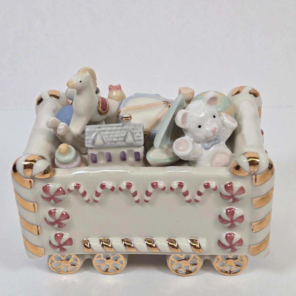 LOT 7: Lenox Corinthian Collection Vase, Train Toy Car, and Petite Rose Oval Hinged Trinket Box