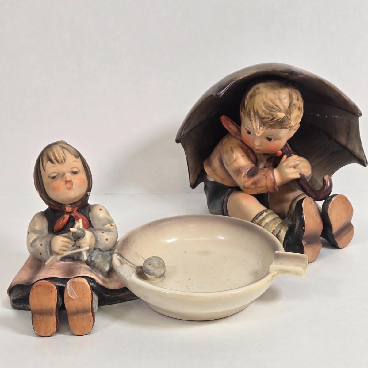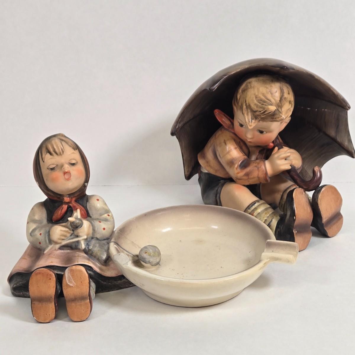 LOT 12: Goebel Hummel Happy Pastime Ashtray and Umbrella Boy Figurine -DAMAGED/REPAIRED