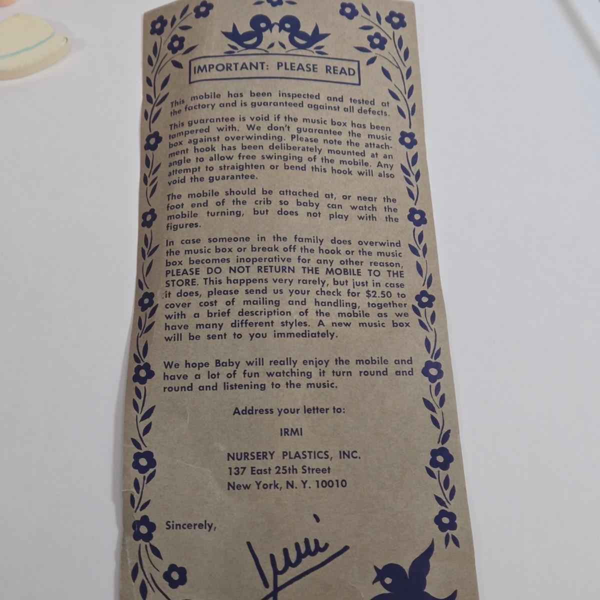 LOT 13: Vintage Mother Goose Musical Baby Mobile by Irmi in Original Box
