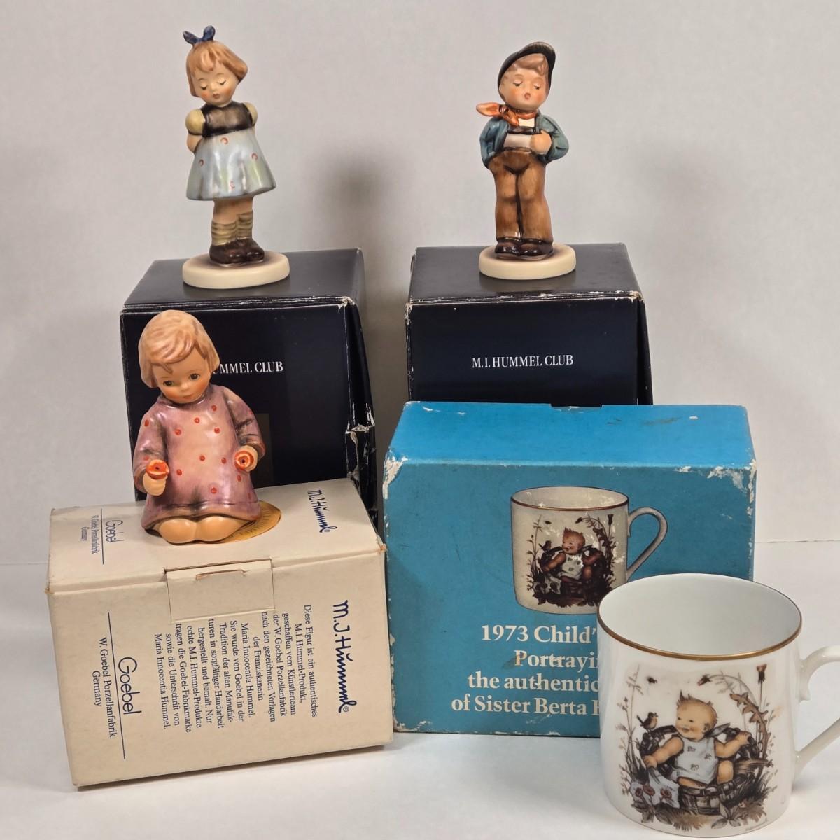 LOT 30: 1973 Vintage Schmid Bros. Inc. Berta Hummel Child's Cup, One For You, One For Me, Lucky Fellow, and Two Hands One Treat Hummels/ All in Original Boxes