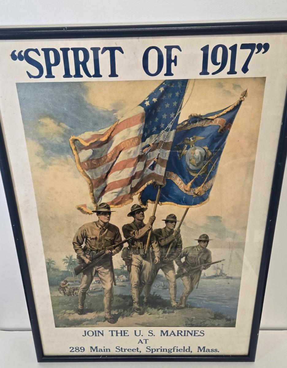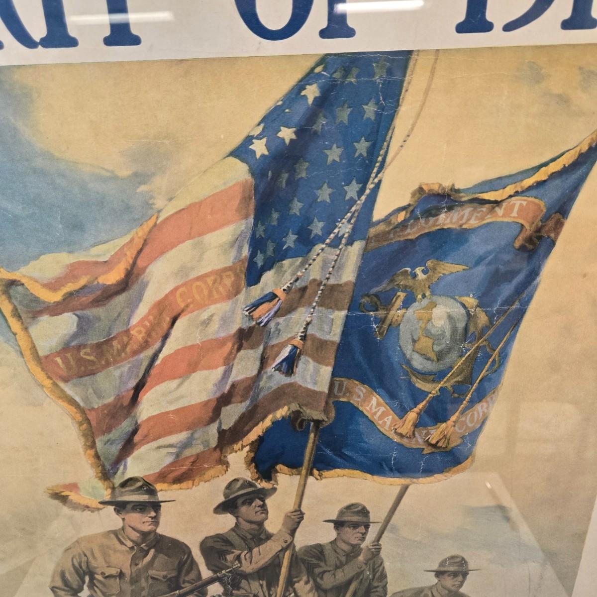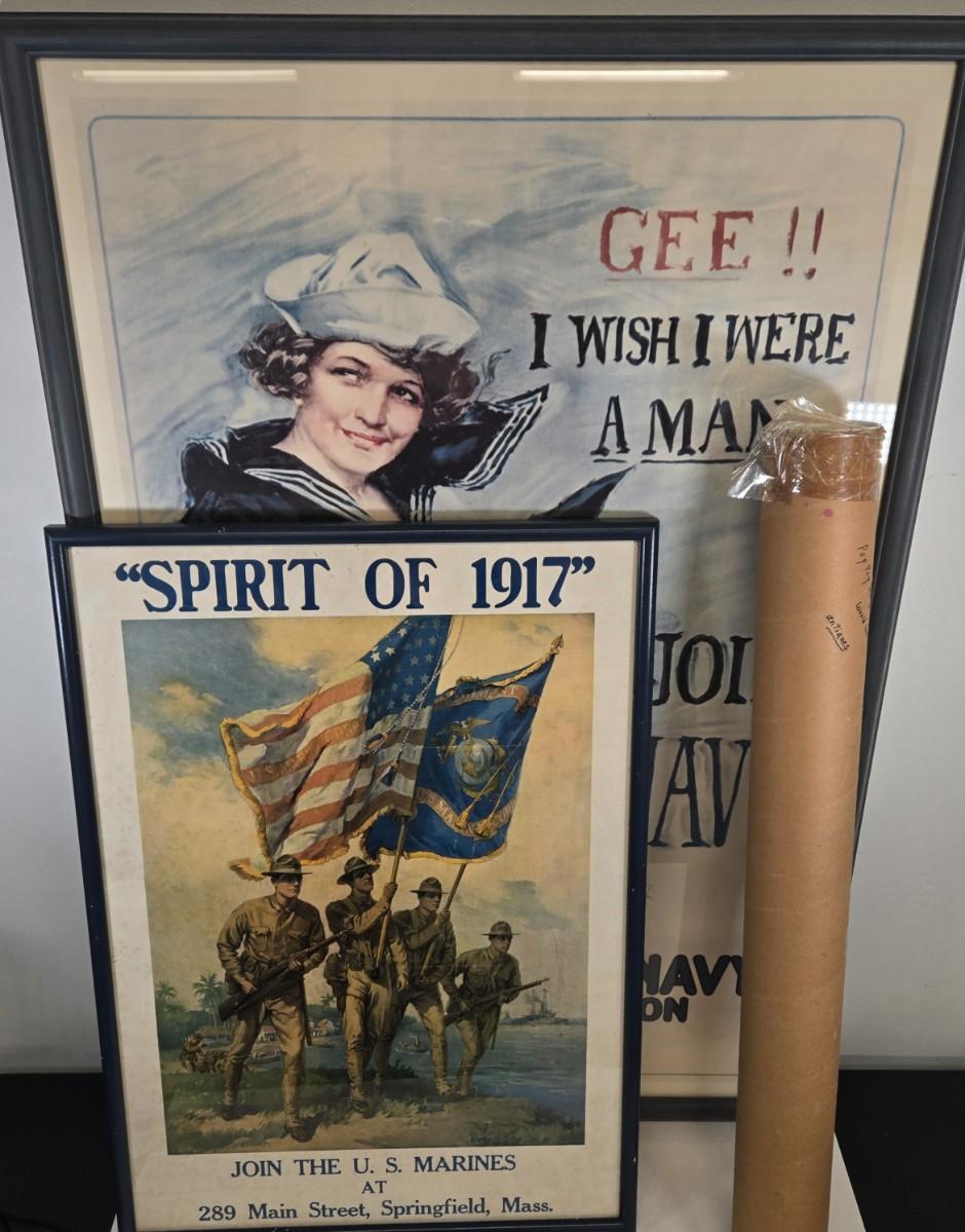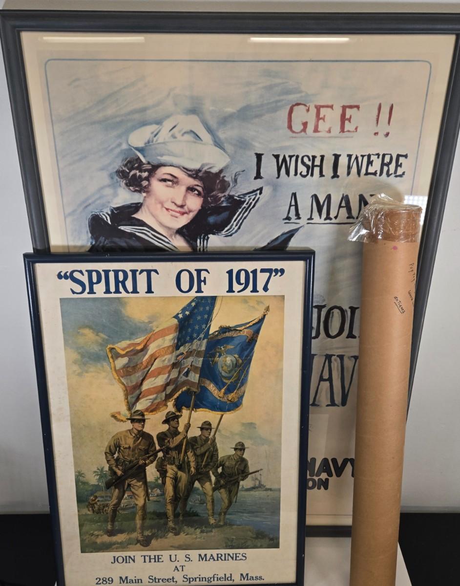 LOT 51: Framed WWI Recruitment Poster, Two Unframed In Cardboard Tube, and Framed "Spirit of 1917" Poaster