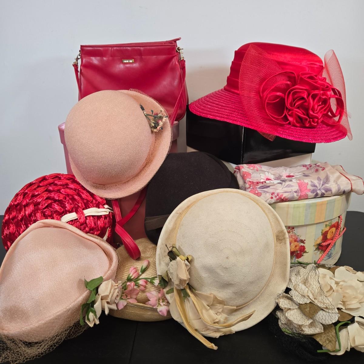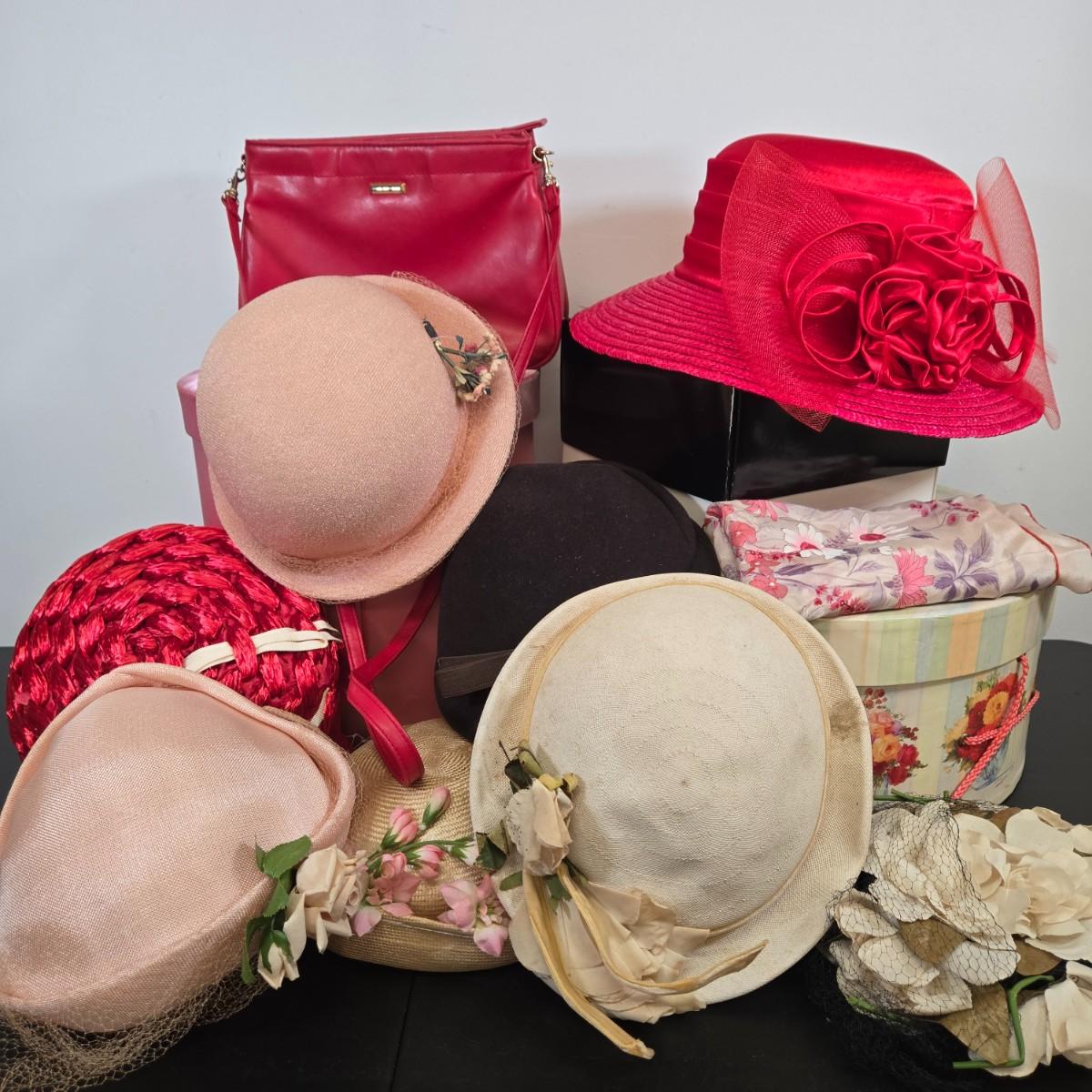 LOT 80: Variety of Ladies' Hats, Red Purse, and Ladies' Scarf- Glenover, Brandt and more