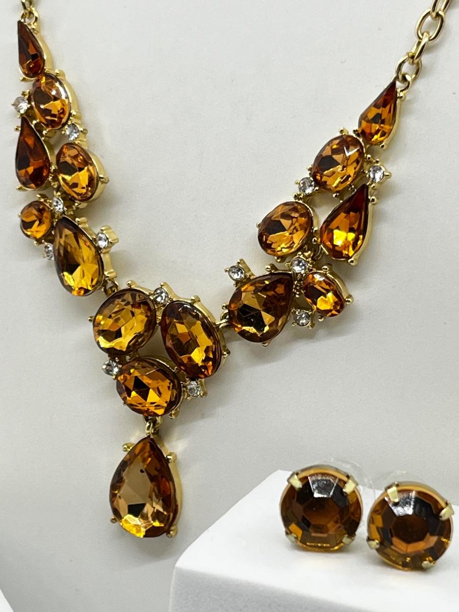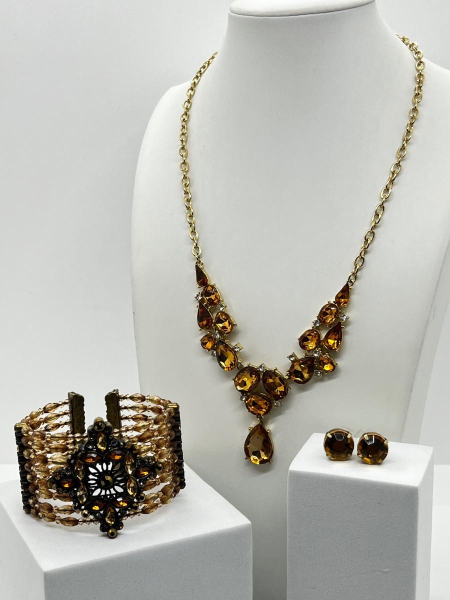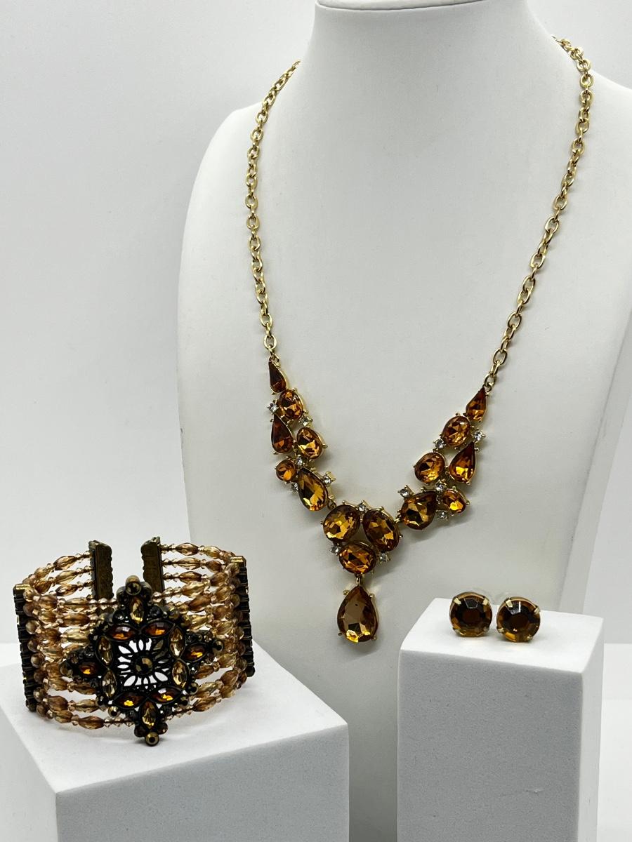 LOT 161J: Crystal Necklace and Earrings with a Faux Citrine Cuff Bracelet