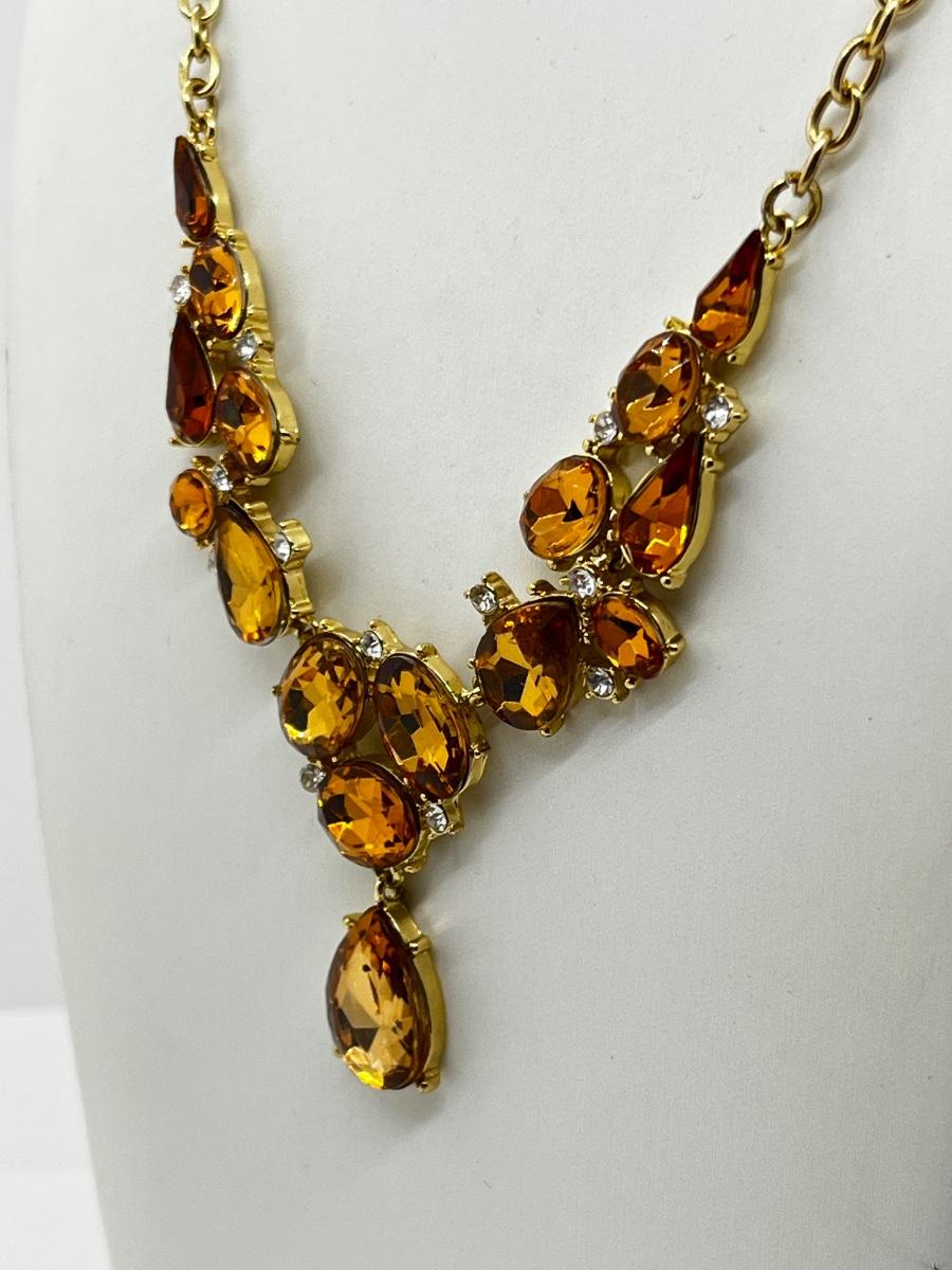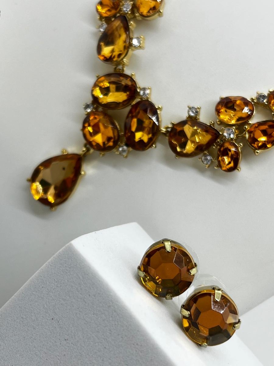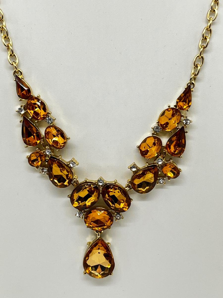 LOT 161J: Crystal Necklace and Earrings with a Faux Citrine Cuff Bracelet