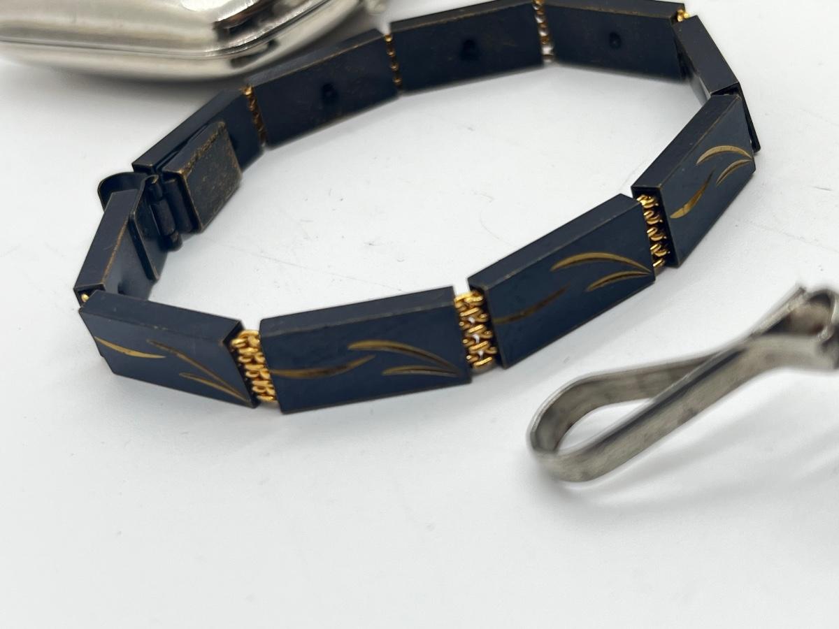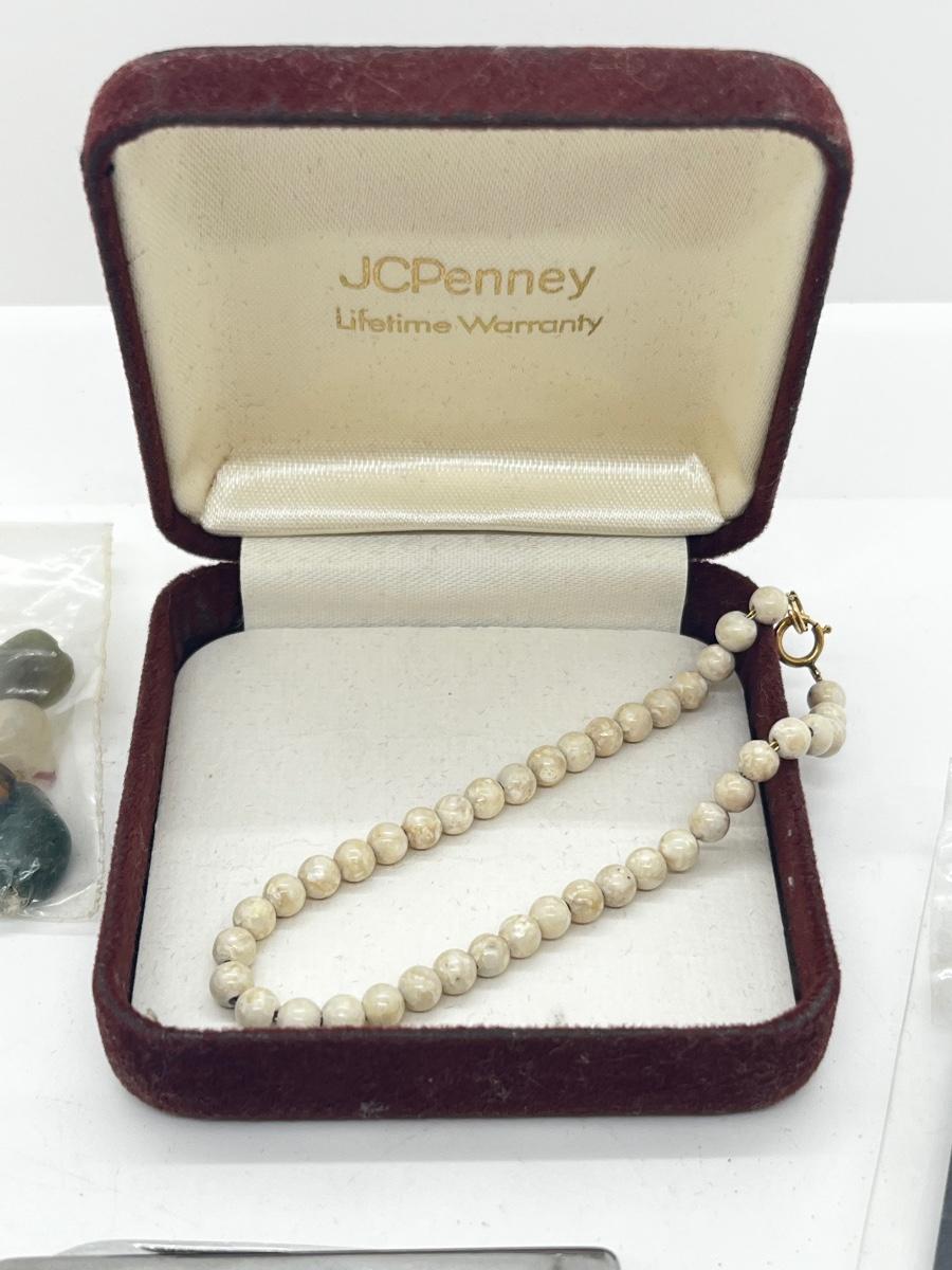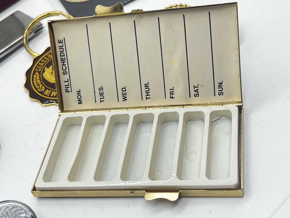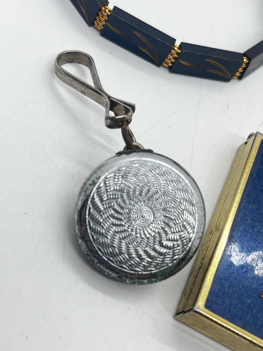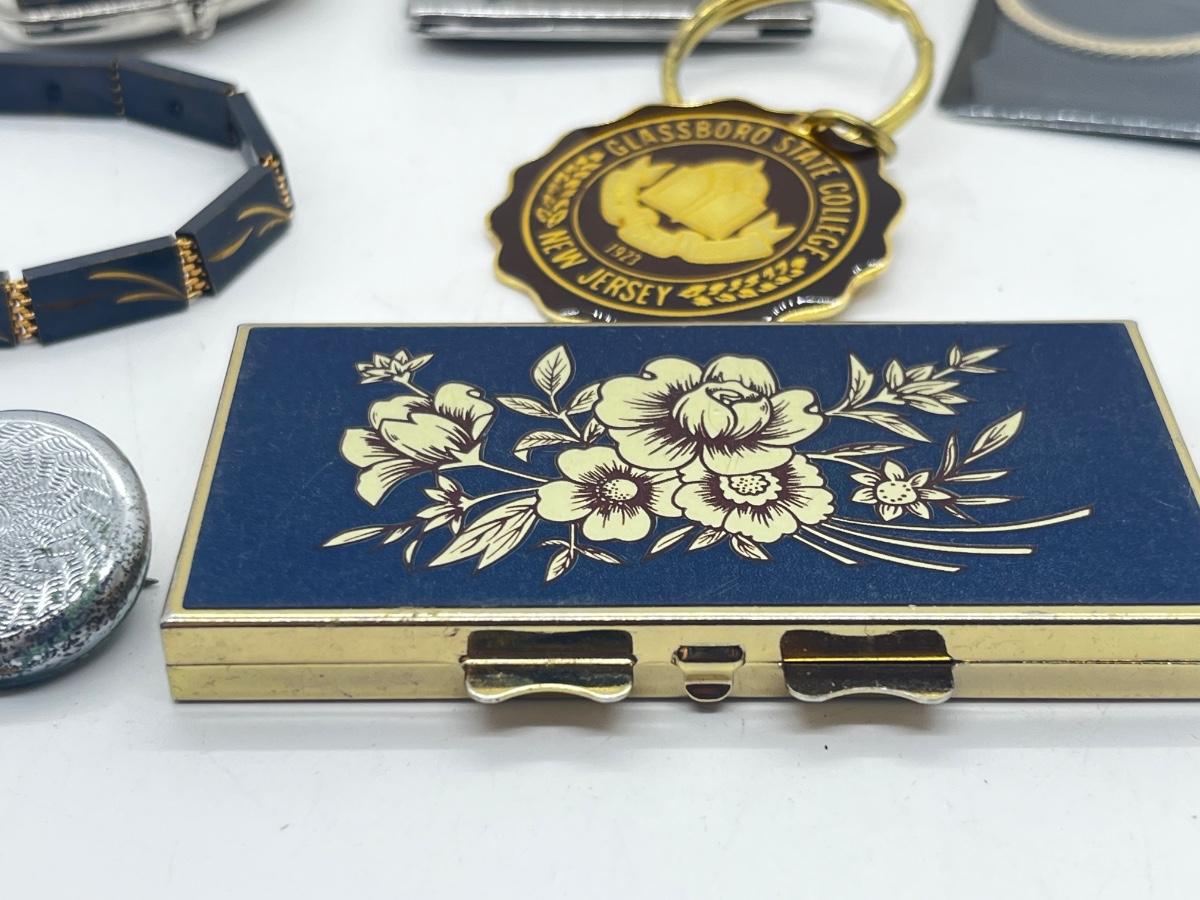 LOT 177J: 14K Gold Filled Natural Stone Bracelet, Black and Gold Metal Bracelet, Eastern Star Compact, Pill Box and More