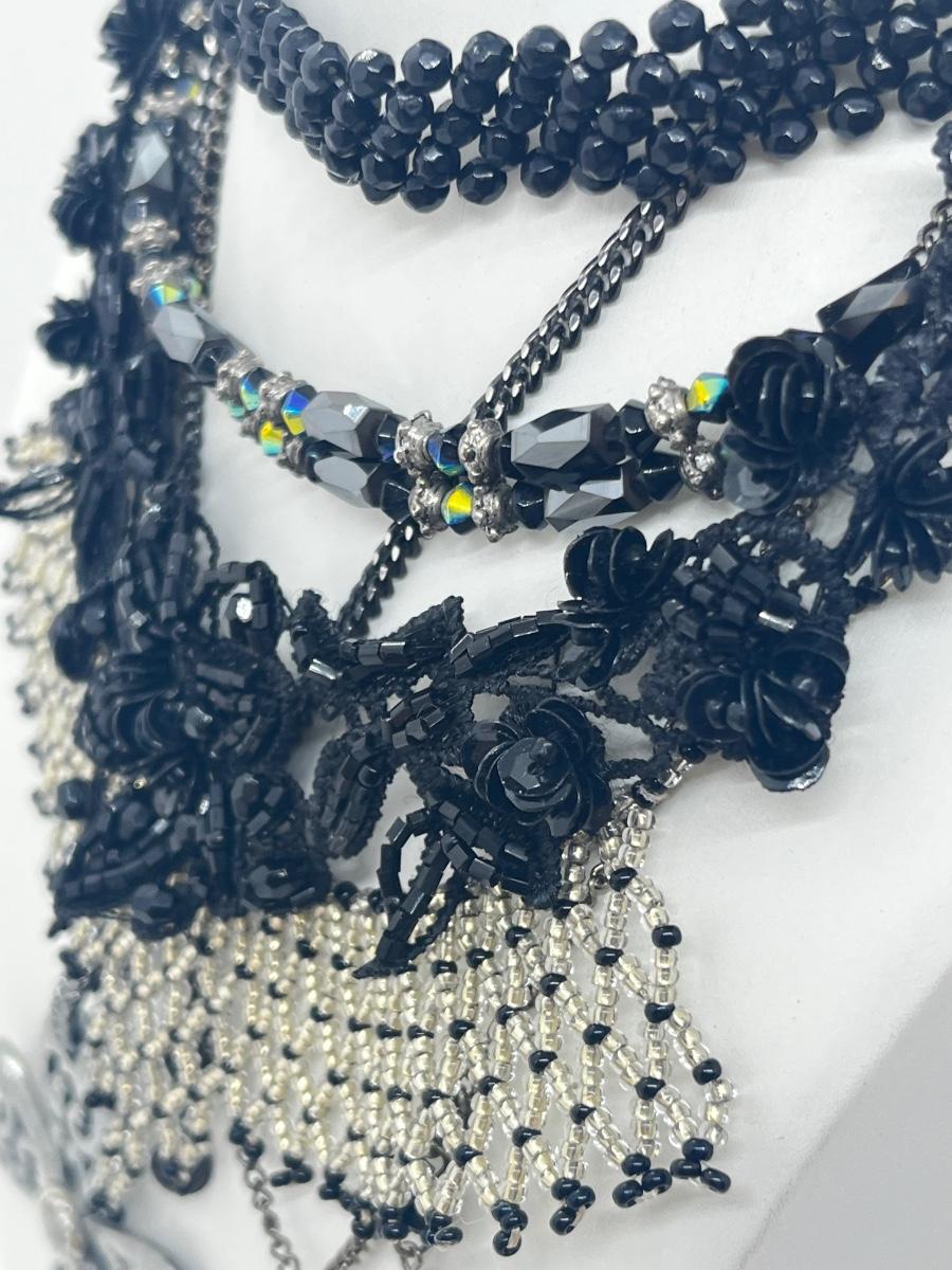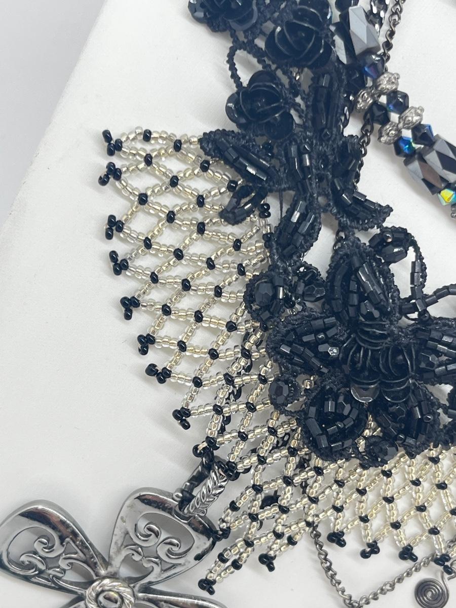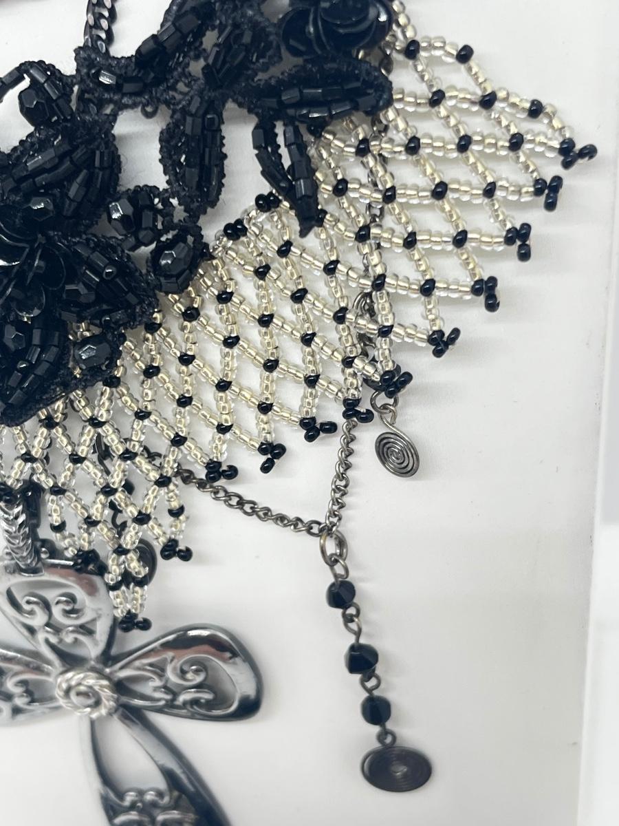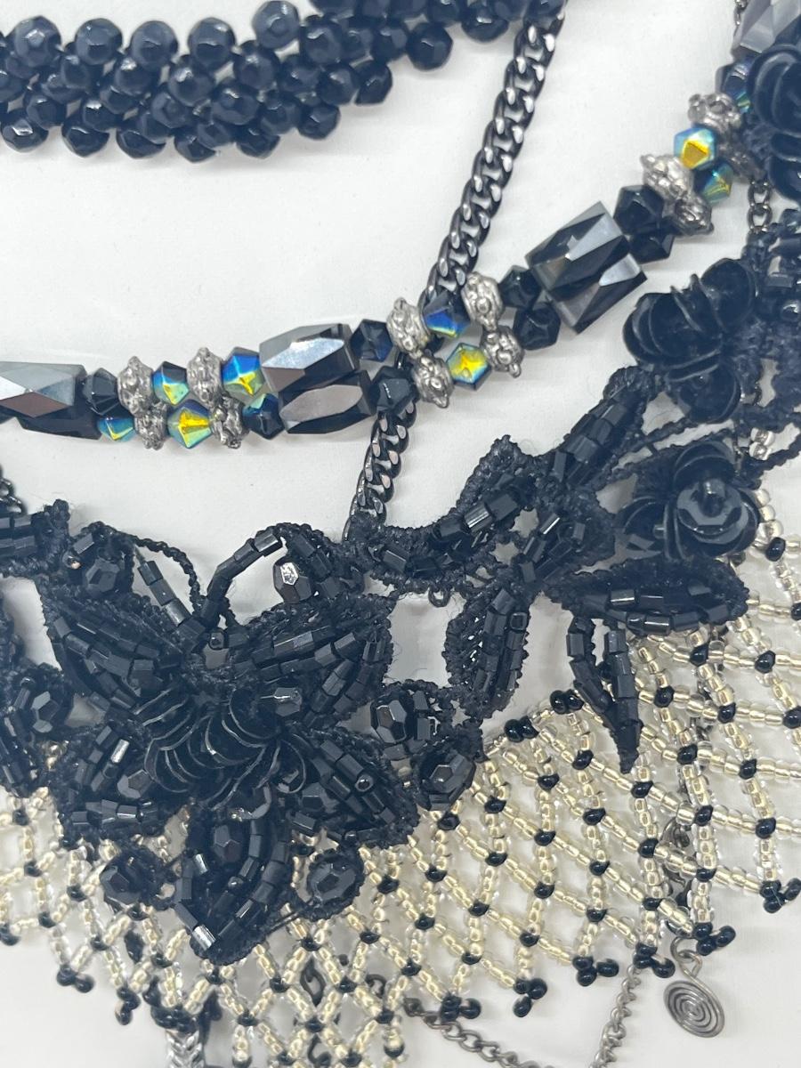 LOT: 180J: Vintage Seed Beaded Necklace, Black Lace Bead Necklace, Shoe Clips and More