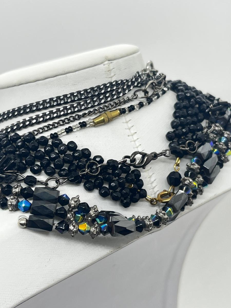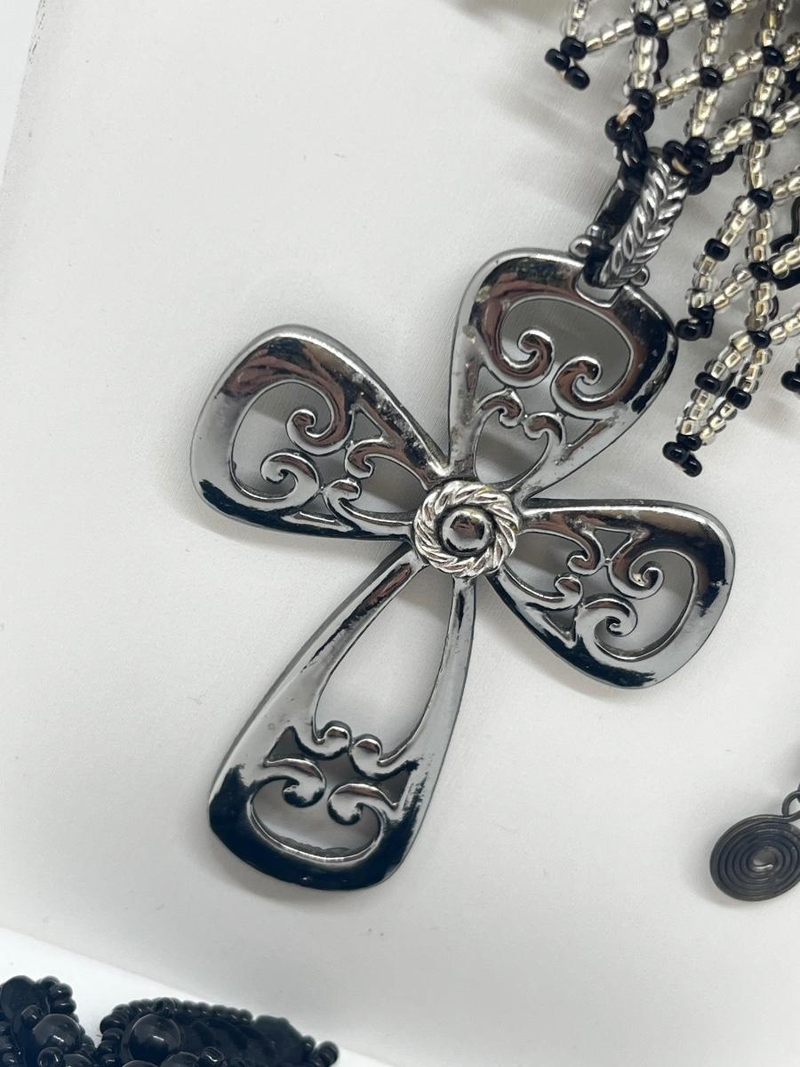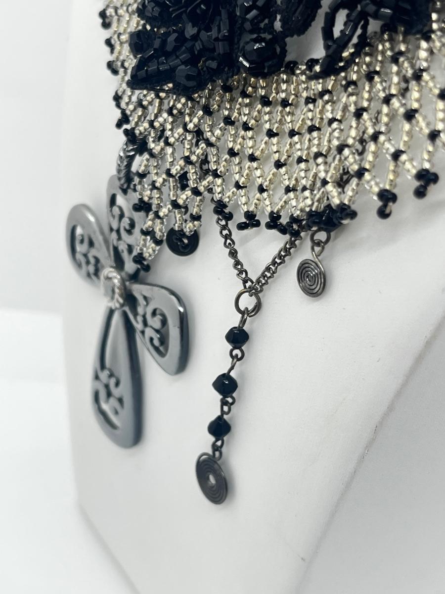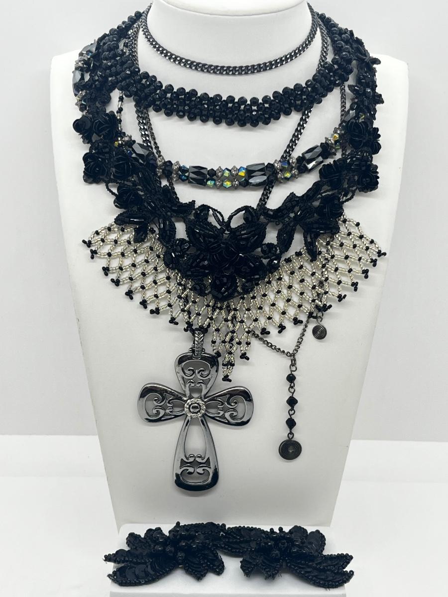 LOT: 180J: Vintage Seed Beaded Necklace, Black Lace Bead Necklace, Shoe Clips and More