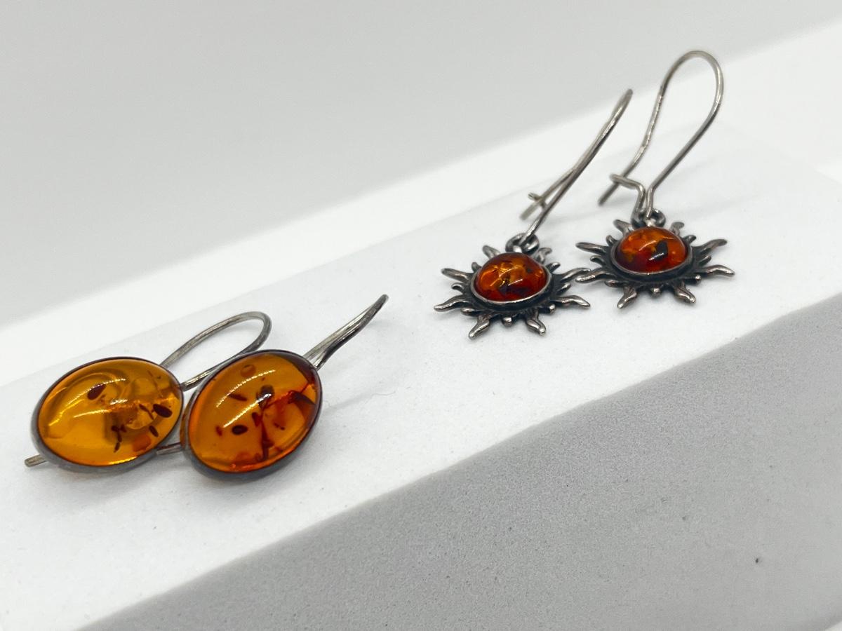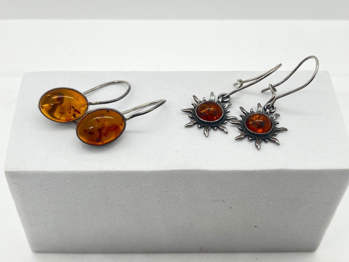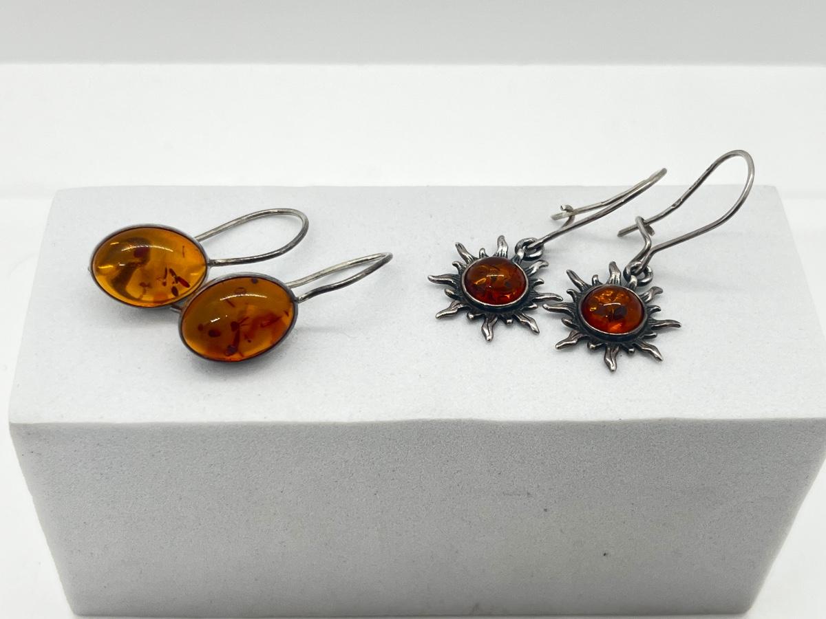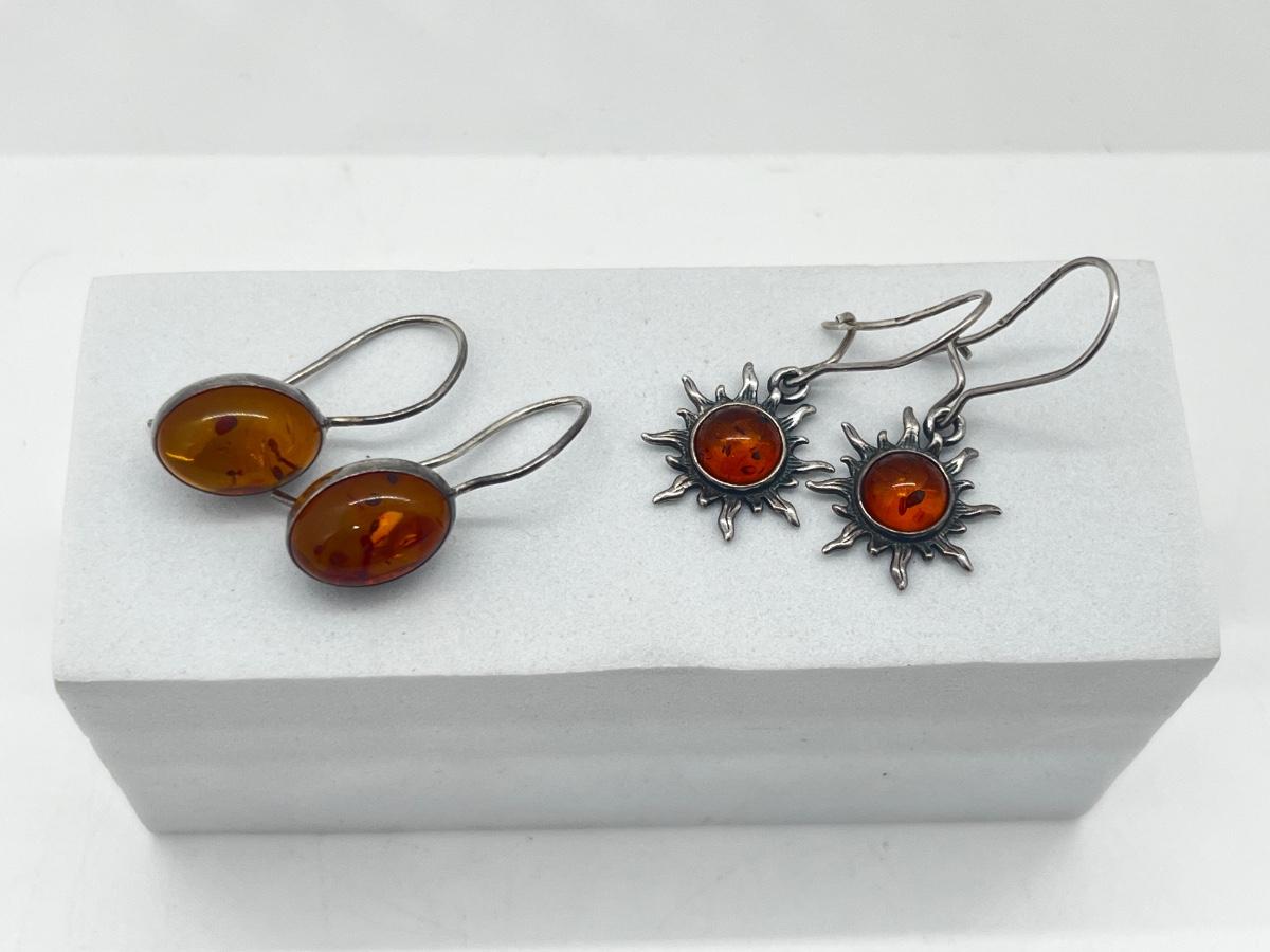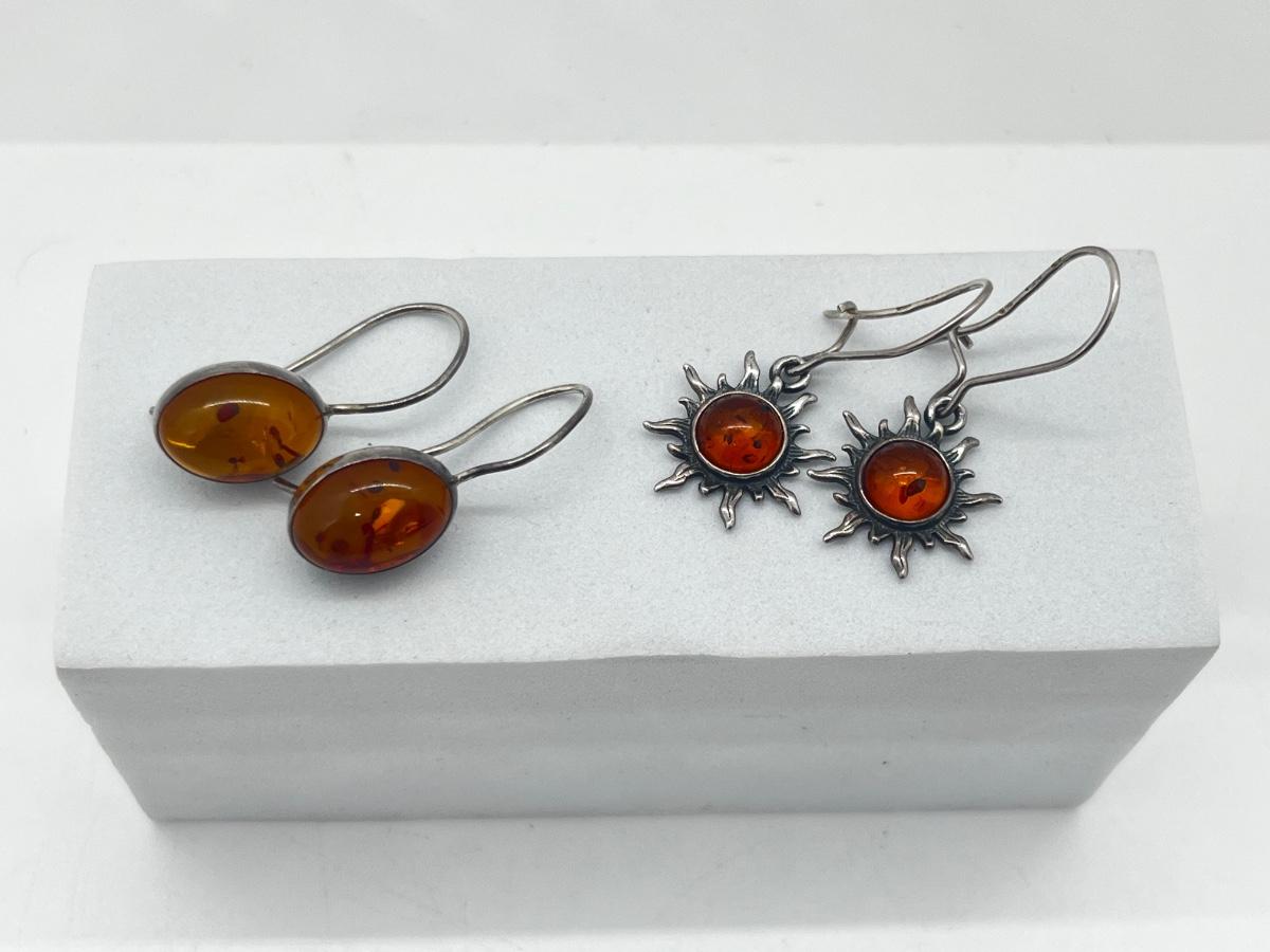 LOT 181J: Two Pairs Sterling Silver and Amber Pierced Earrings