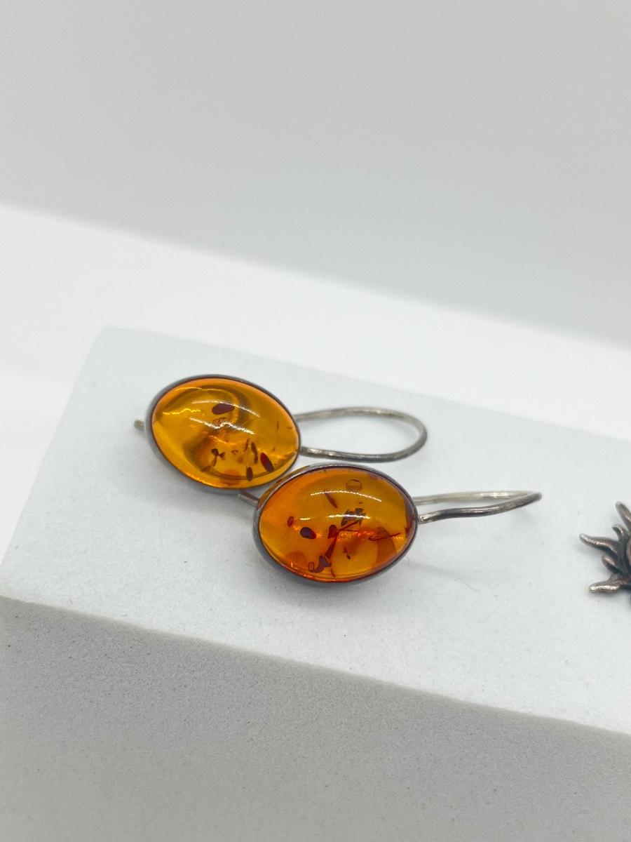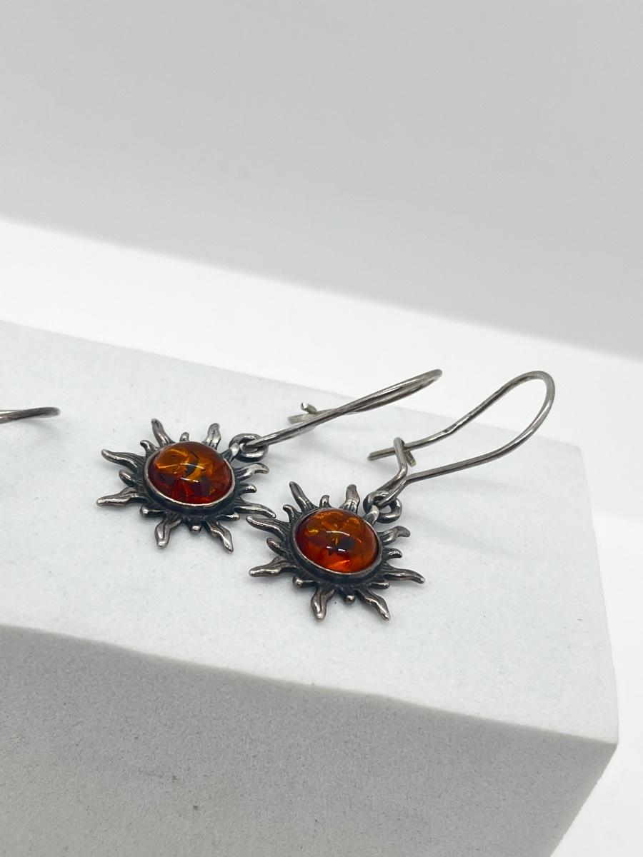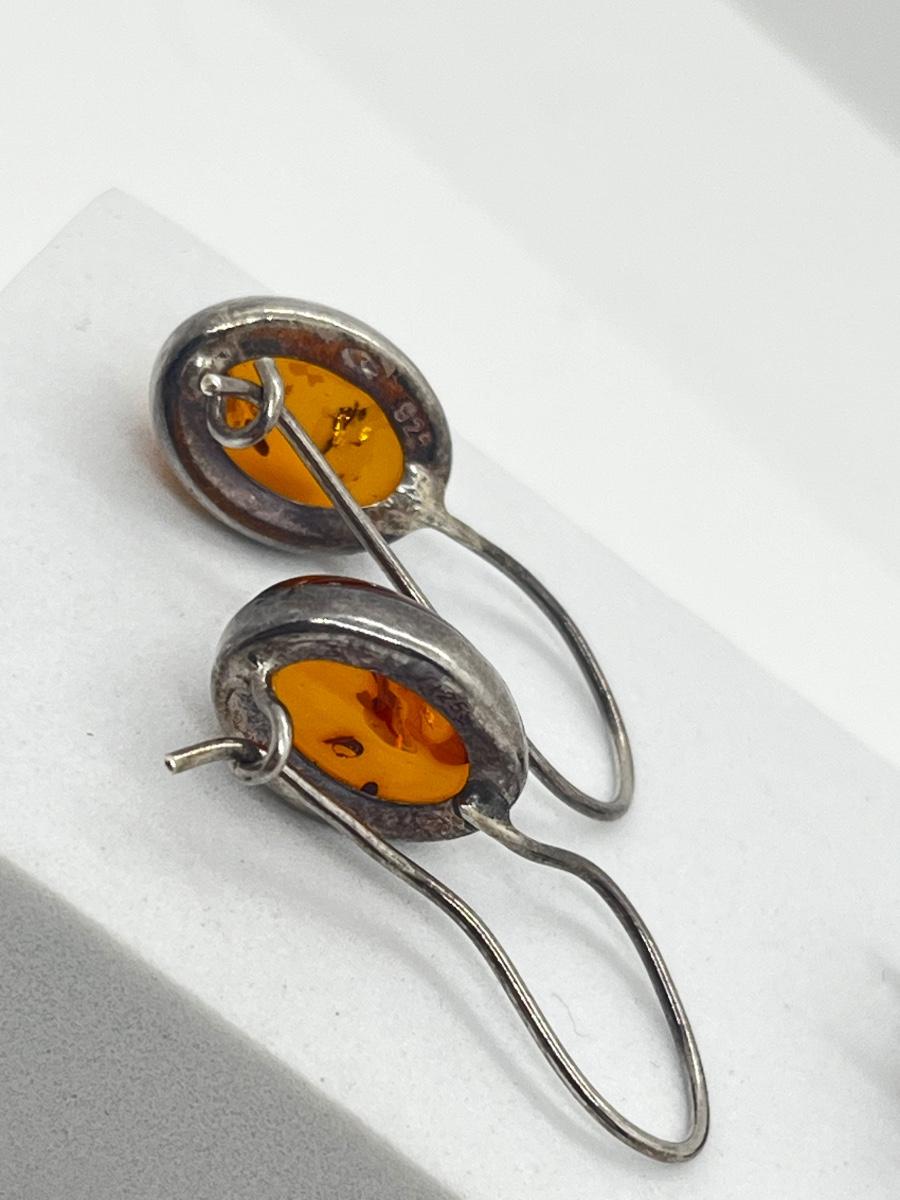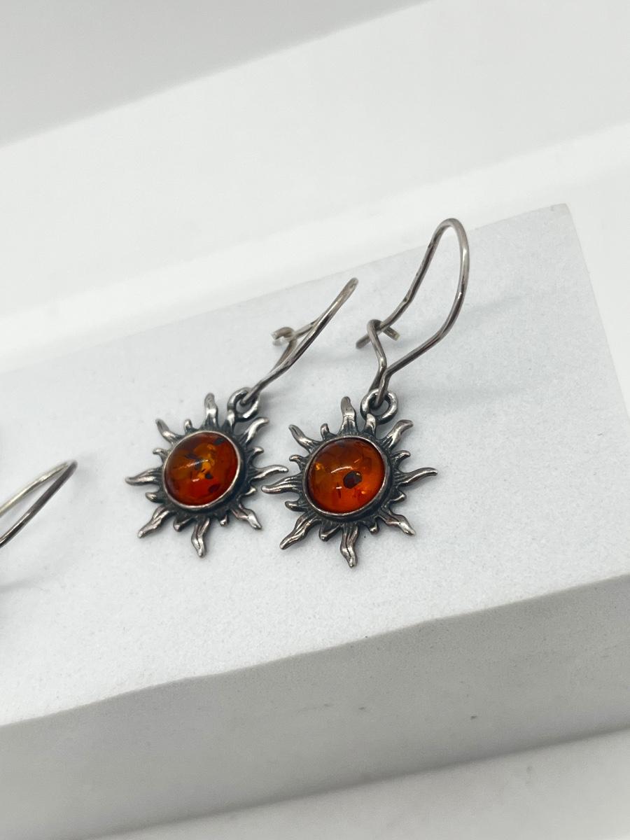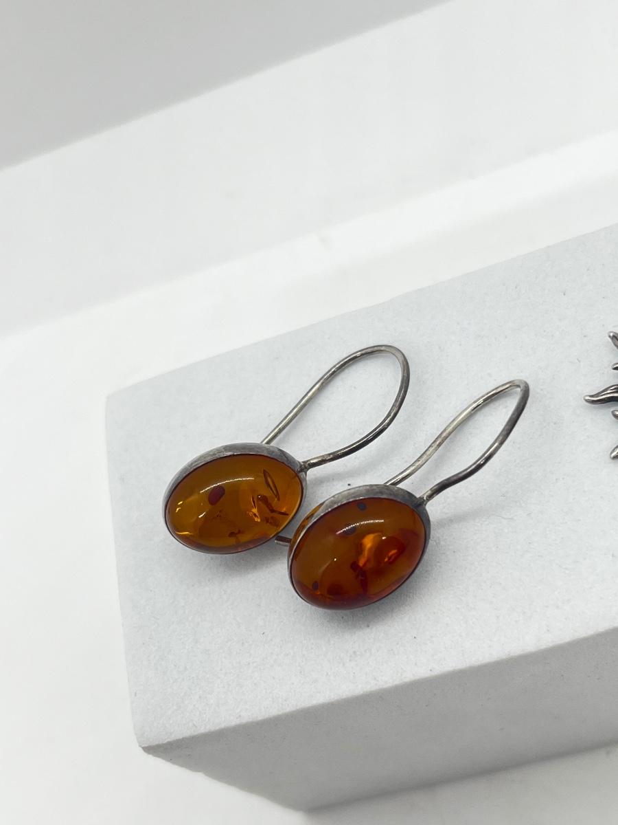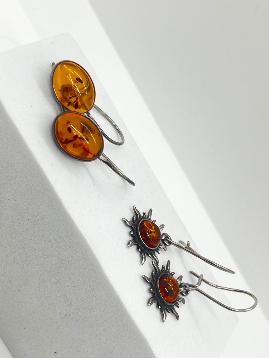 LOT 181J: Two Pairs Sterling Silver and Amber Pierced Earrings