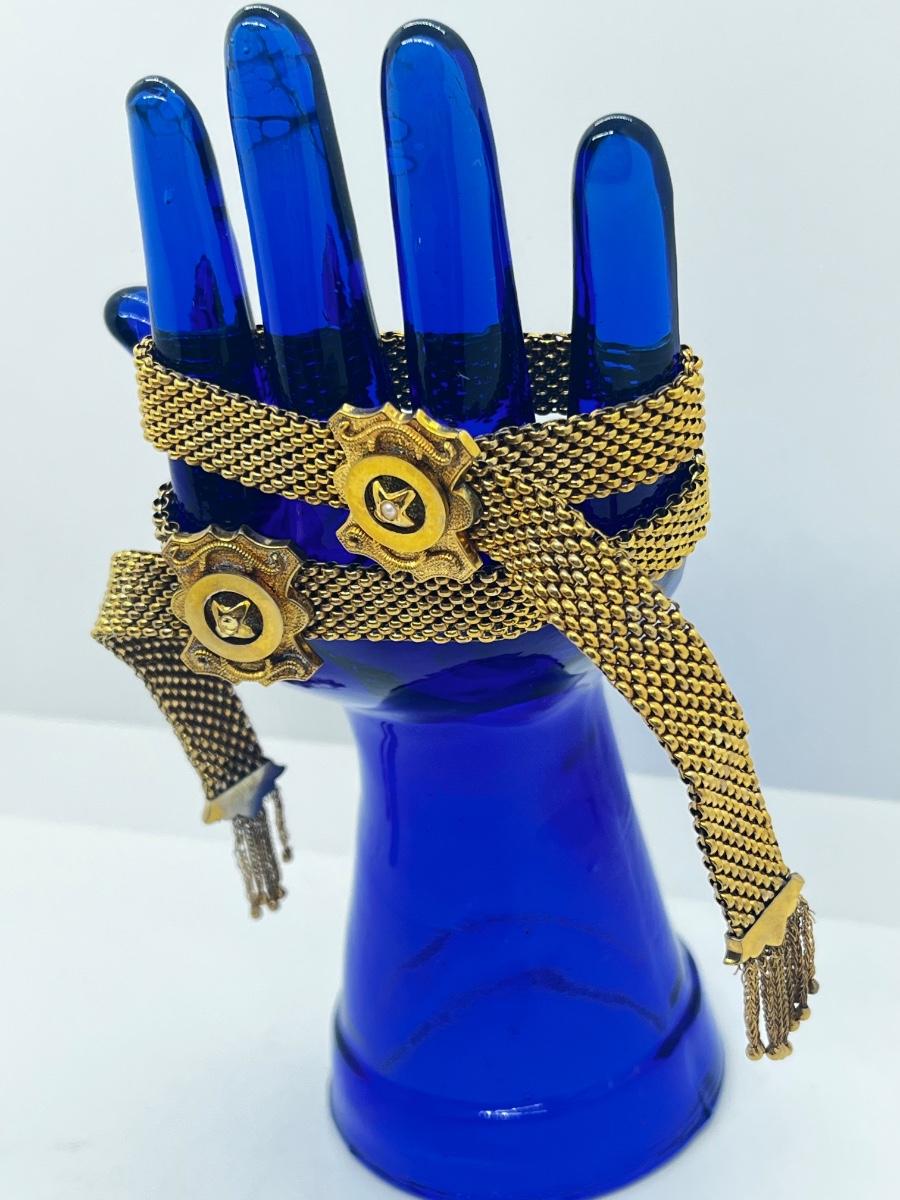 LOT 184J: Rare Find! Pair of Antique Victorian Gold Filled Mesh Wedding Bracelets