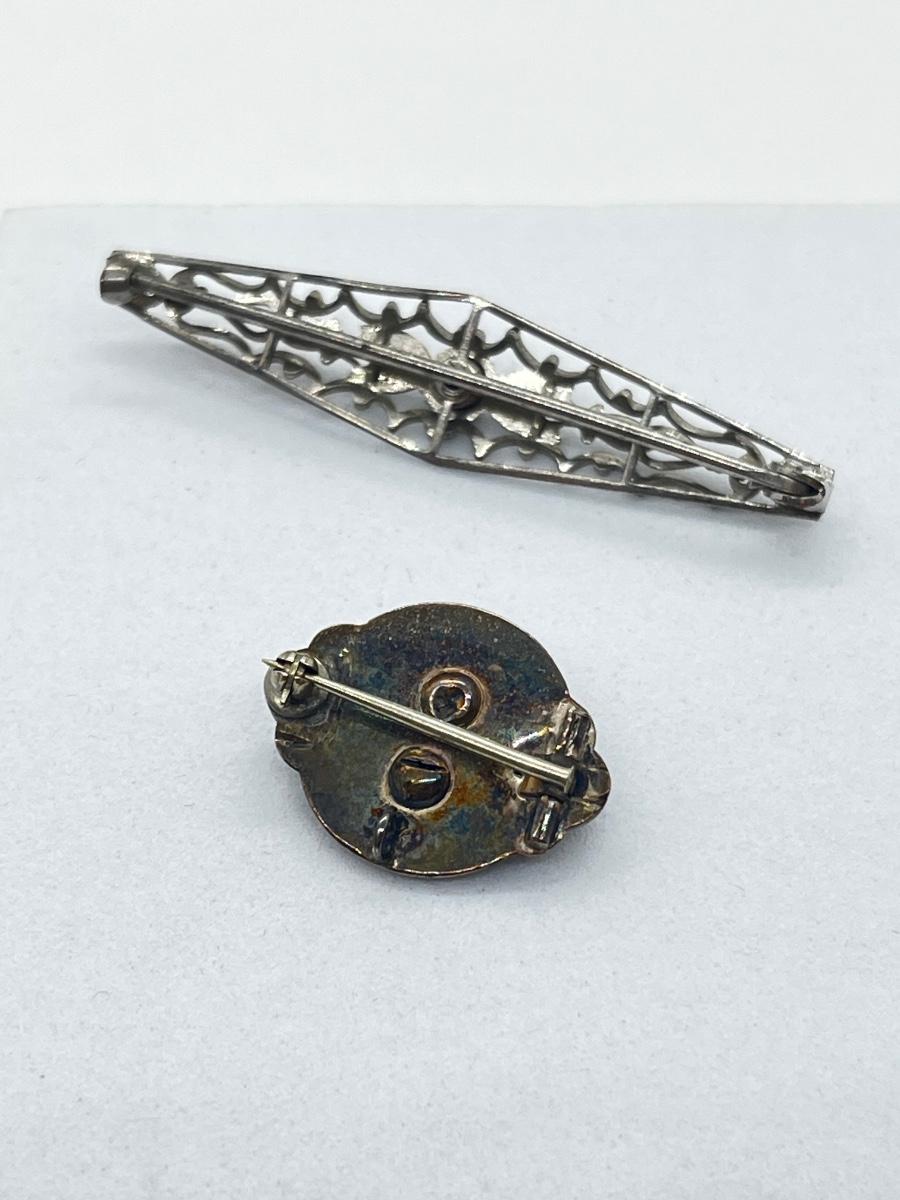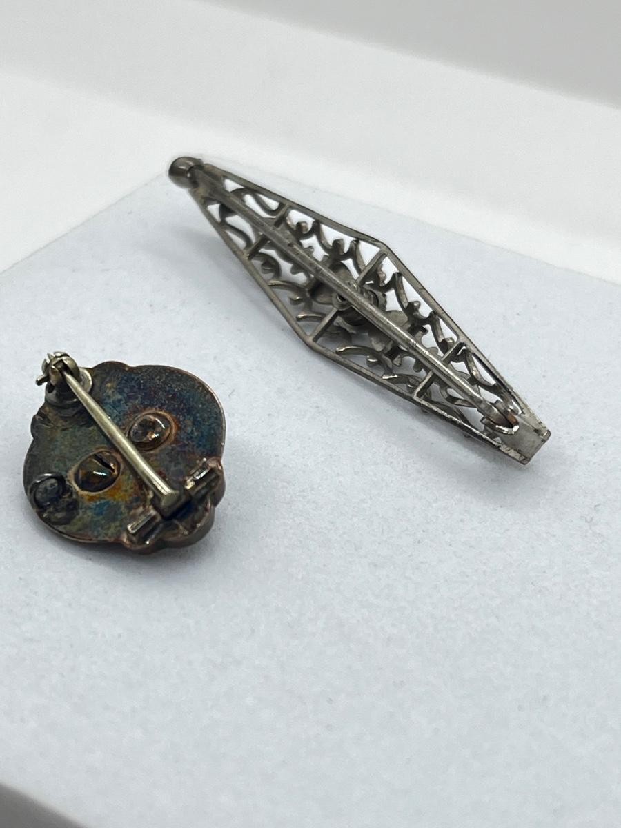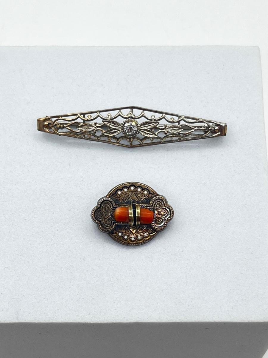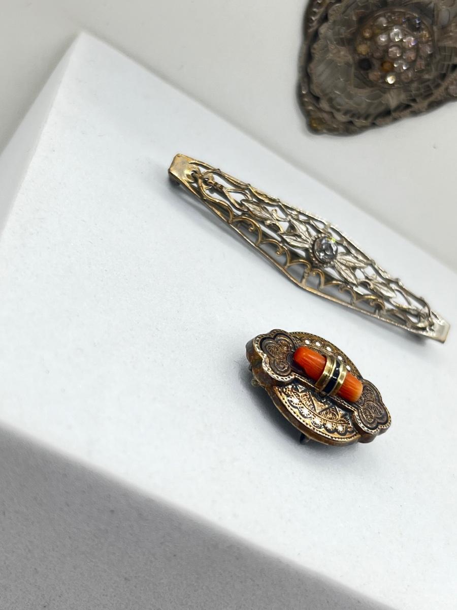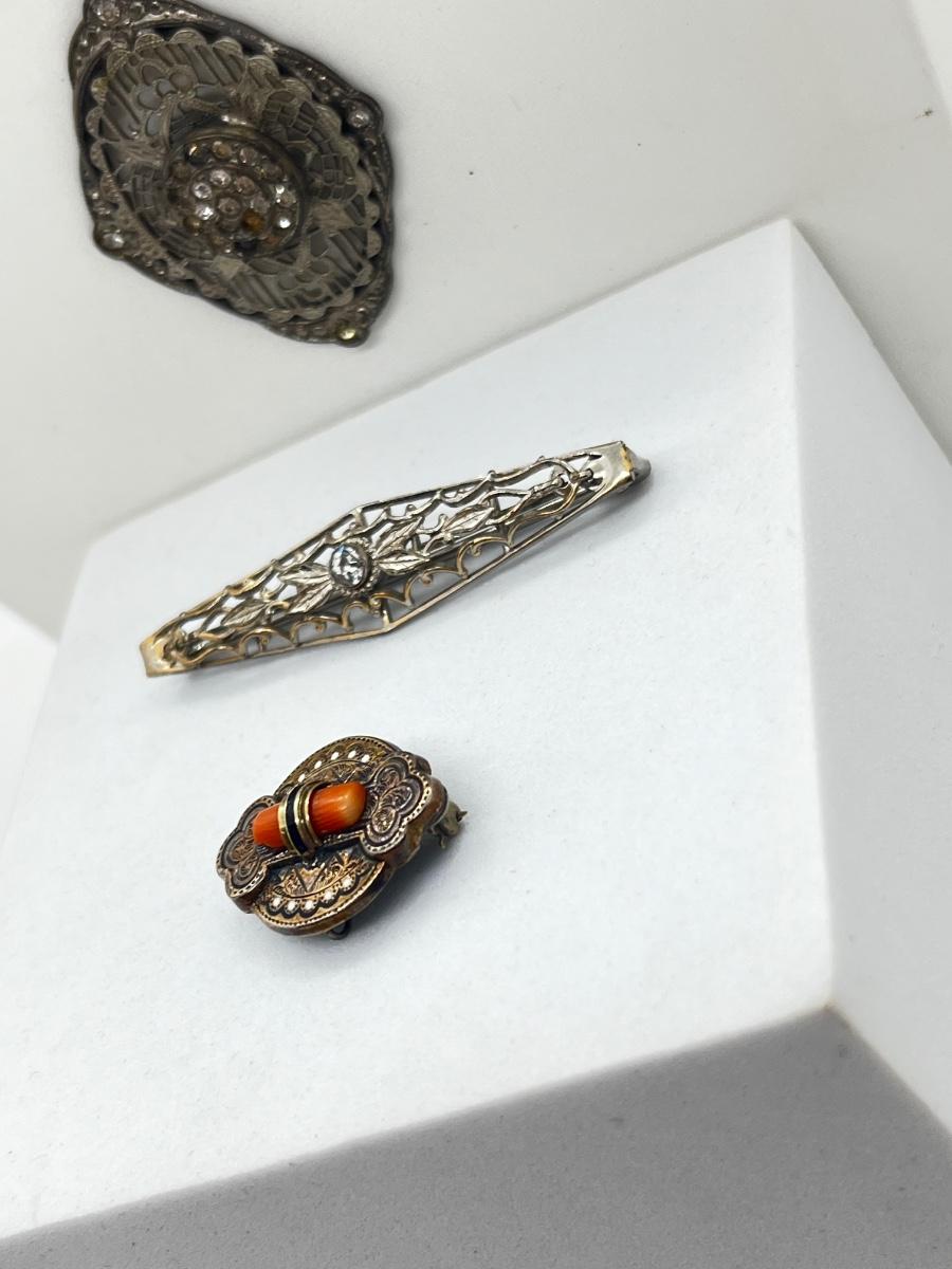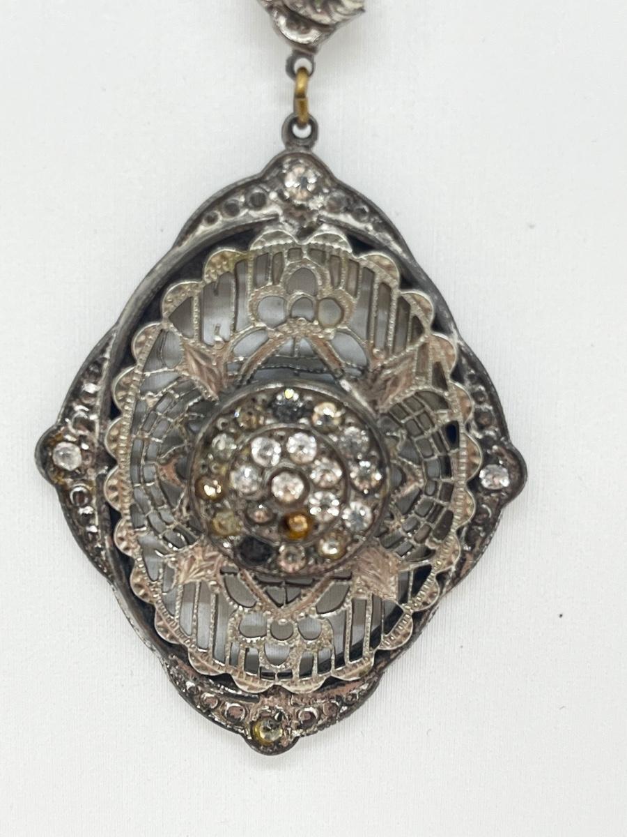 LOT 186J: Antique Victorian Enamel Coral Pendant/Pin, Sterling Rhinestone Fillagree Pendant Necklace and More