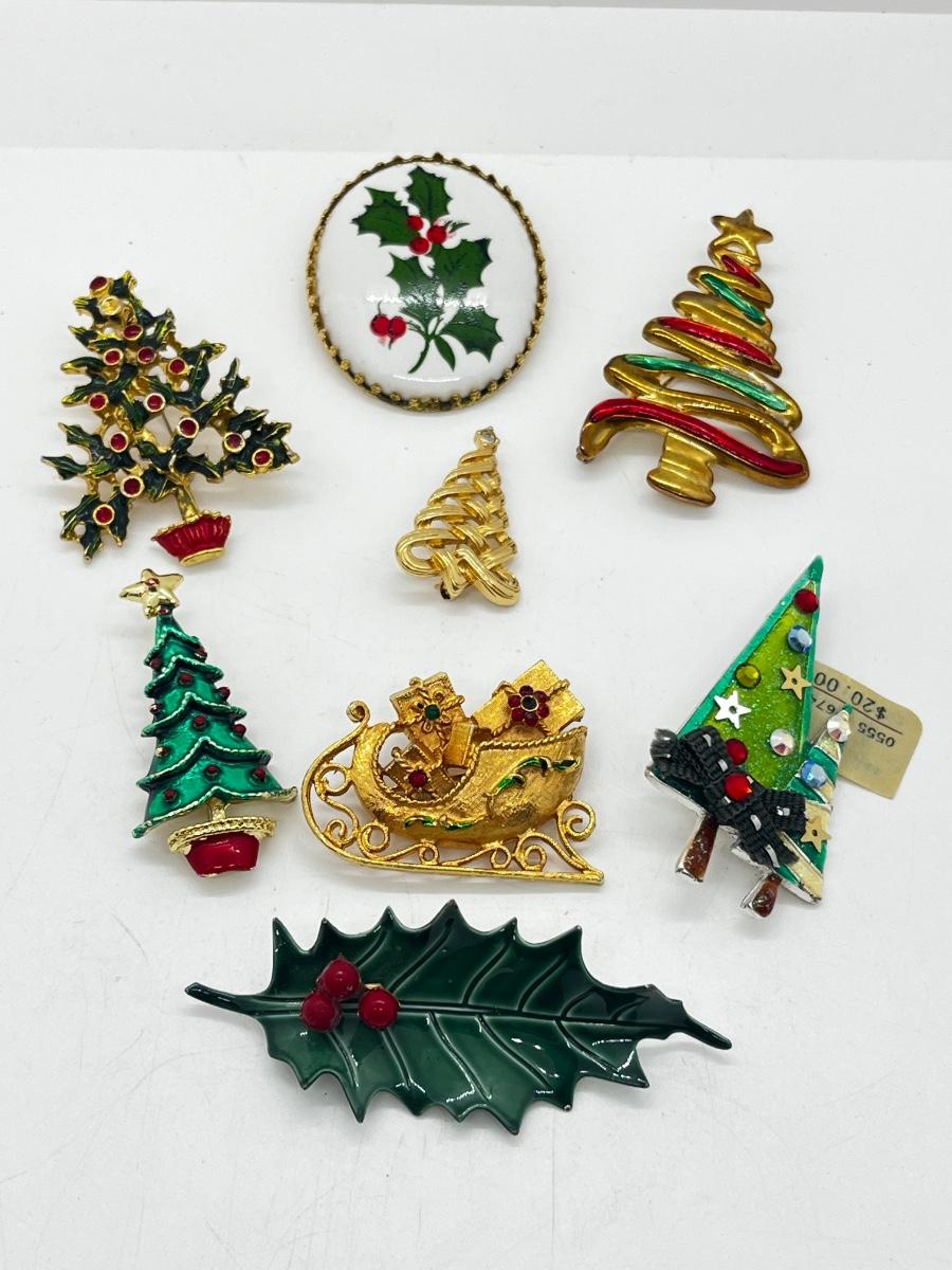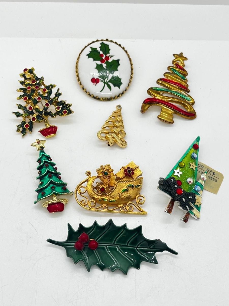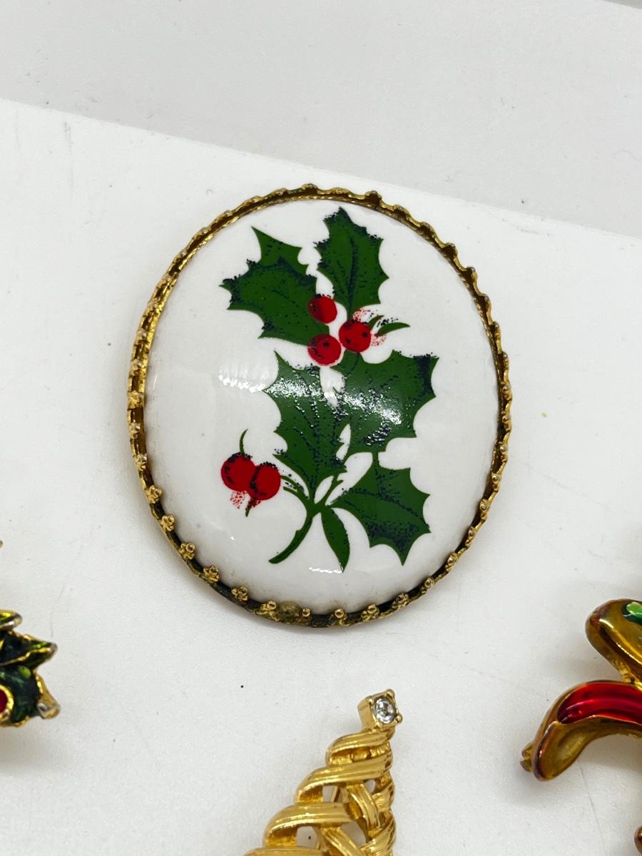 LOT: 191J: Christmas Brooch Lot: Avon, AJMC and More