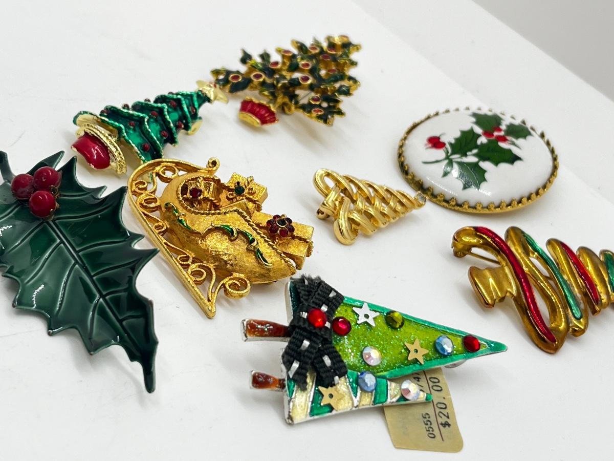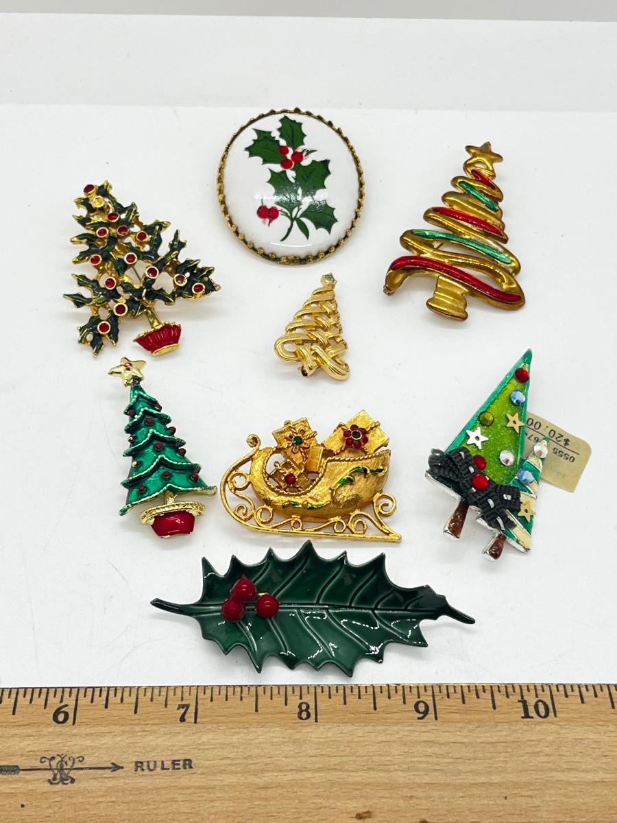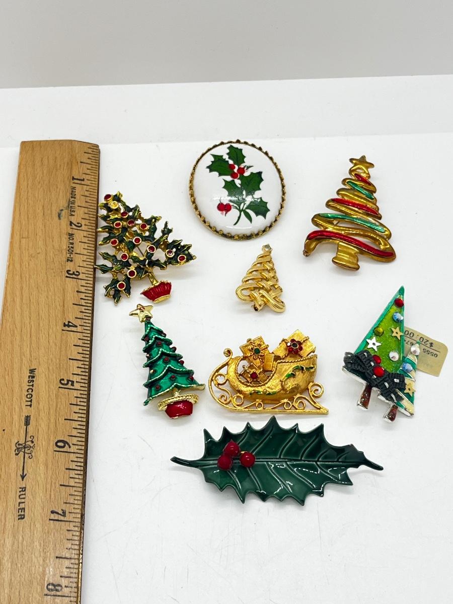 LOT: 191J: Christmas Brooch Lot: Avon, AJMC and More