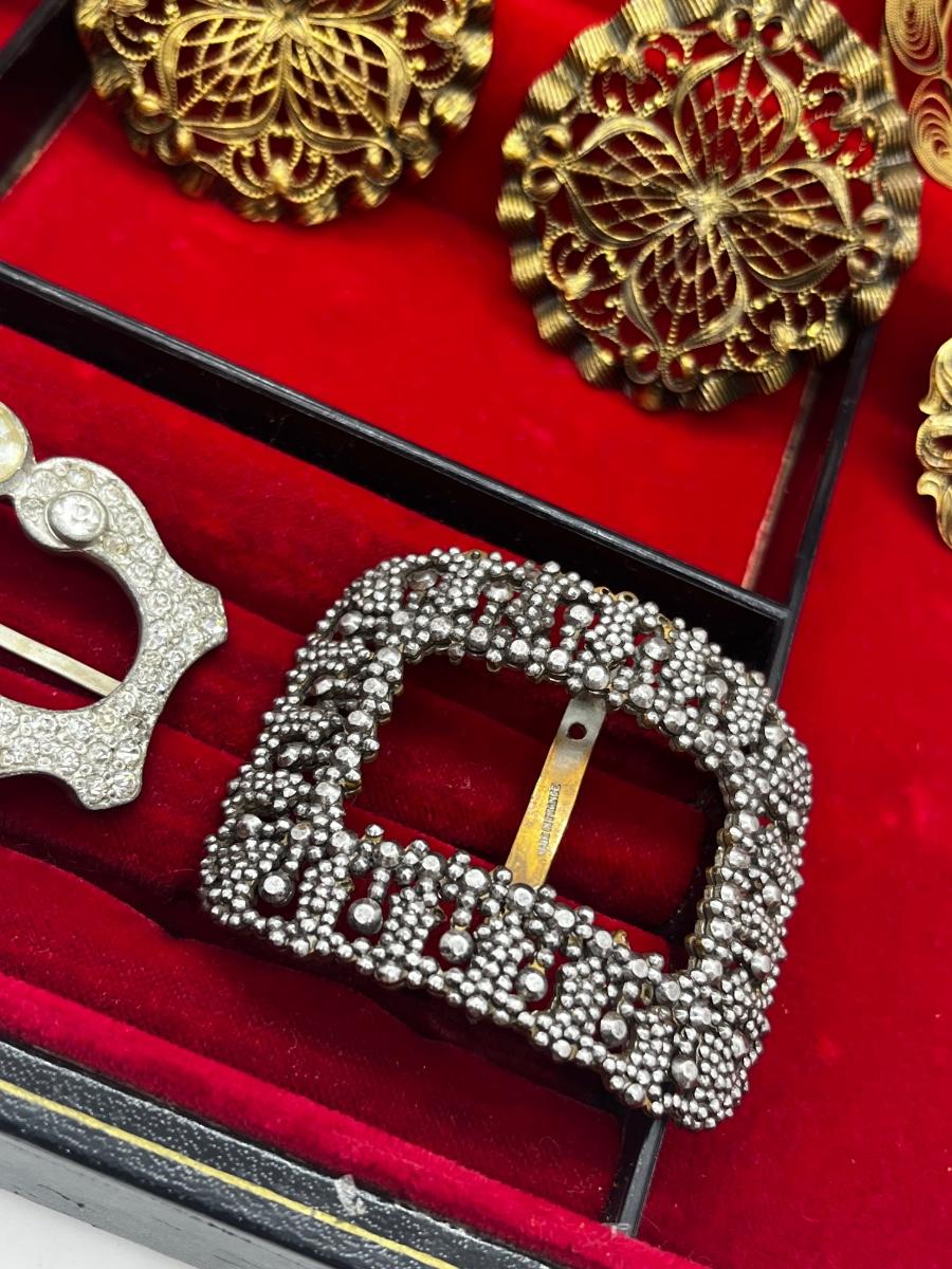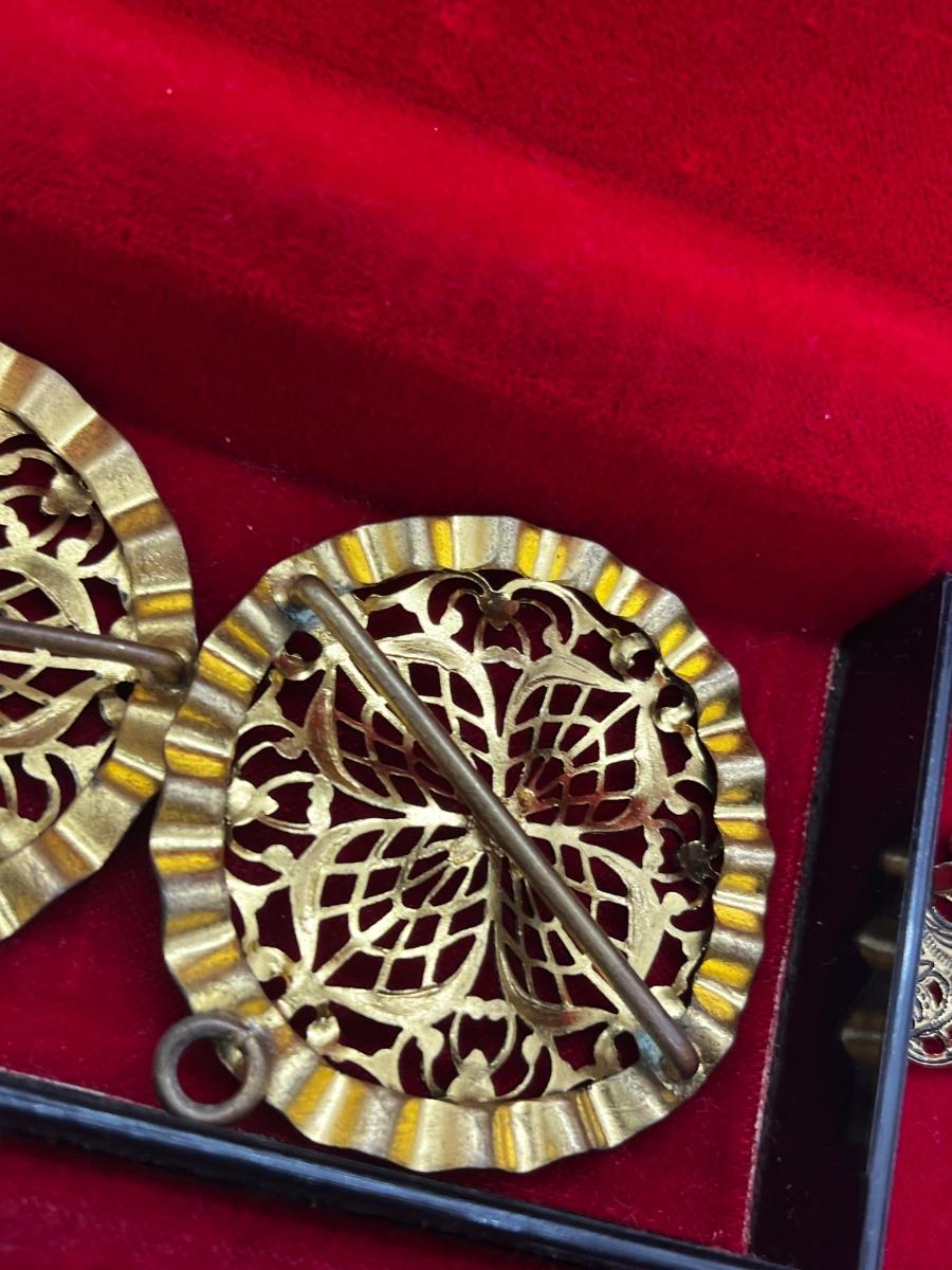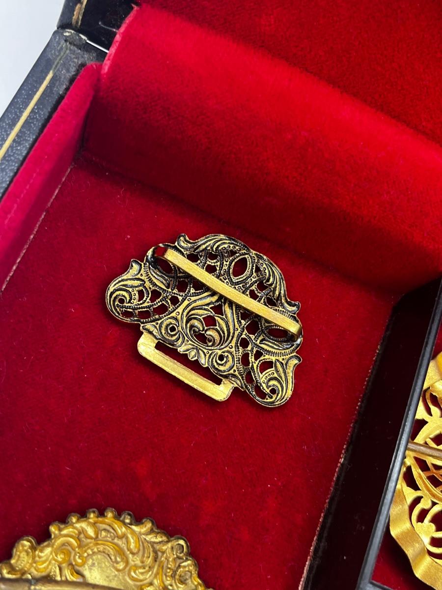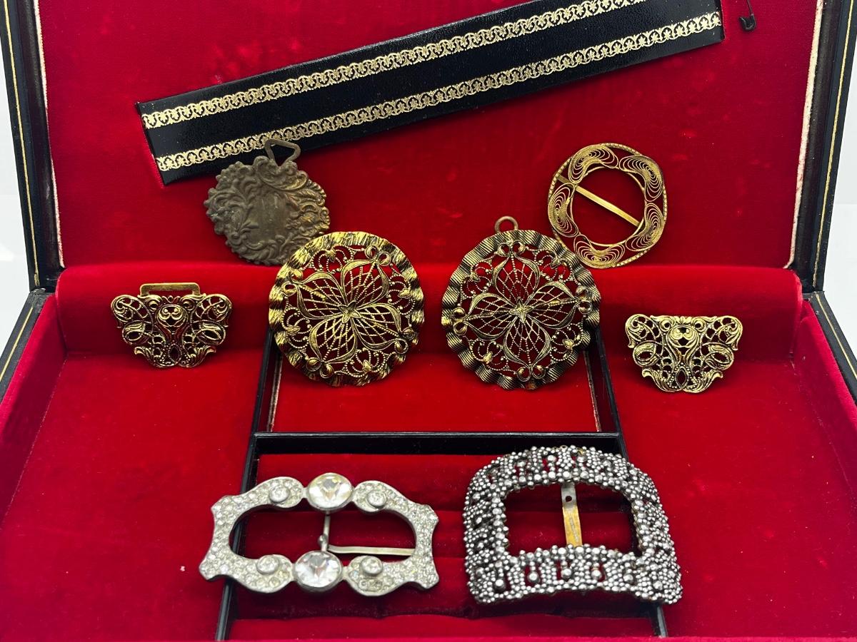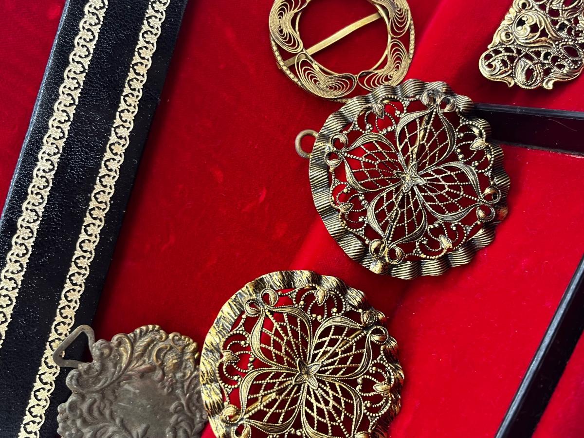 LOT 198J: Antique Victorian Belt Buckles with a Vintage Red Velvet Lined Jewelry Case