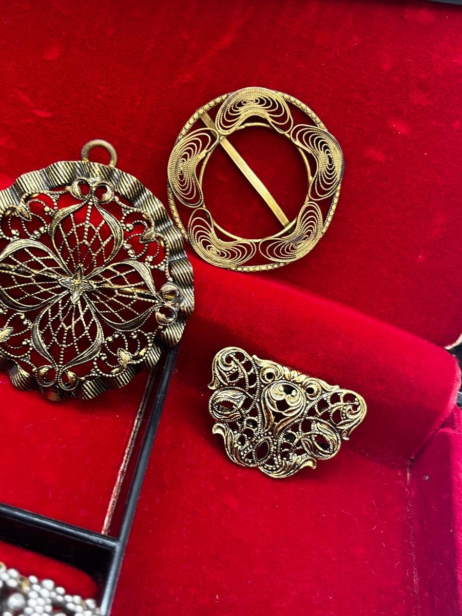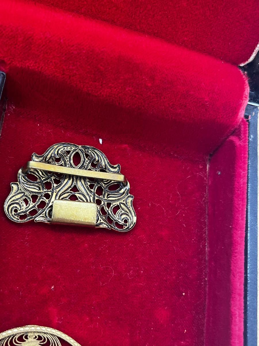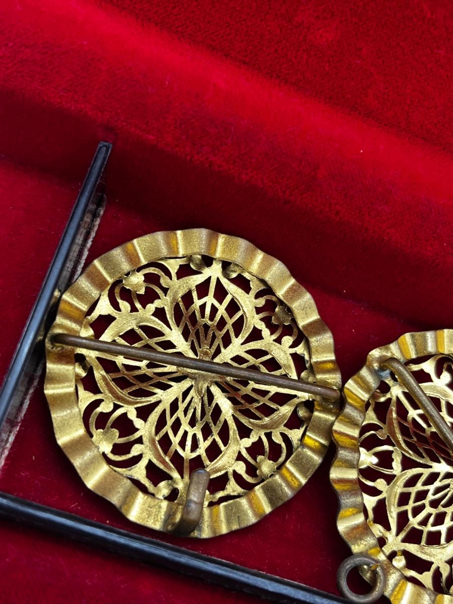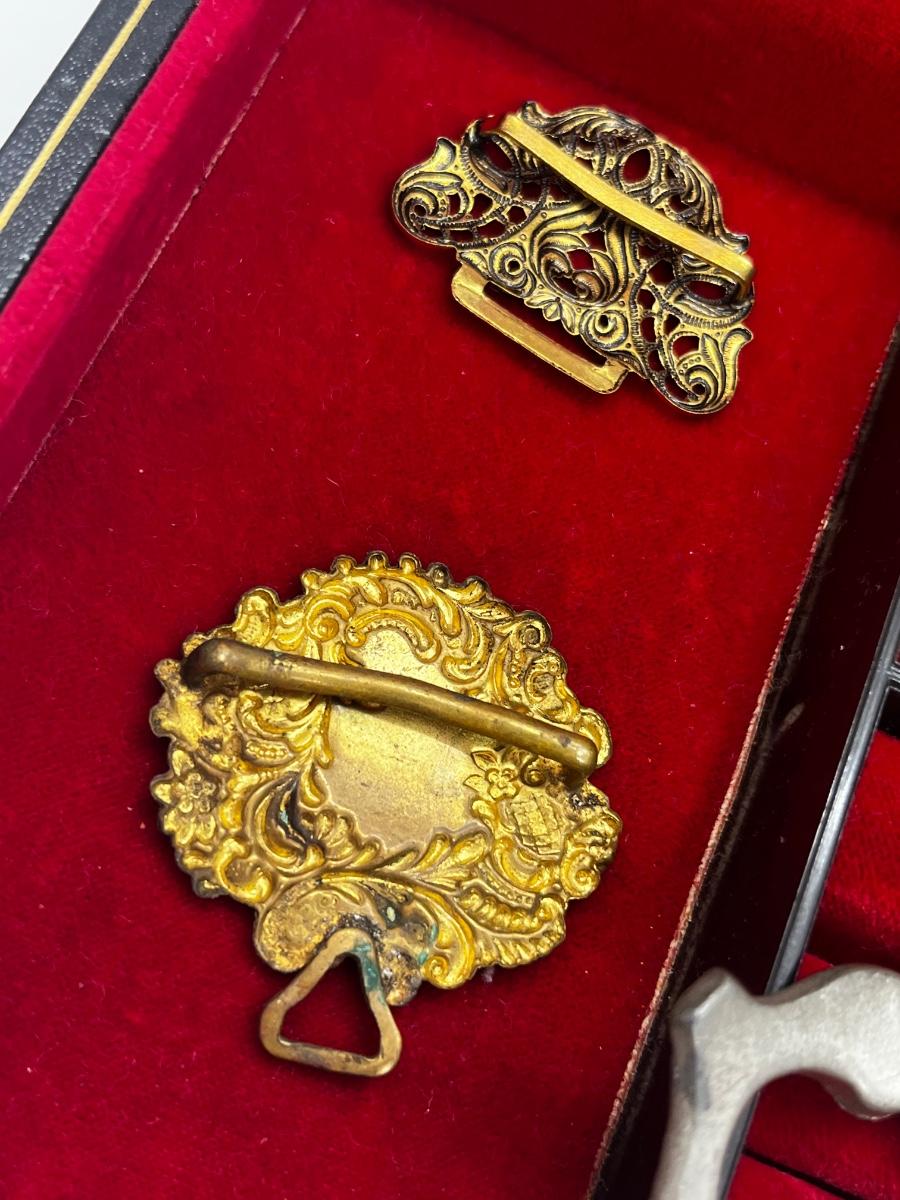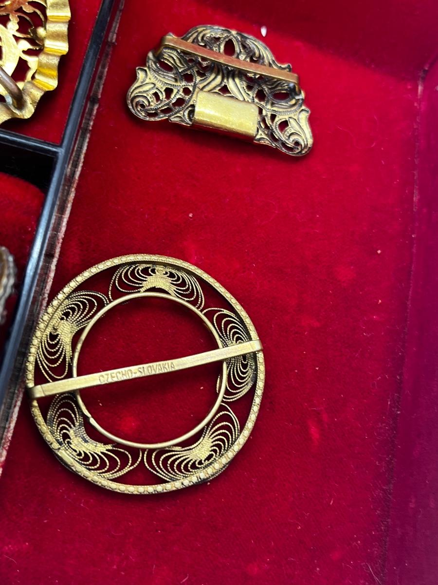LOT 198J: Antique Victorian Belt Buckles with a Vintage Red Velvet Lined Jewelry Case