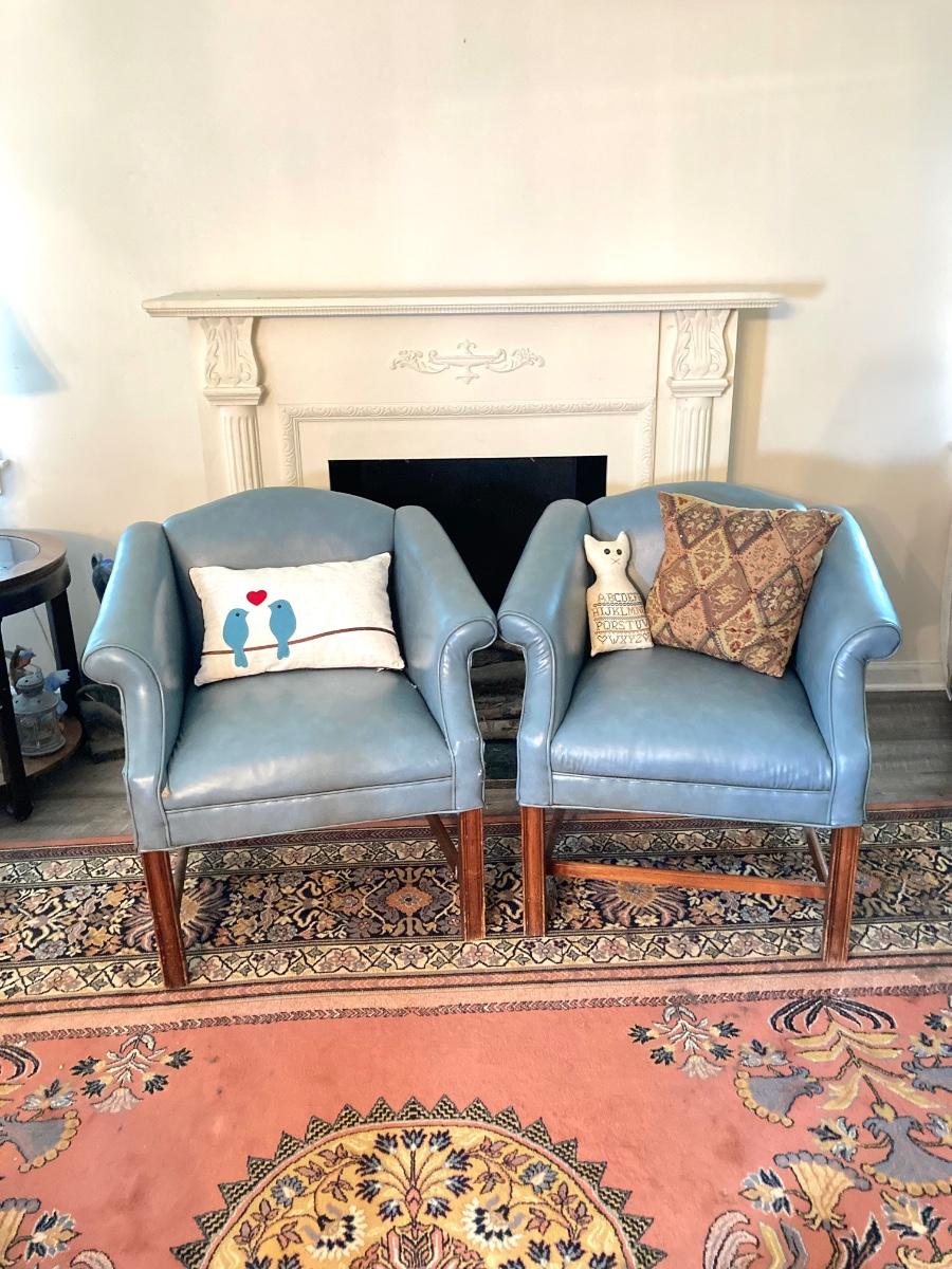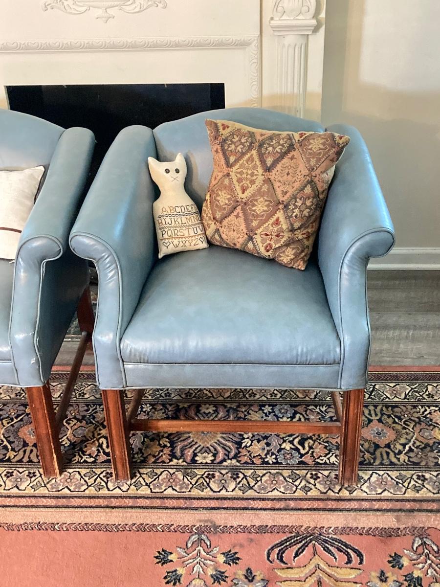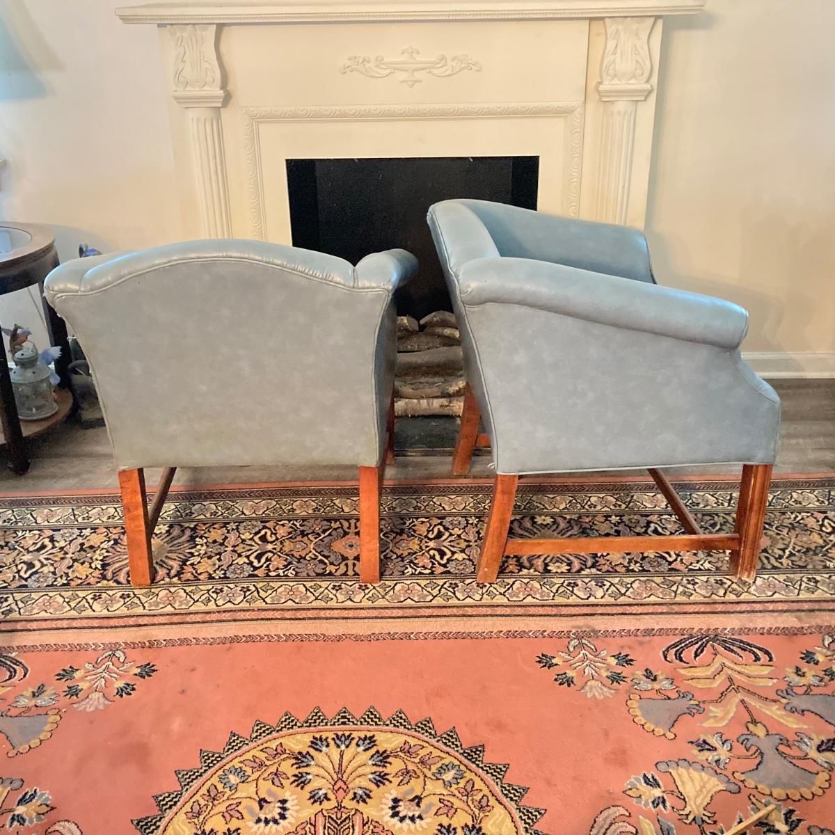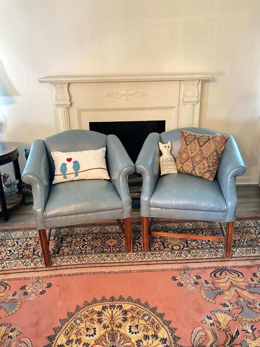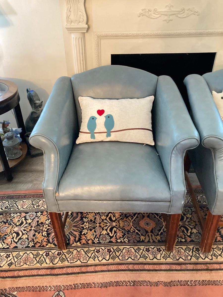 LOT 31L: Pair of Vinyl Arm Chairs with Throw Pillows