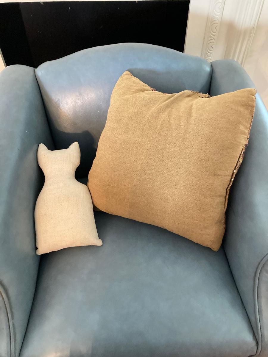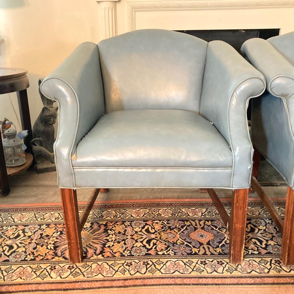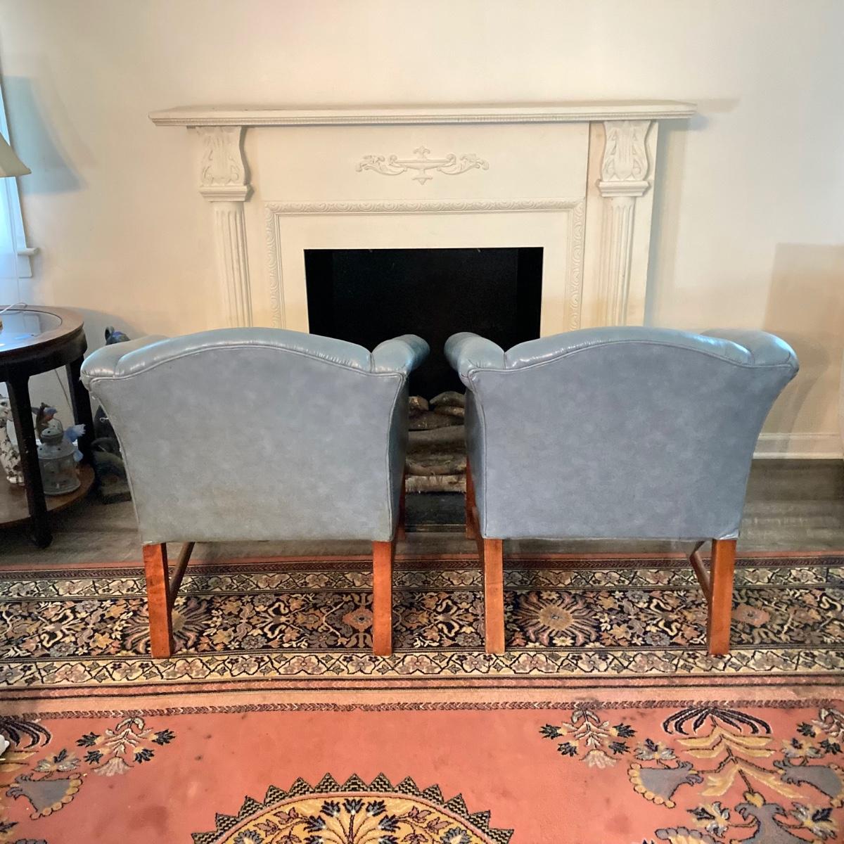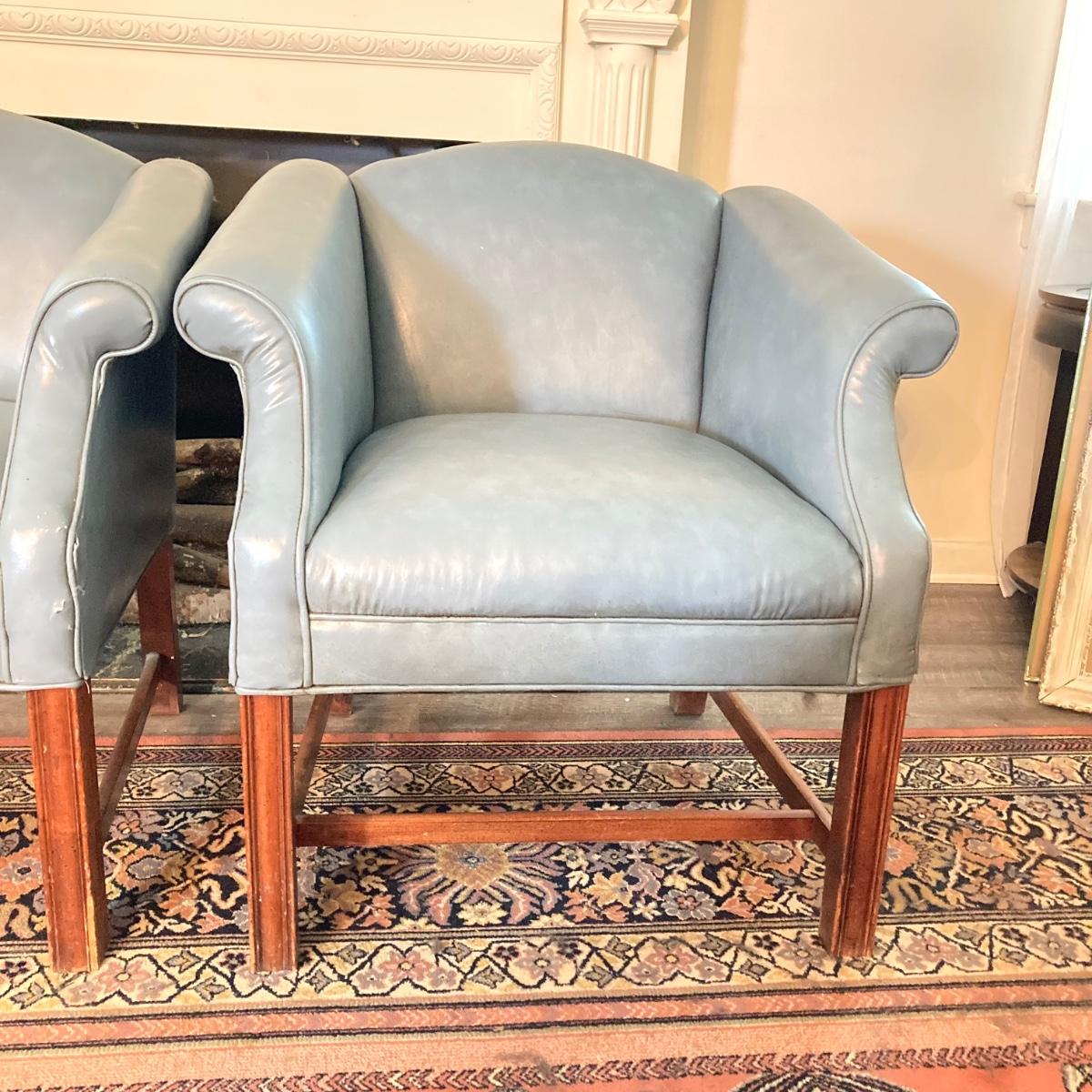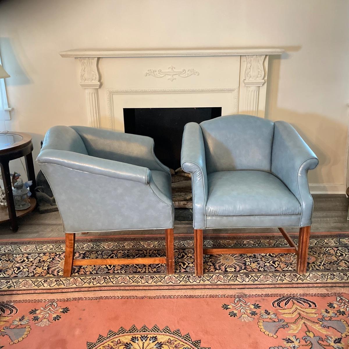 LOT 31L: Pair of Vinyl Arm Chairs with Throw Pillows