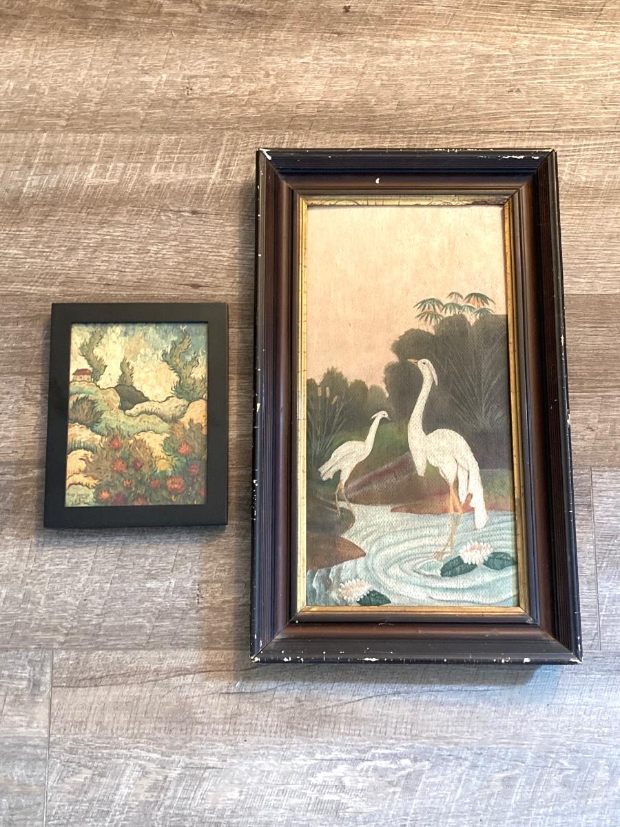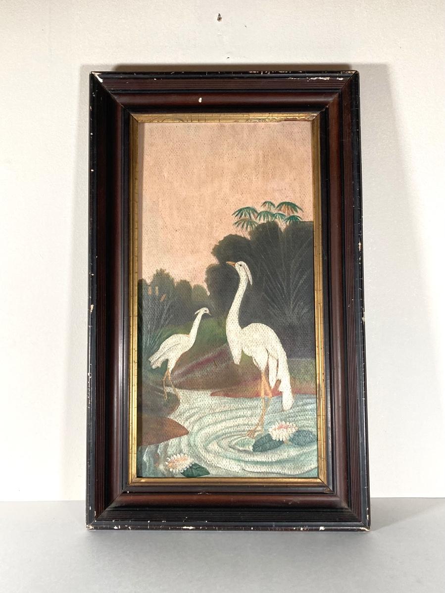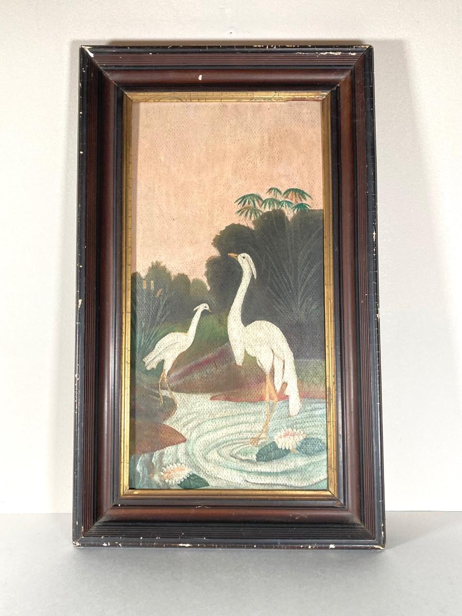LOT 29L: Antique / Vintage Crane Framed Art and Oil Painting by Artist Mark Briscoe