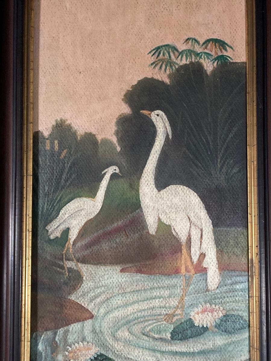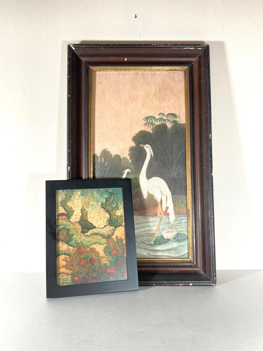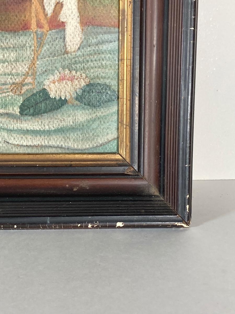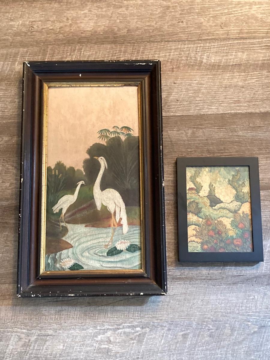 LOT 29L: Antique / Vintage Crane Framed Art and Oil Painting by Artist Mark Briscoe