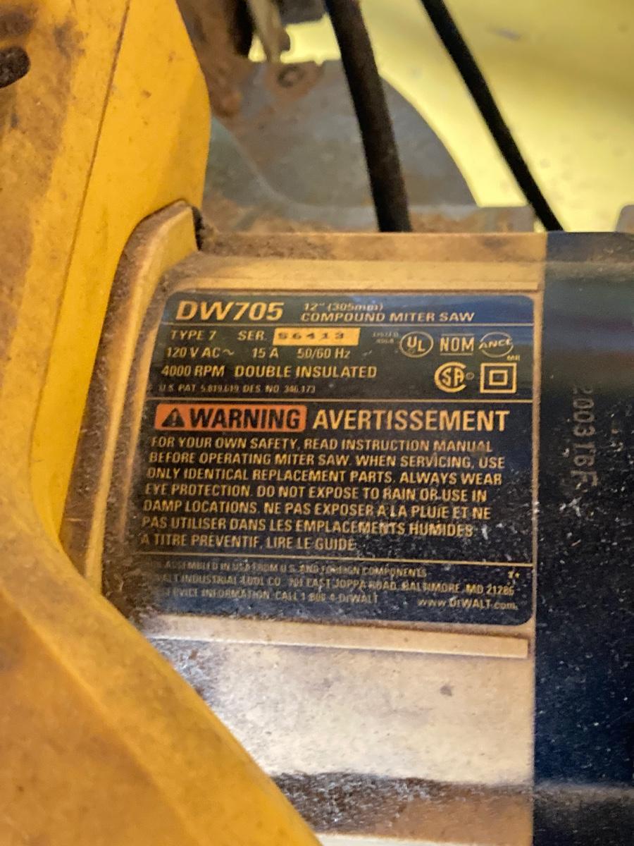 LOT 35S: Dewalt Compound Miter Saw DW705 with Stand