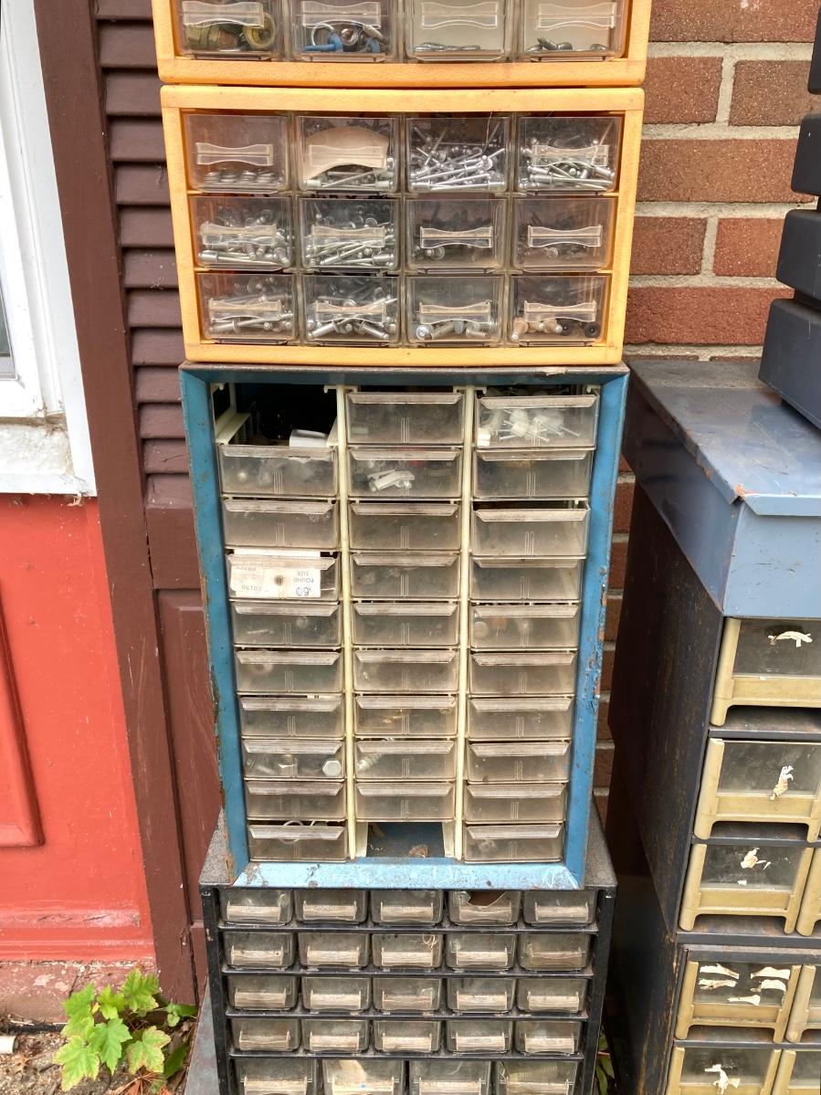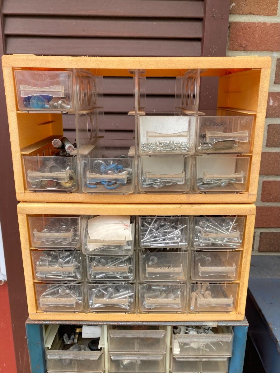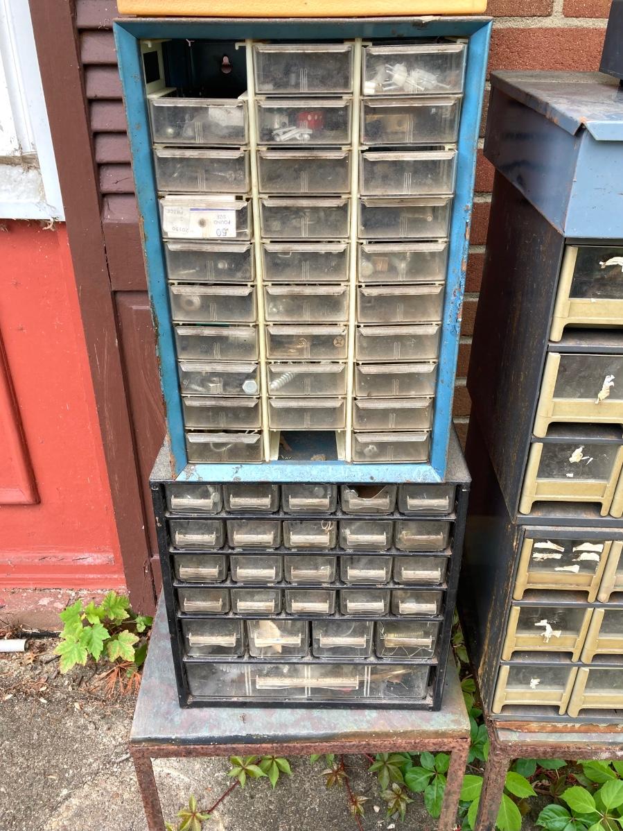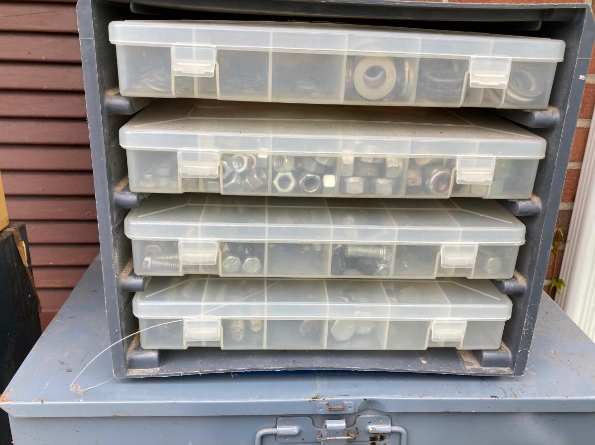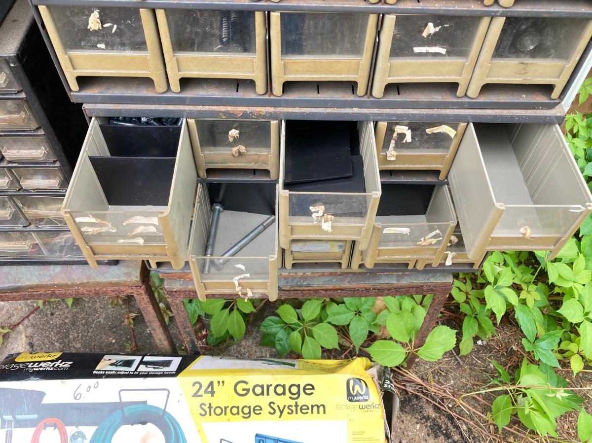 LOT 39G: Large Collection of Hardware / Storage Units and Contents with Garage Storage Rack