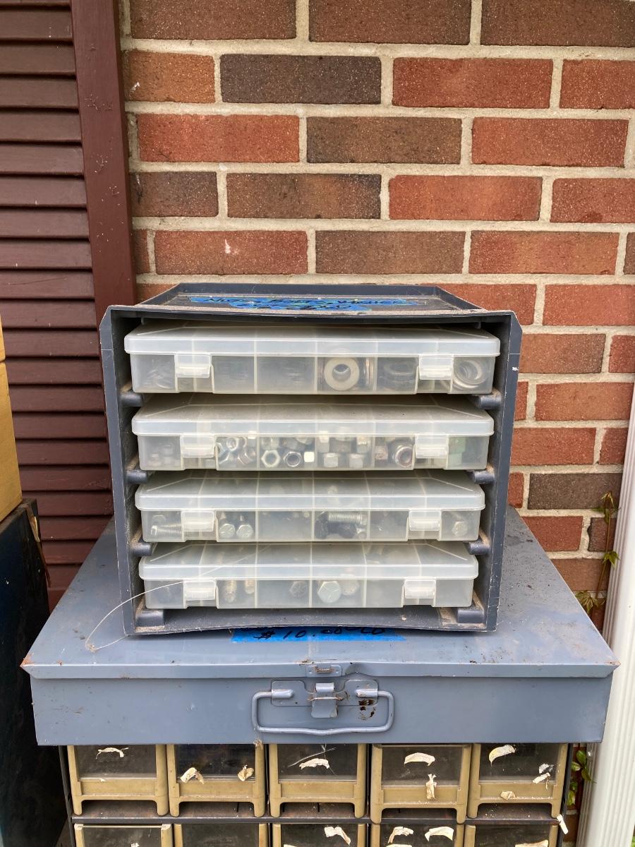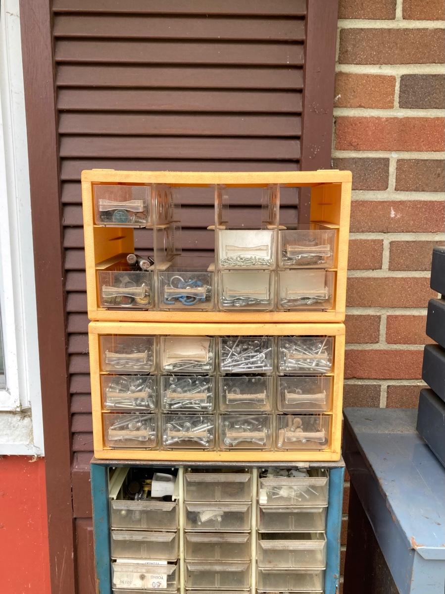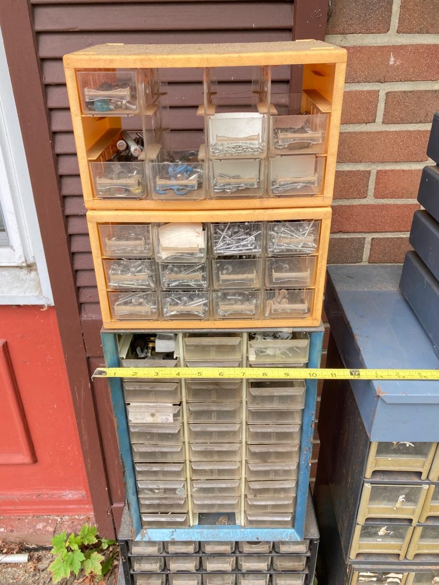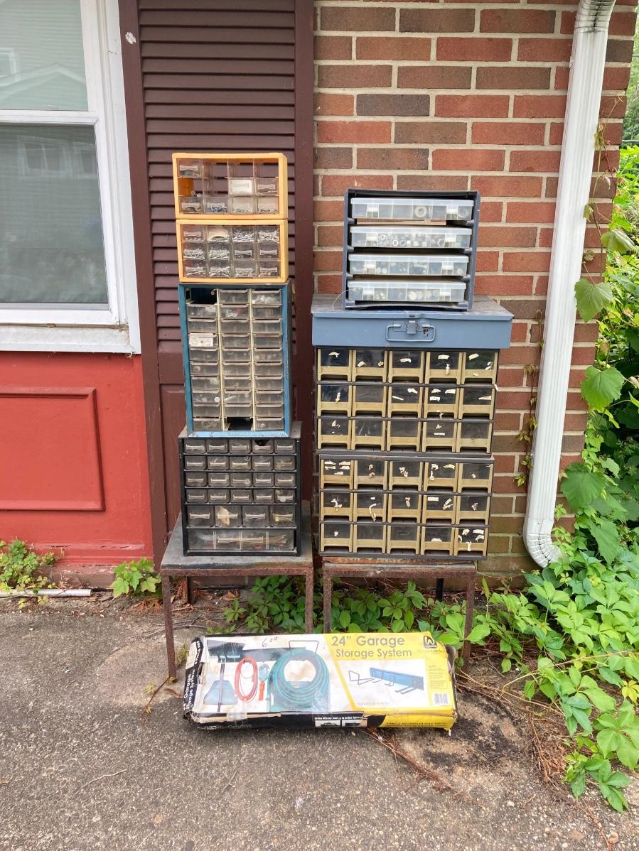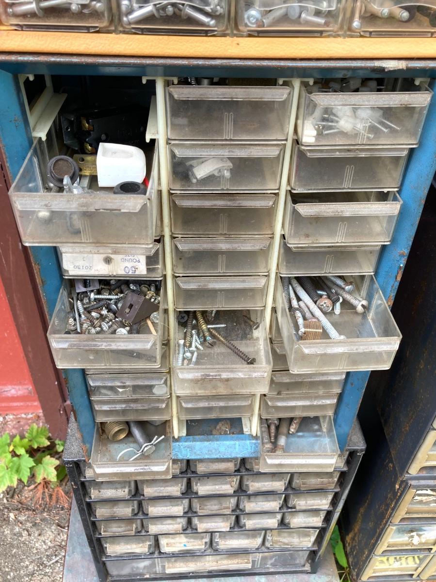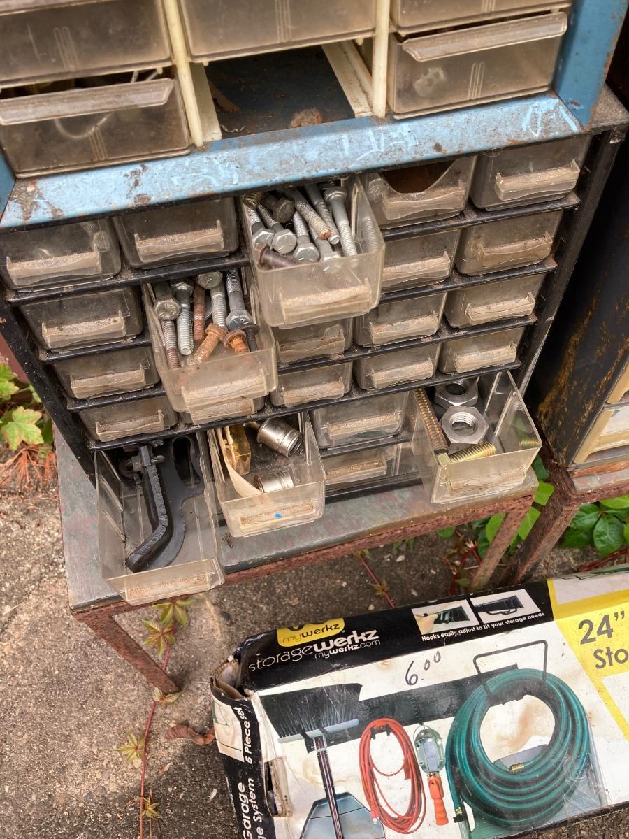LOT 39G: Large Collection of Hardware / Storage Units and Contents with Garage Storage Rack