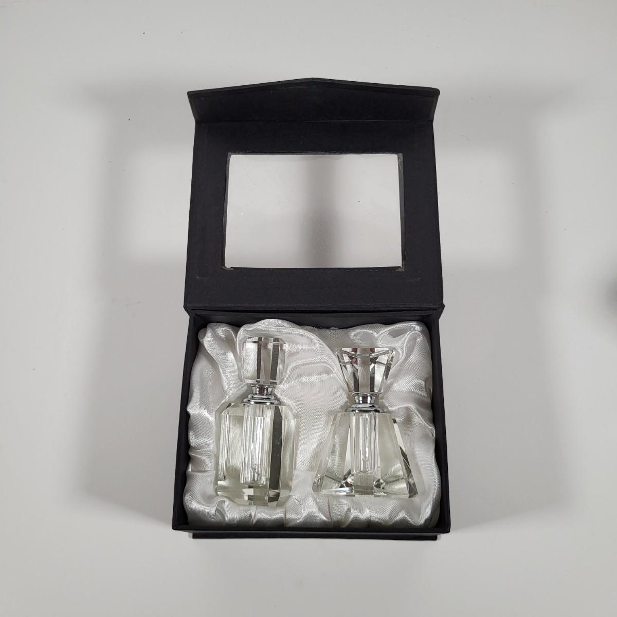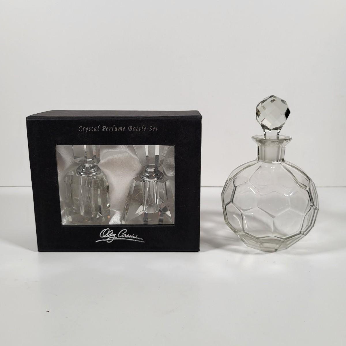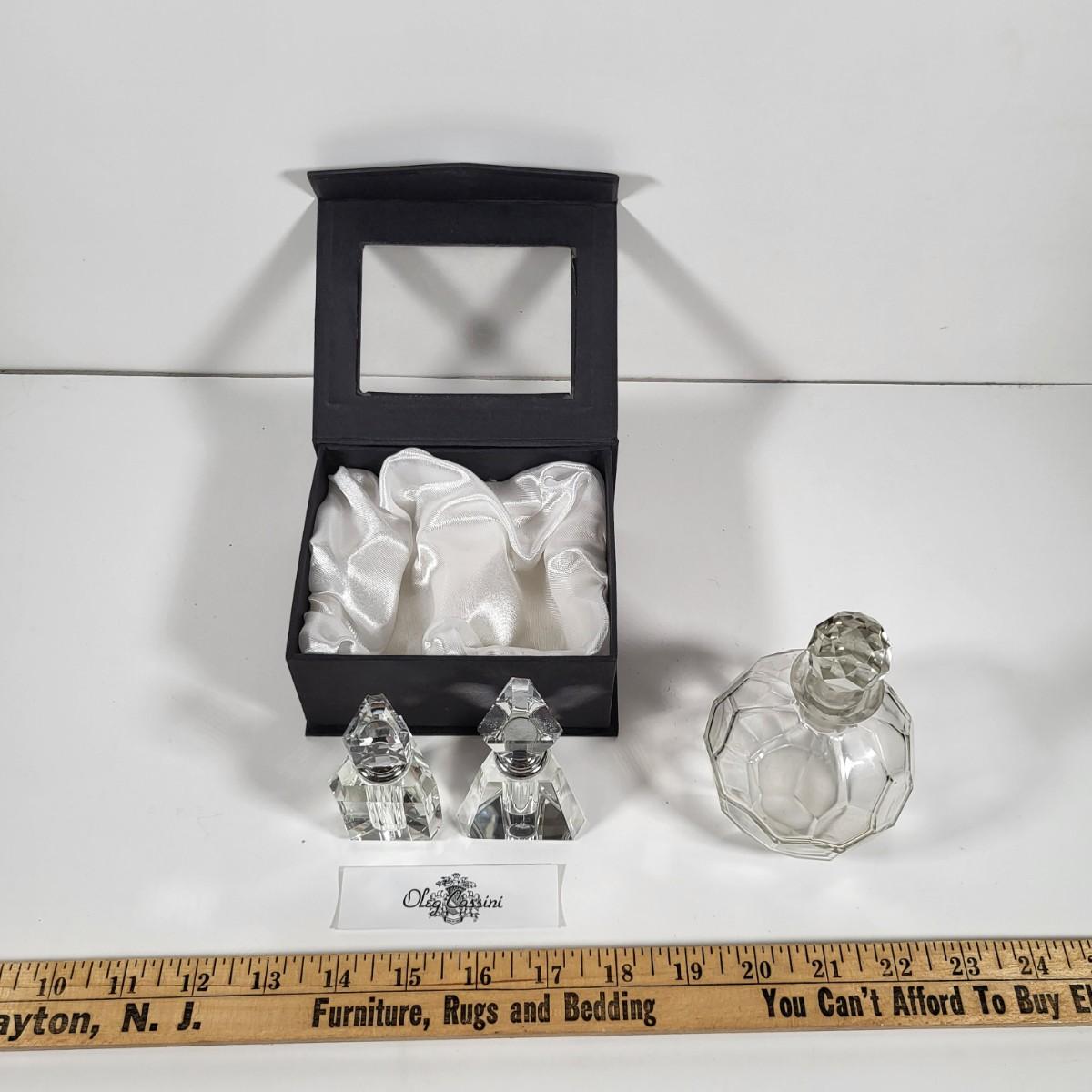 LOT 45: Three Crystal Perfume Bottle Set featuring New Oleg Cassini set