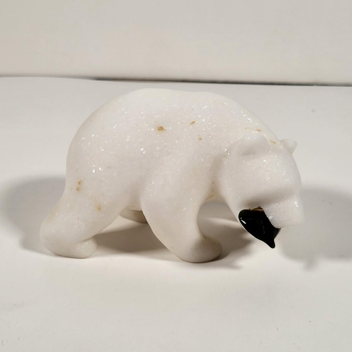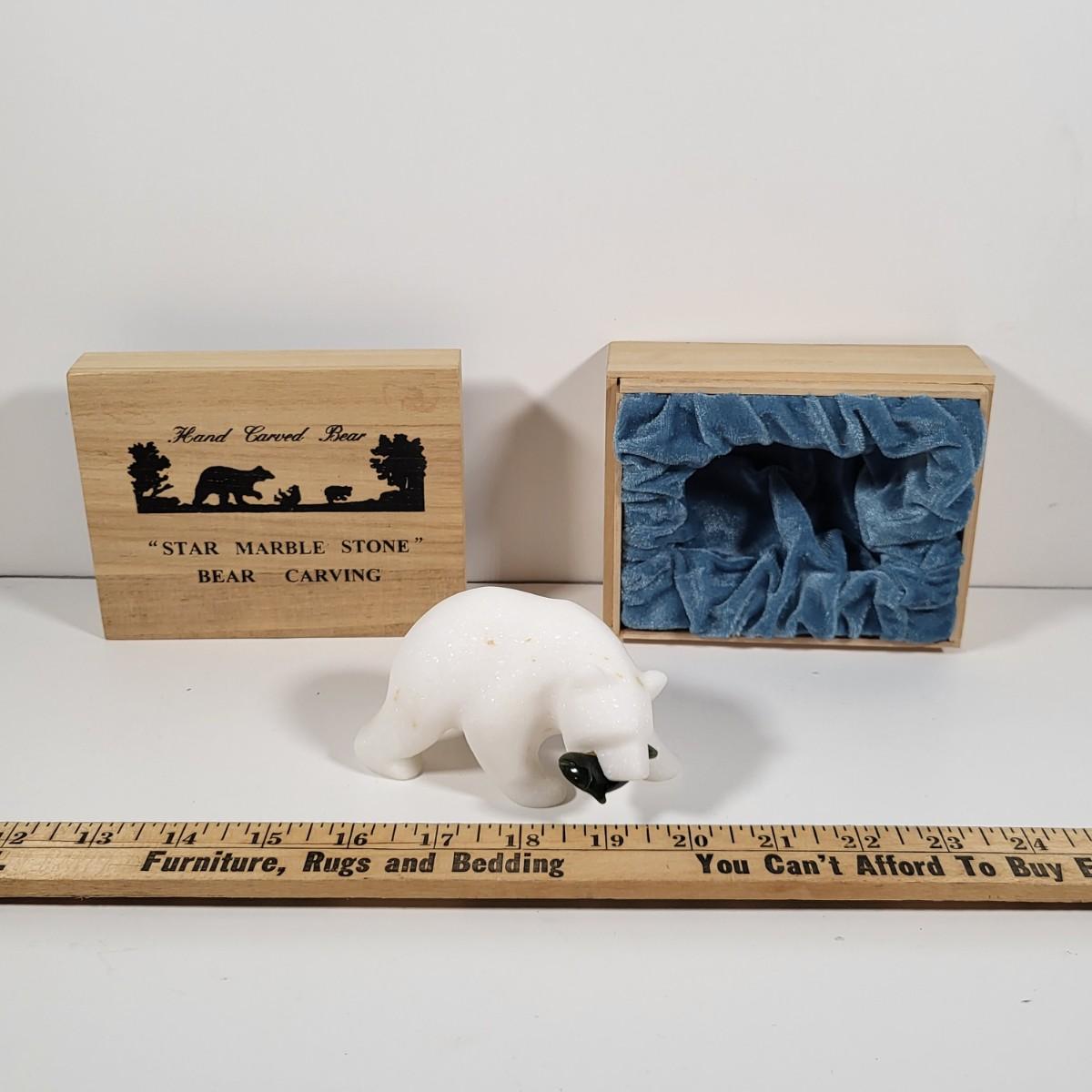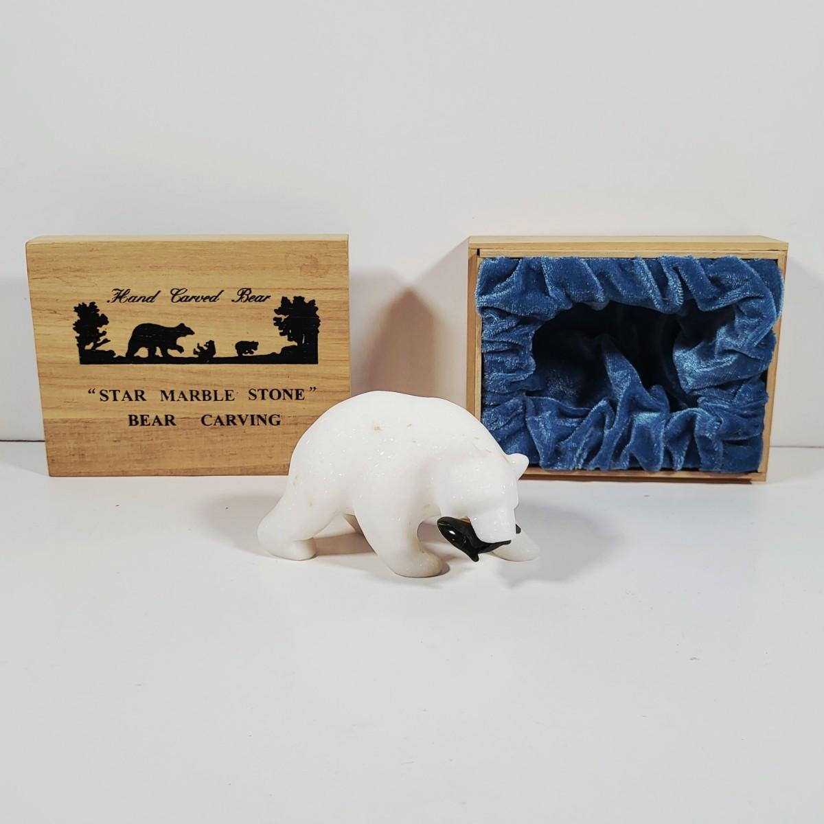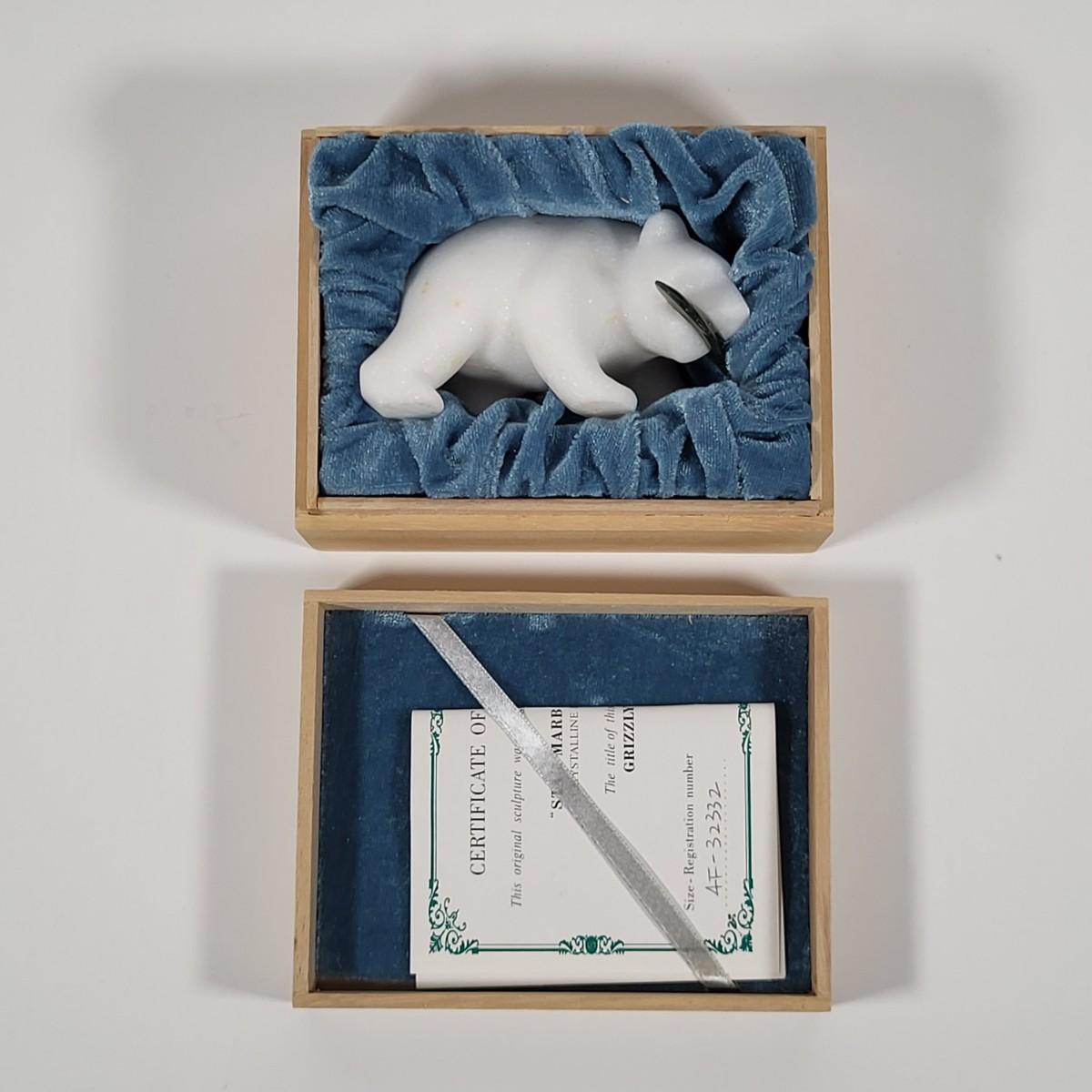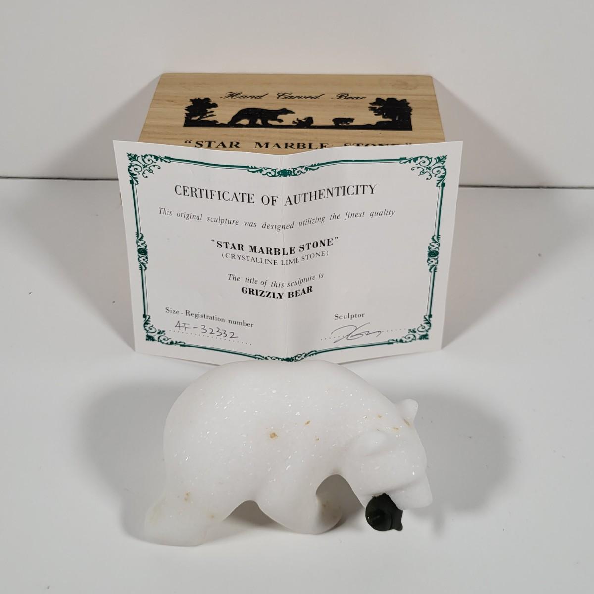 LOT 48: Hand Carved Star Marble Stone Grizzly Bear Figure With CoA and Storage Box