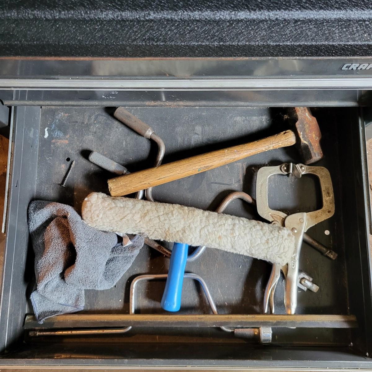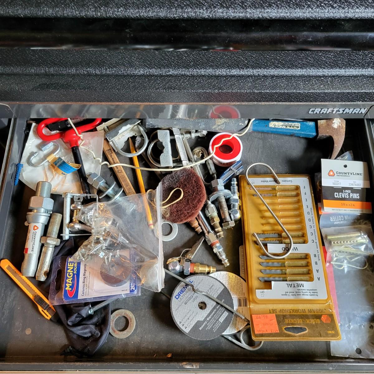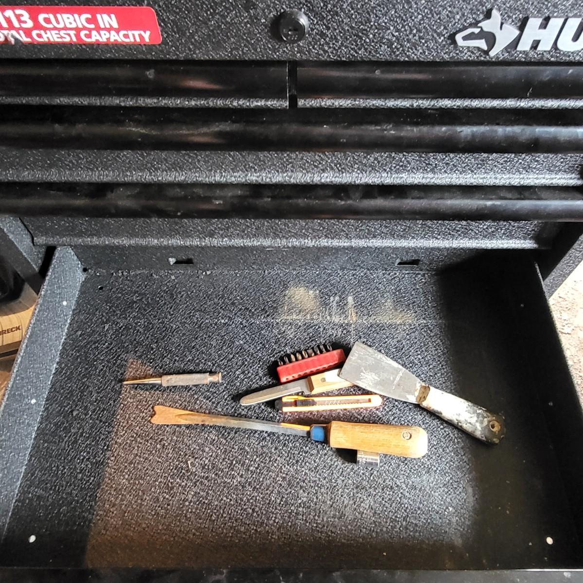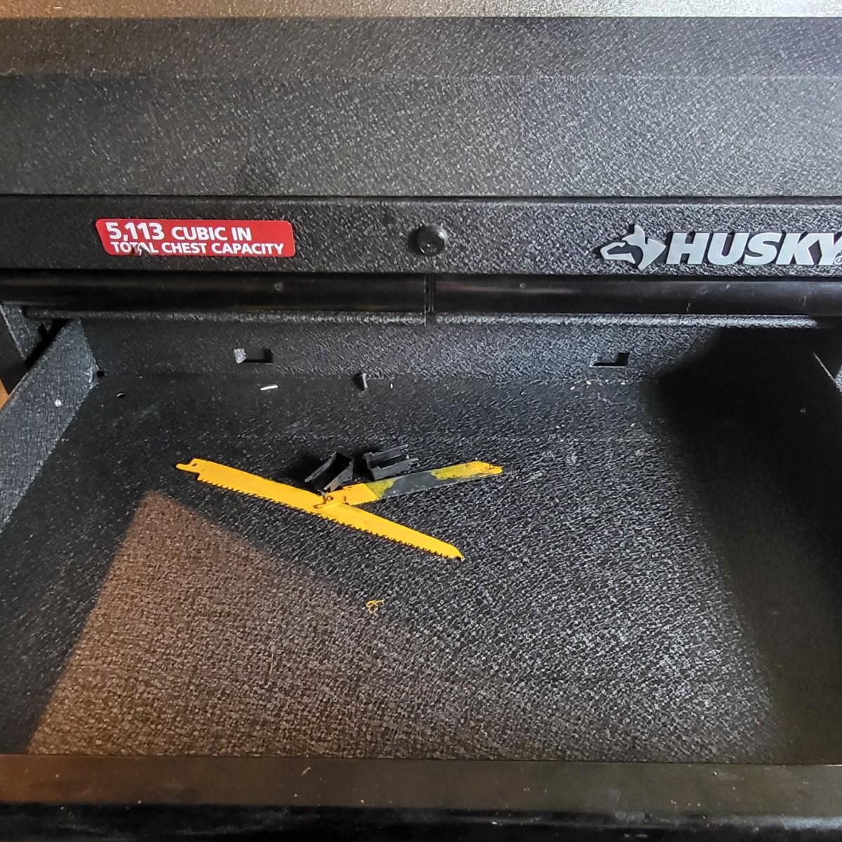 LOT 52: Husky Five Drawer Black Top Tool Chest and Three Drawer Black Craftsman Tool Chest with Dolly and Contents