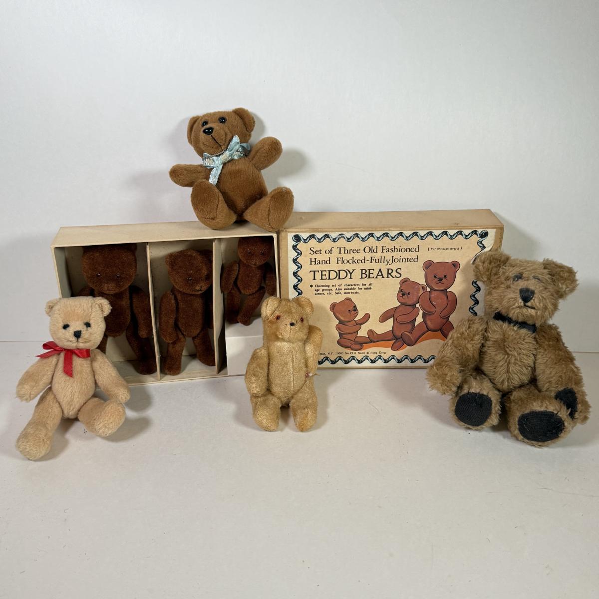 LOT 77K: Mini Vintage Articulated Teddy Bears: Boyd’s, Flocked & More