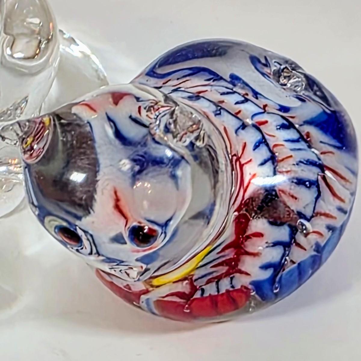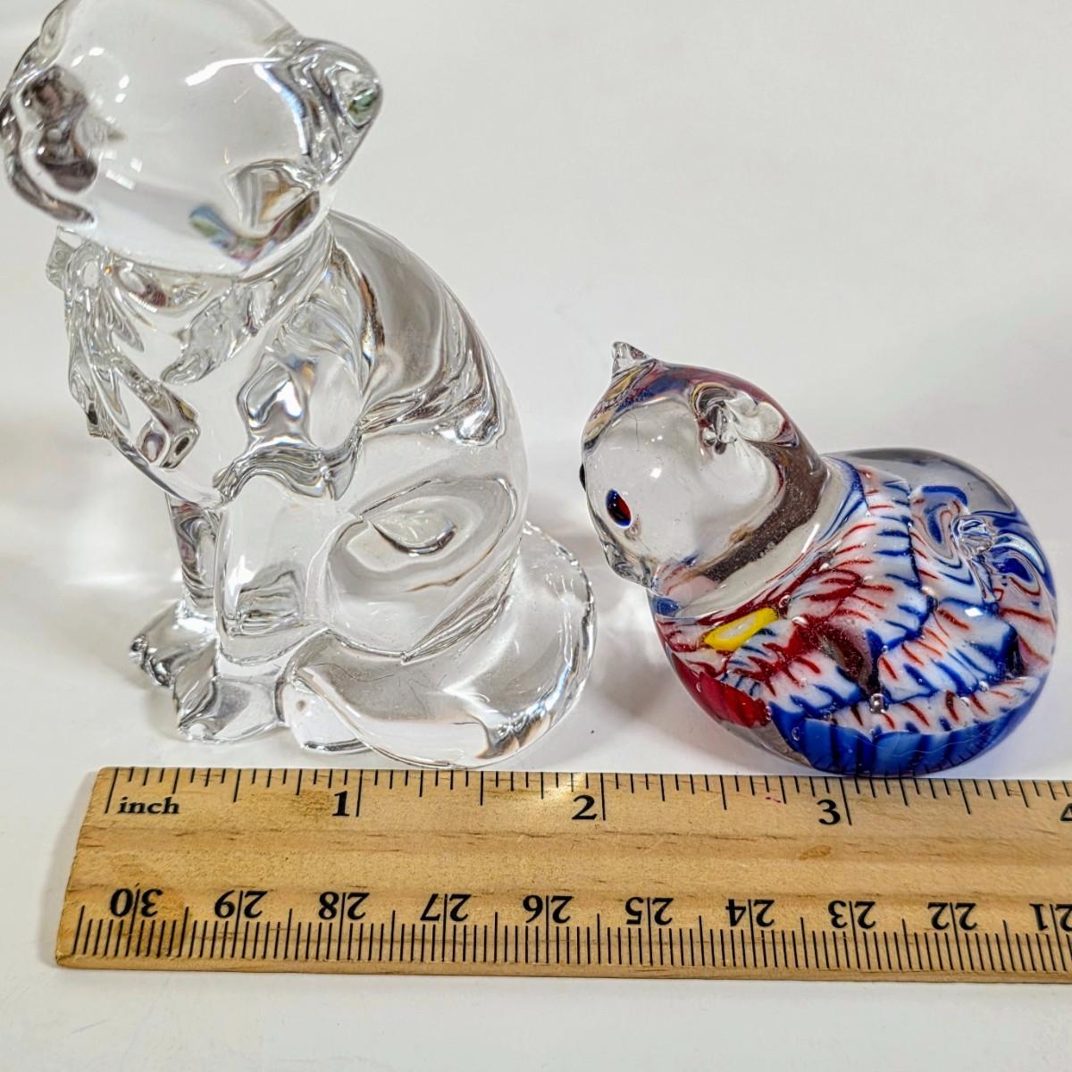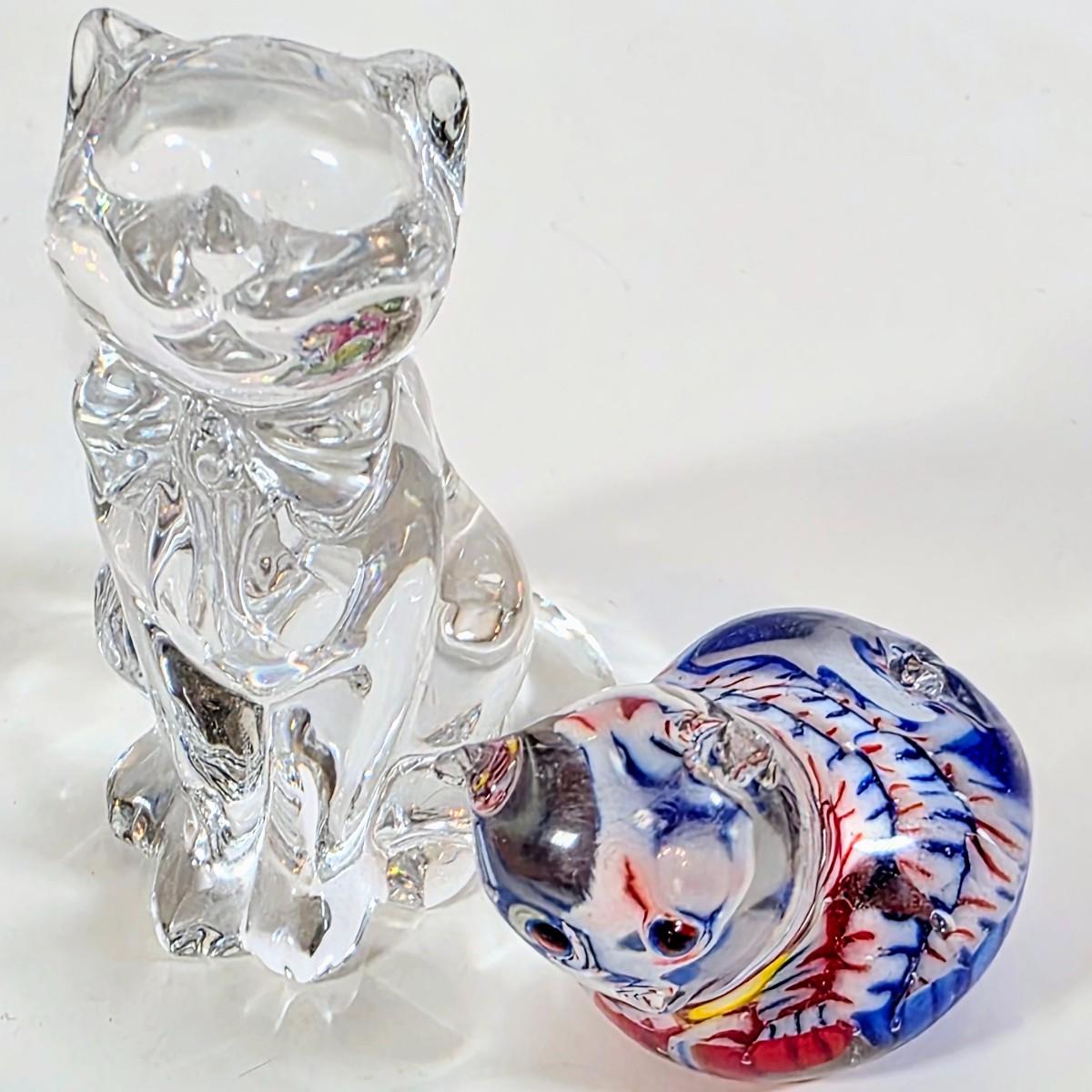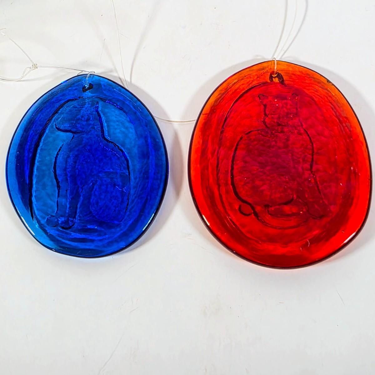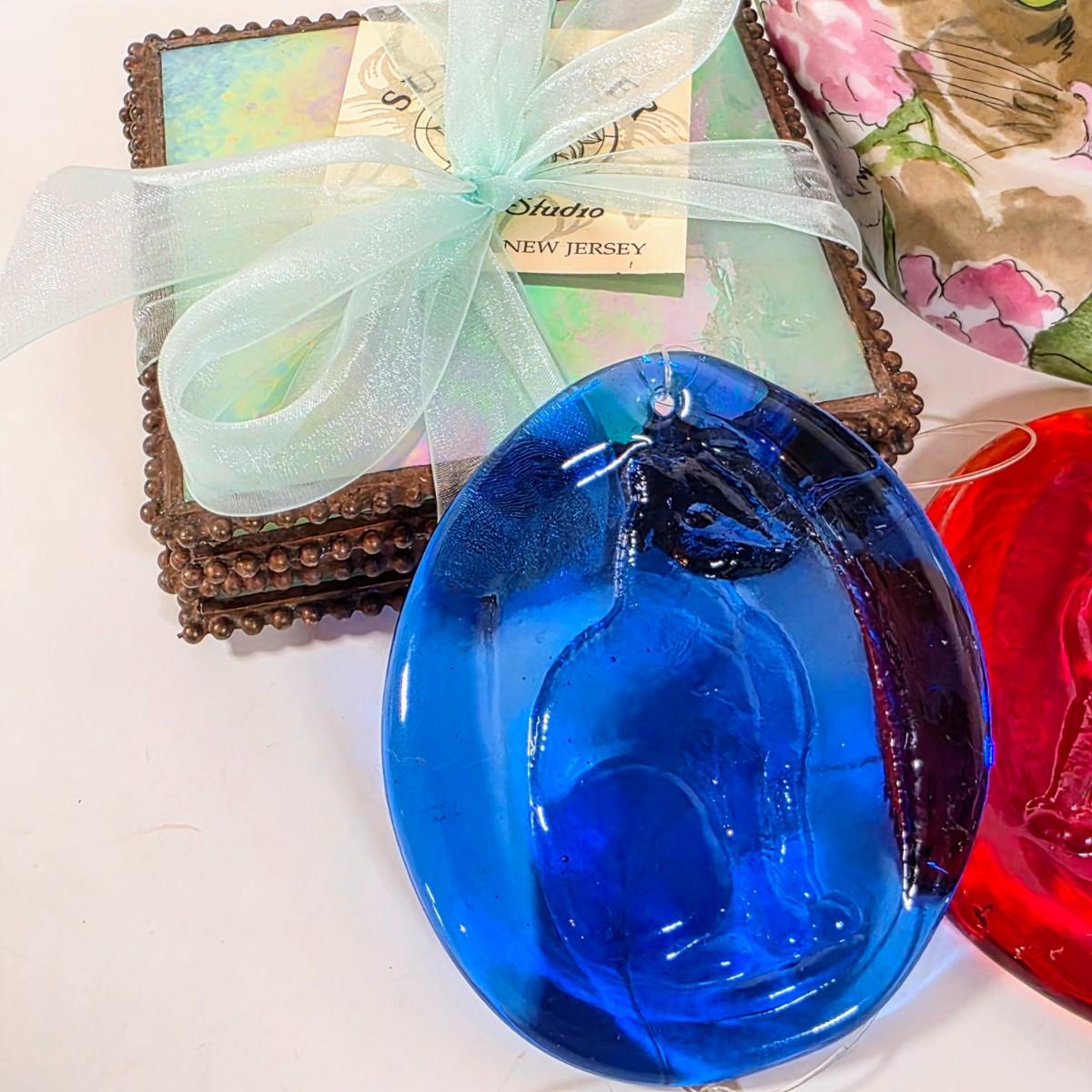 LOT 90D: Glass Coasters Made in Stockton, NJ Sunflower Glass Studio, Vintage Cat Vase, Cobalt & Ruby Colored Cat Suncatchers & Clear/Colored Glass Cat Figurines