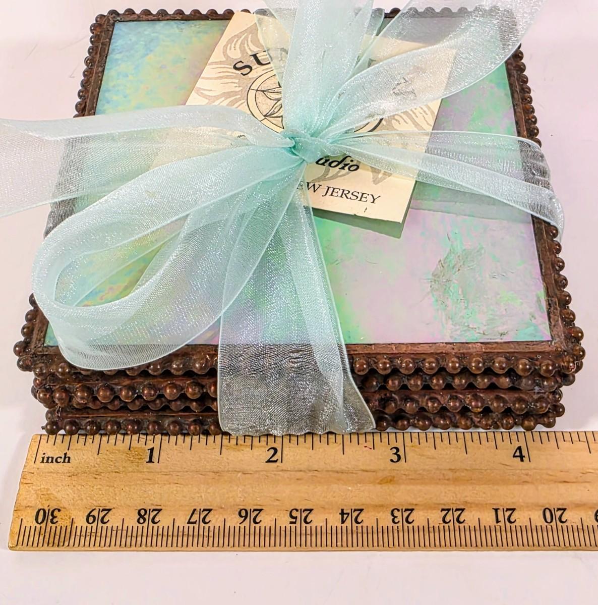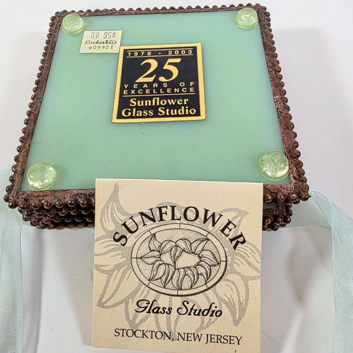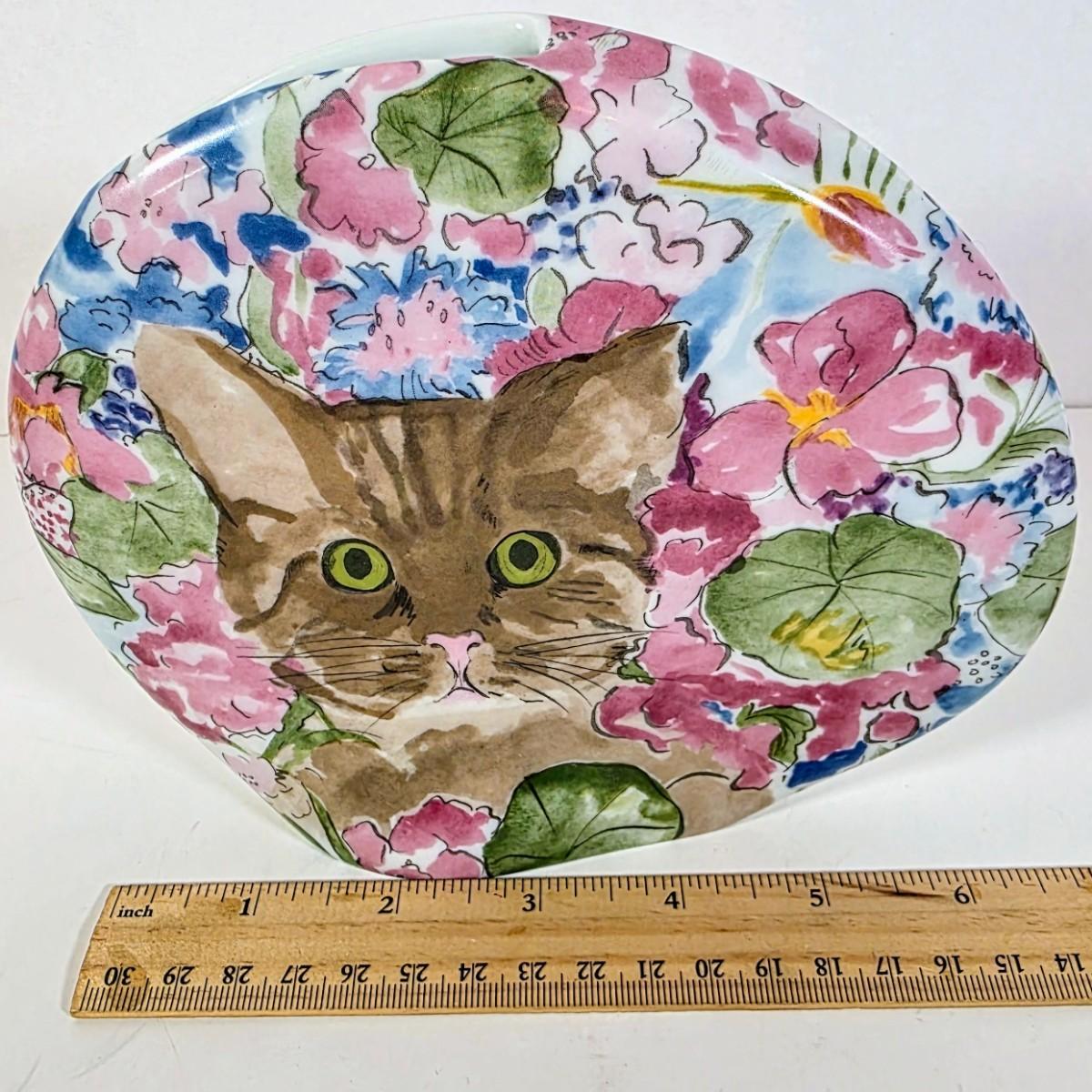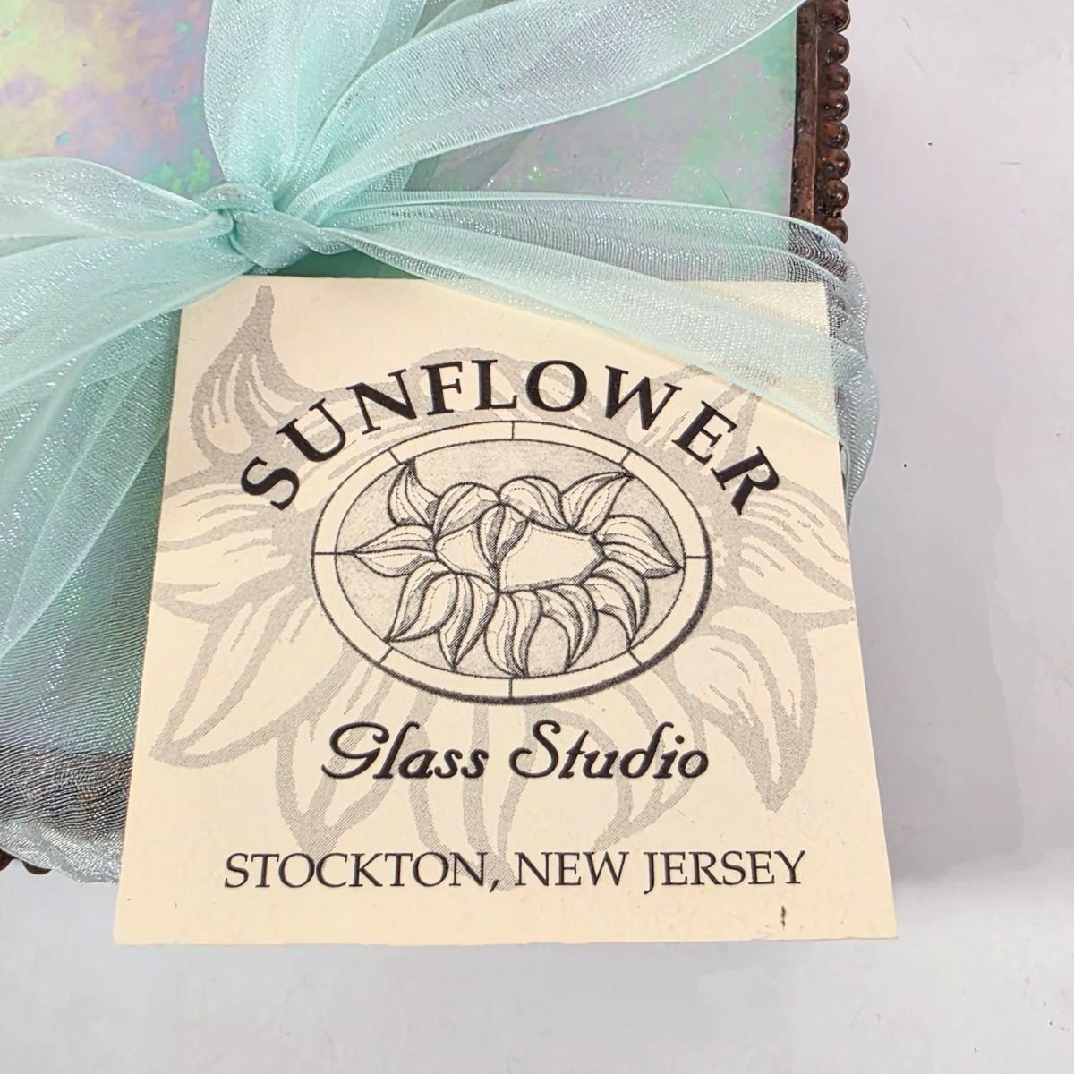 LOT 90D: Glass Coasters Made in Stockton, NJ Sunflower Glass Studio, Vintage Cat Vase, Cobalt & Ruby Colored Cat Suncatchers & Clear/Colored Glass Cat Figurines