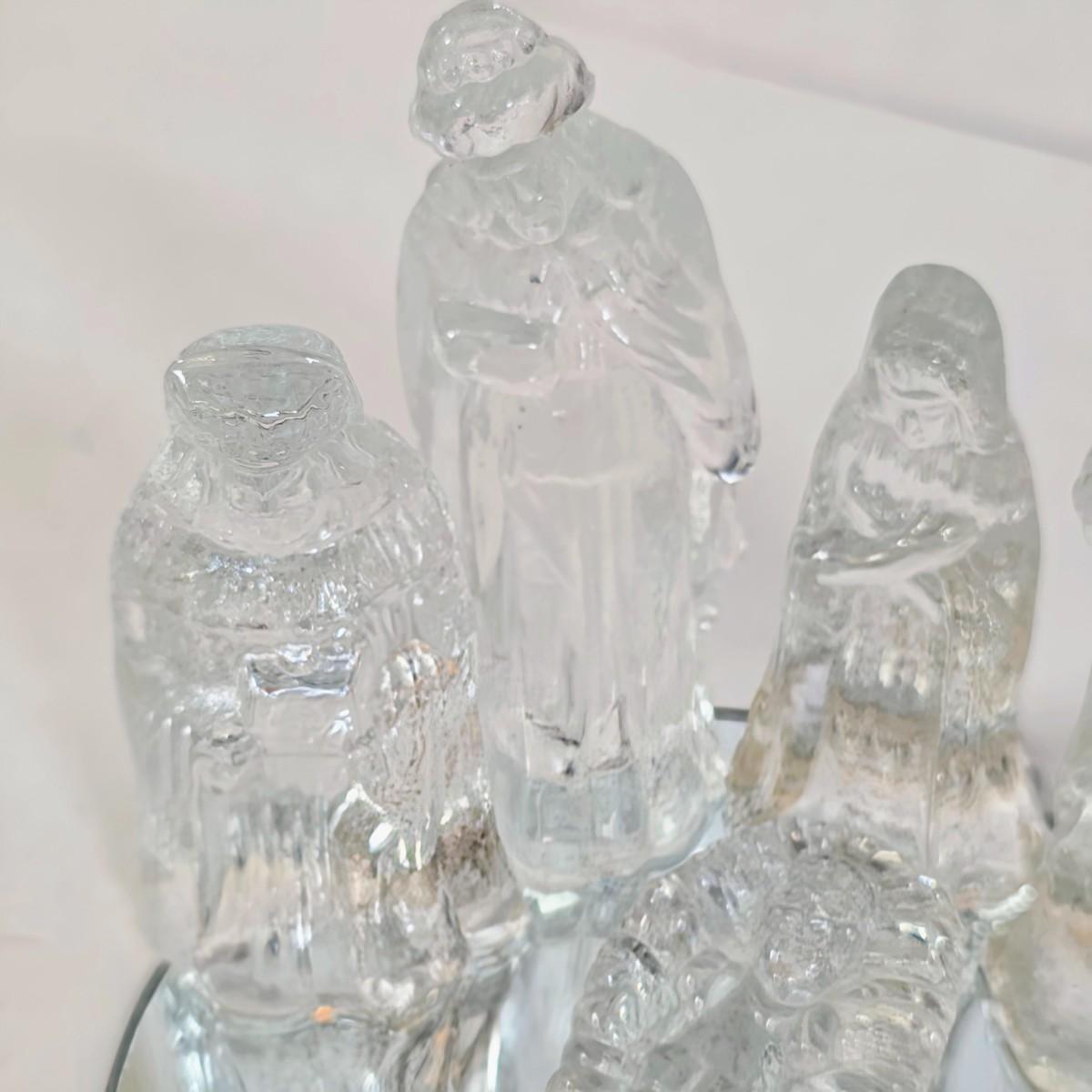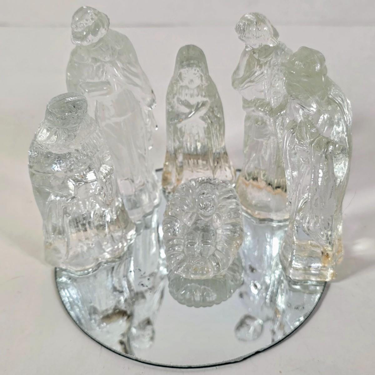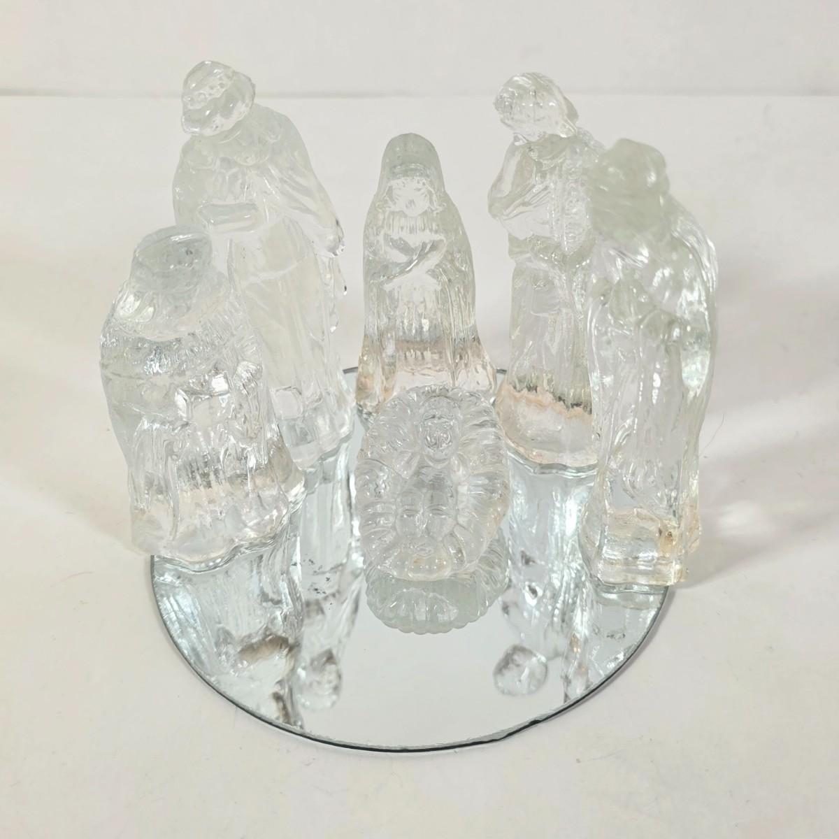 LOT 97D: Vintage Crystal Nativity Set, Sitting On Removable Mirror Base