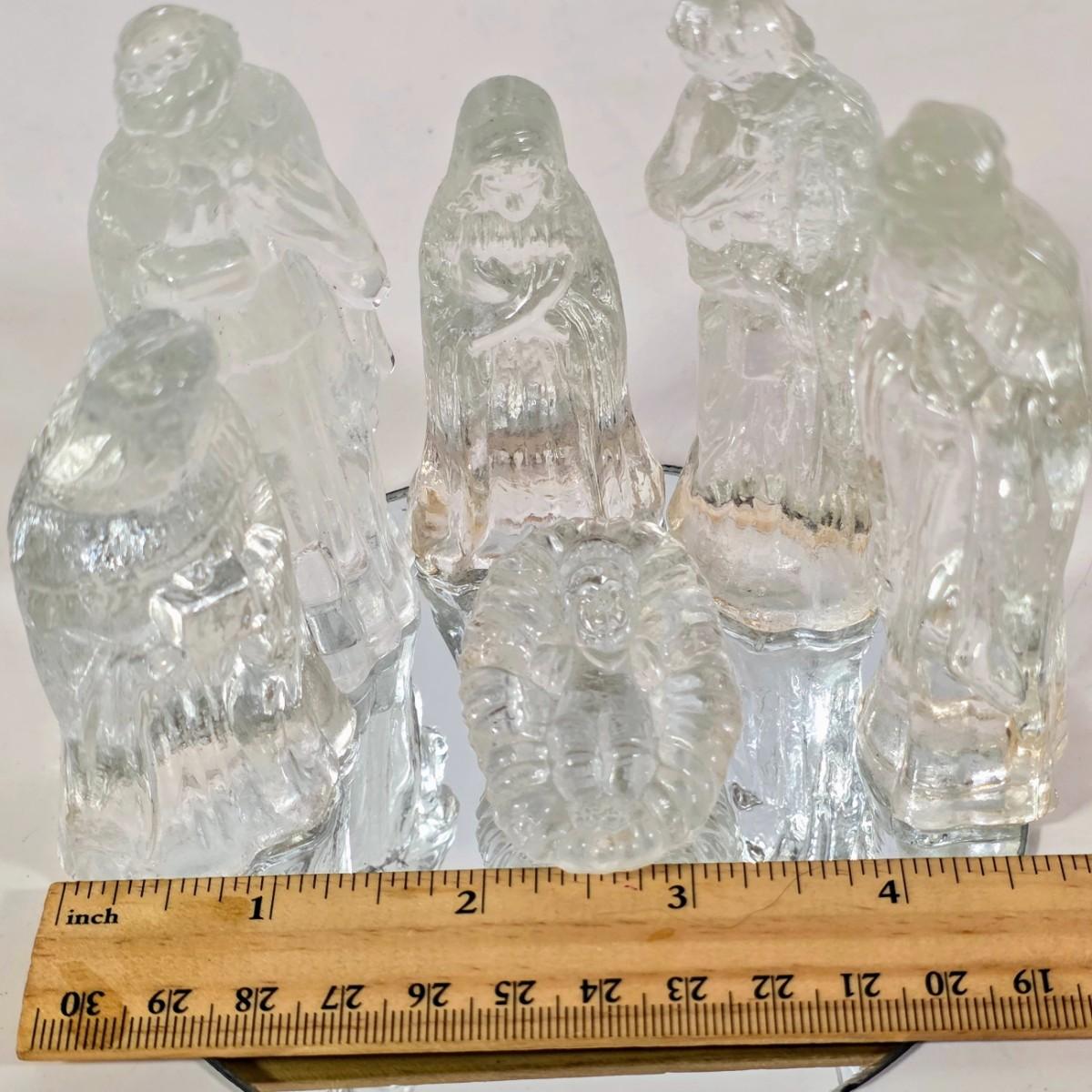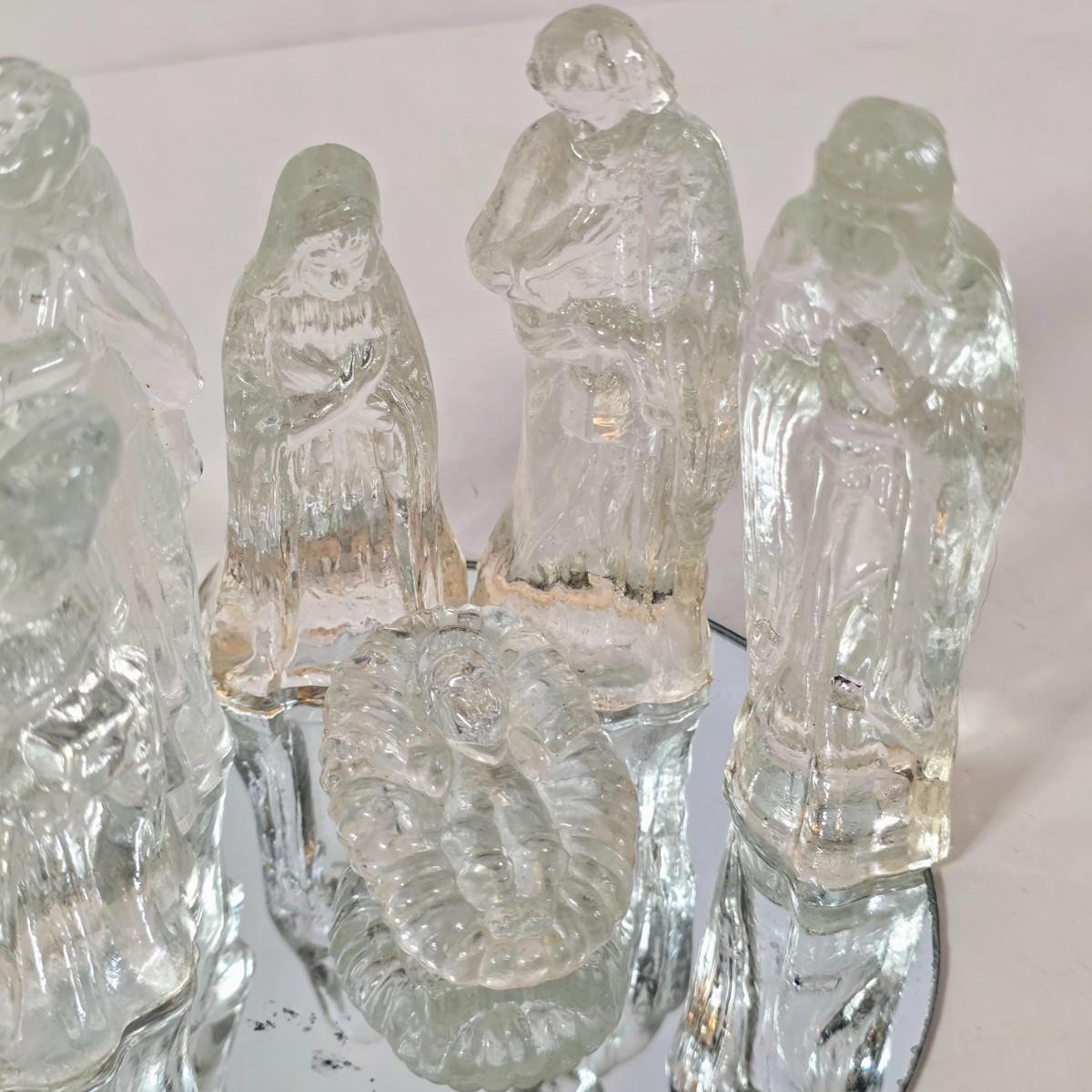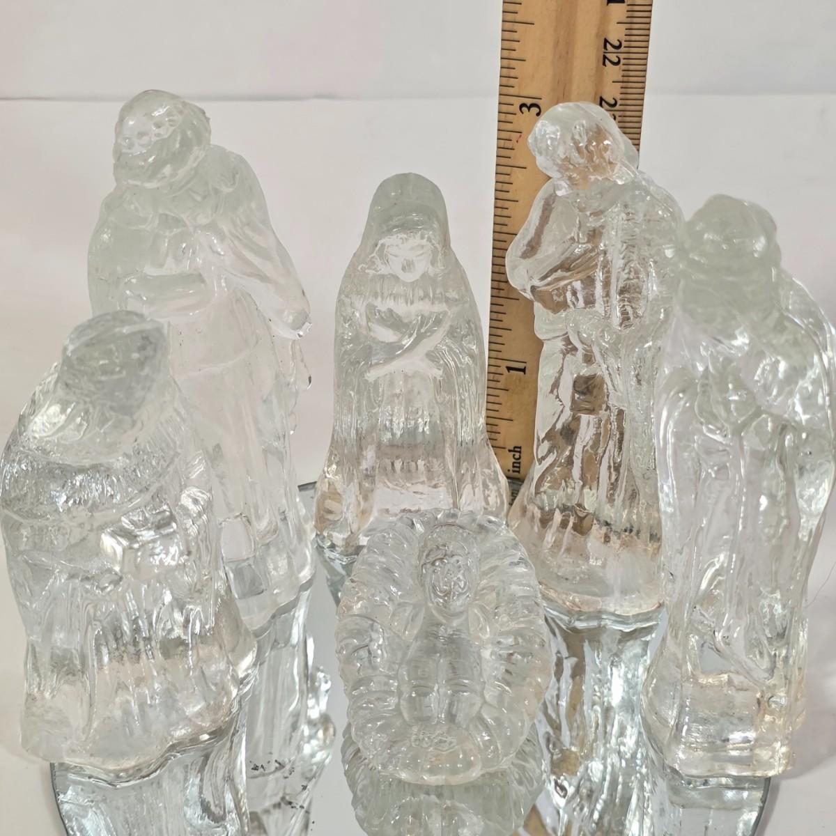 LOT 97D: Vintage Crystal Nativity Set, Sitting On Removable Mirror Base