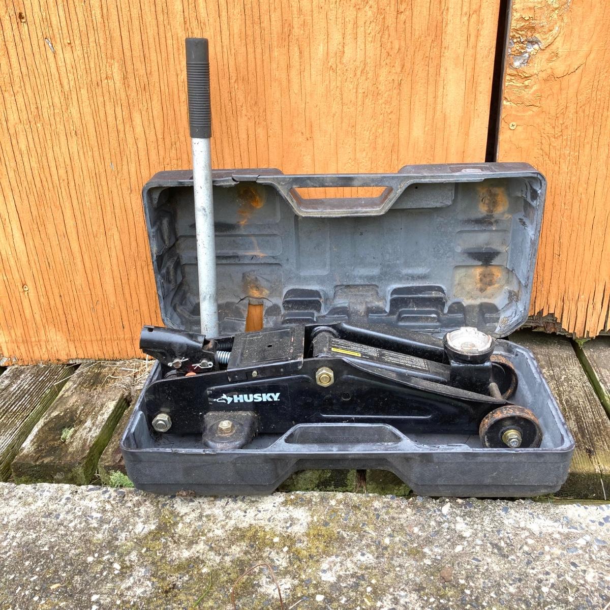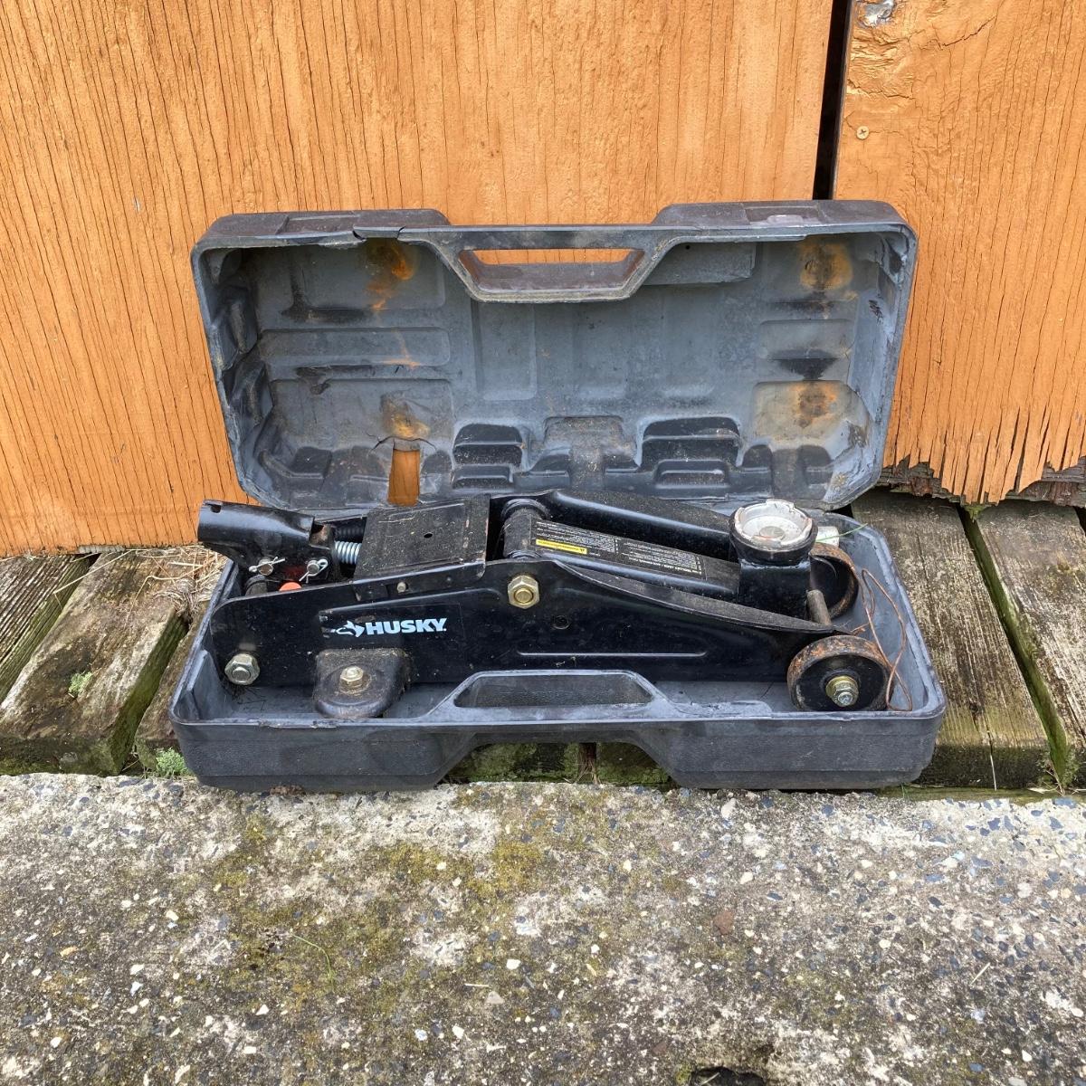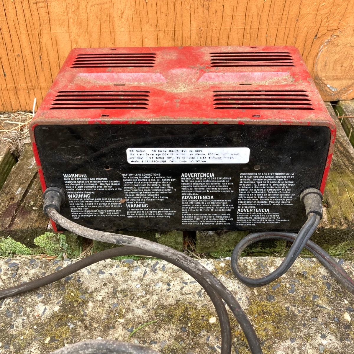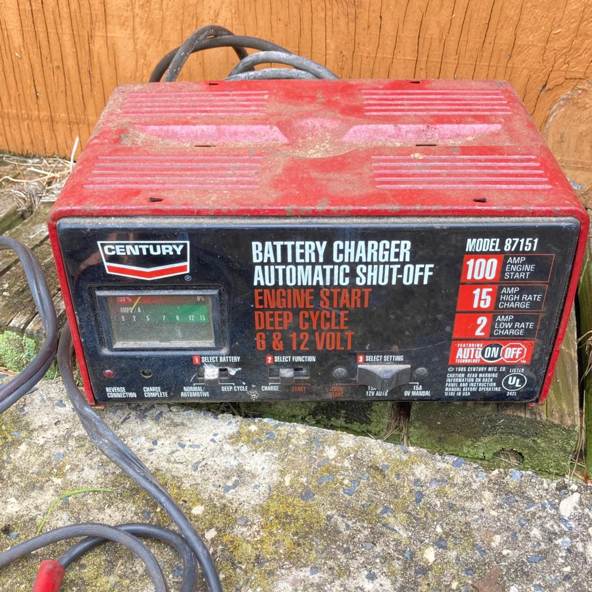 LOT 132S: Century Model 87151 Battery Charger, Husky Jack in Case, Jumper Cables and Power Cord