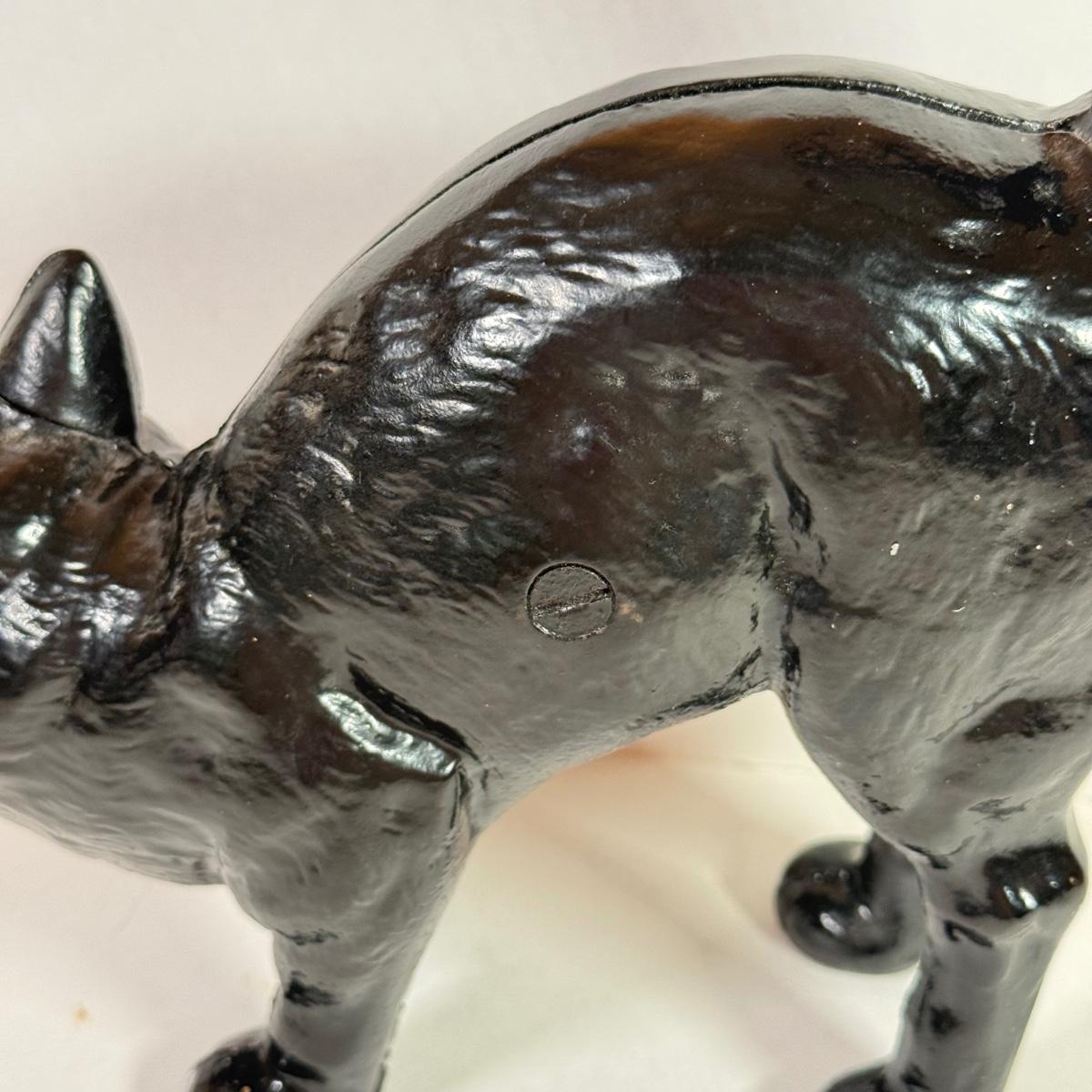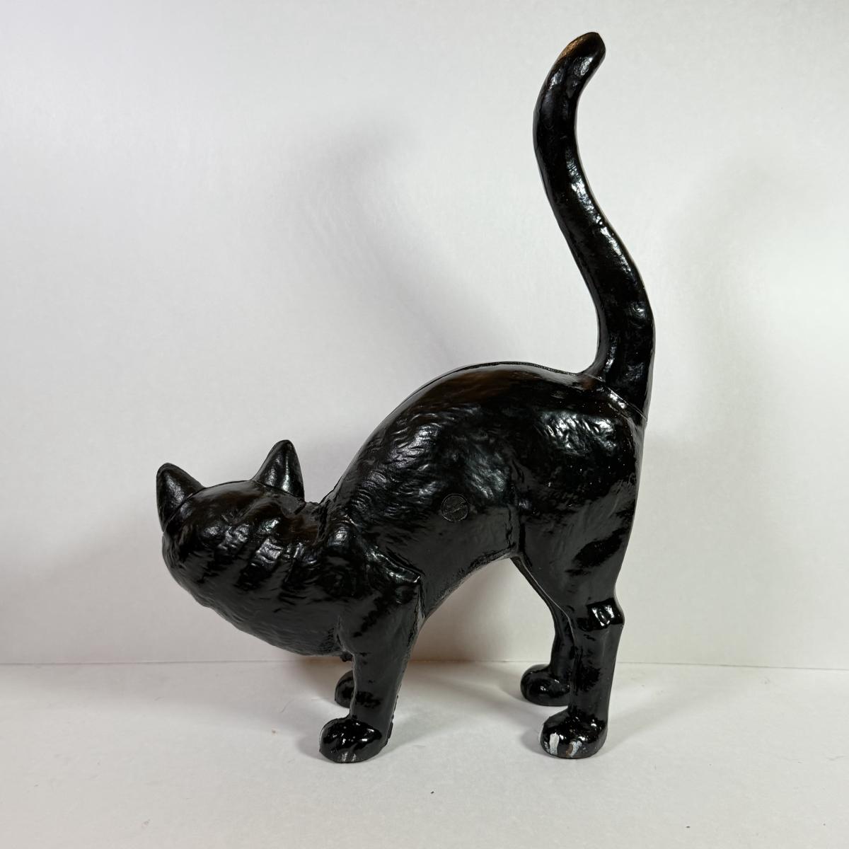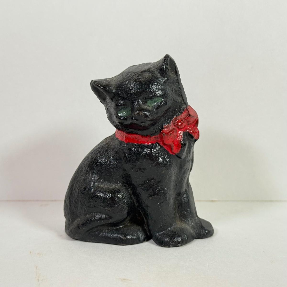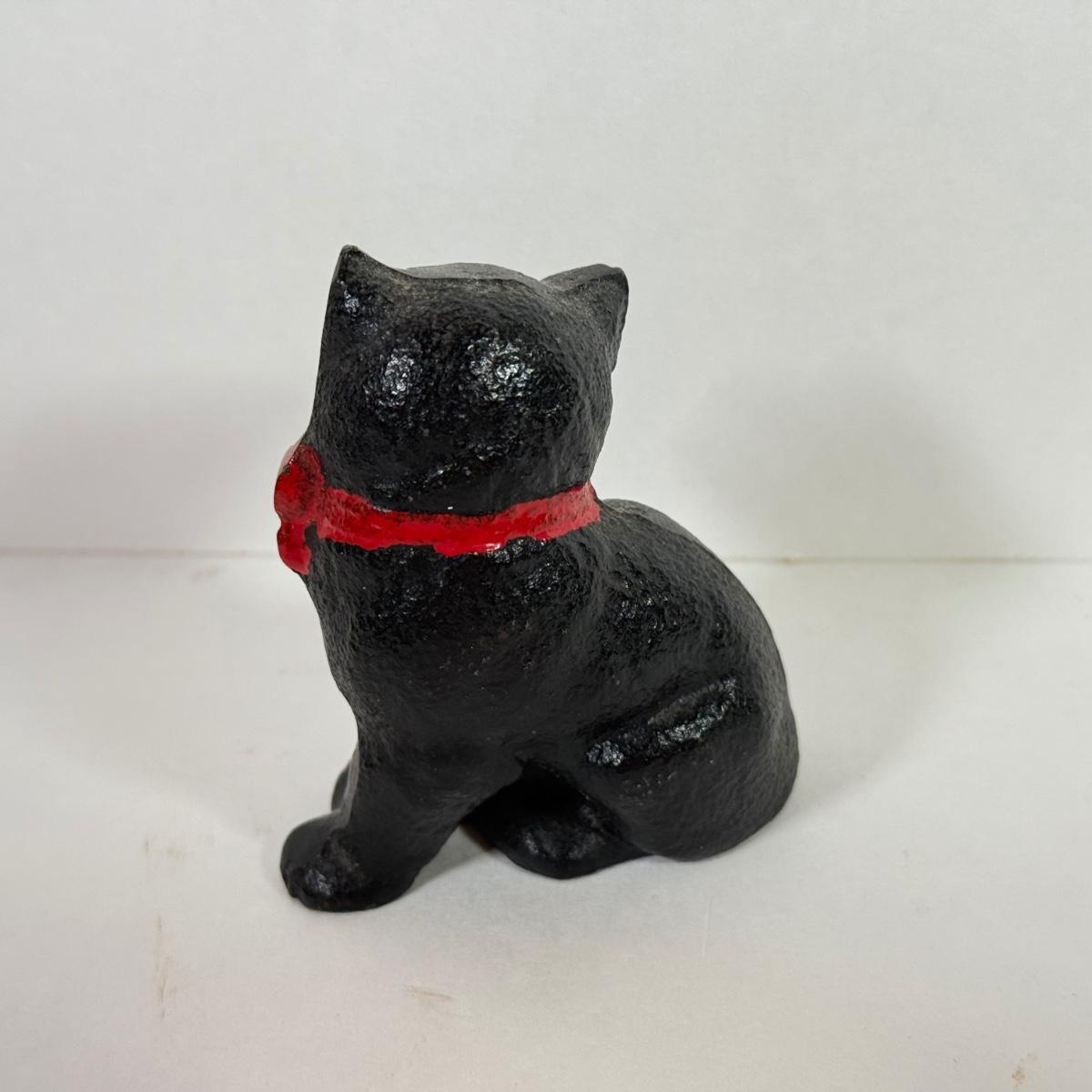 LOT 144L: Vintage Cast Iron Black Cat w/ Small Metal Cat & Glass Cat w/ Moon Disc